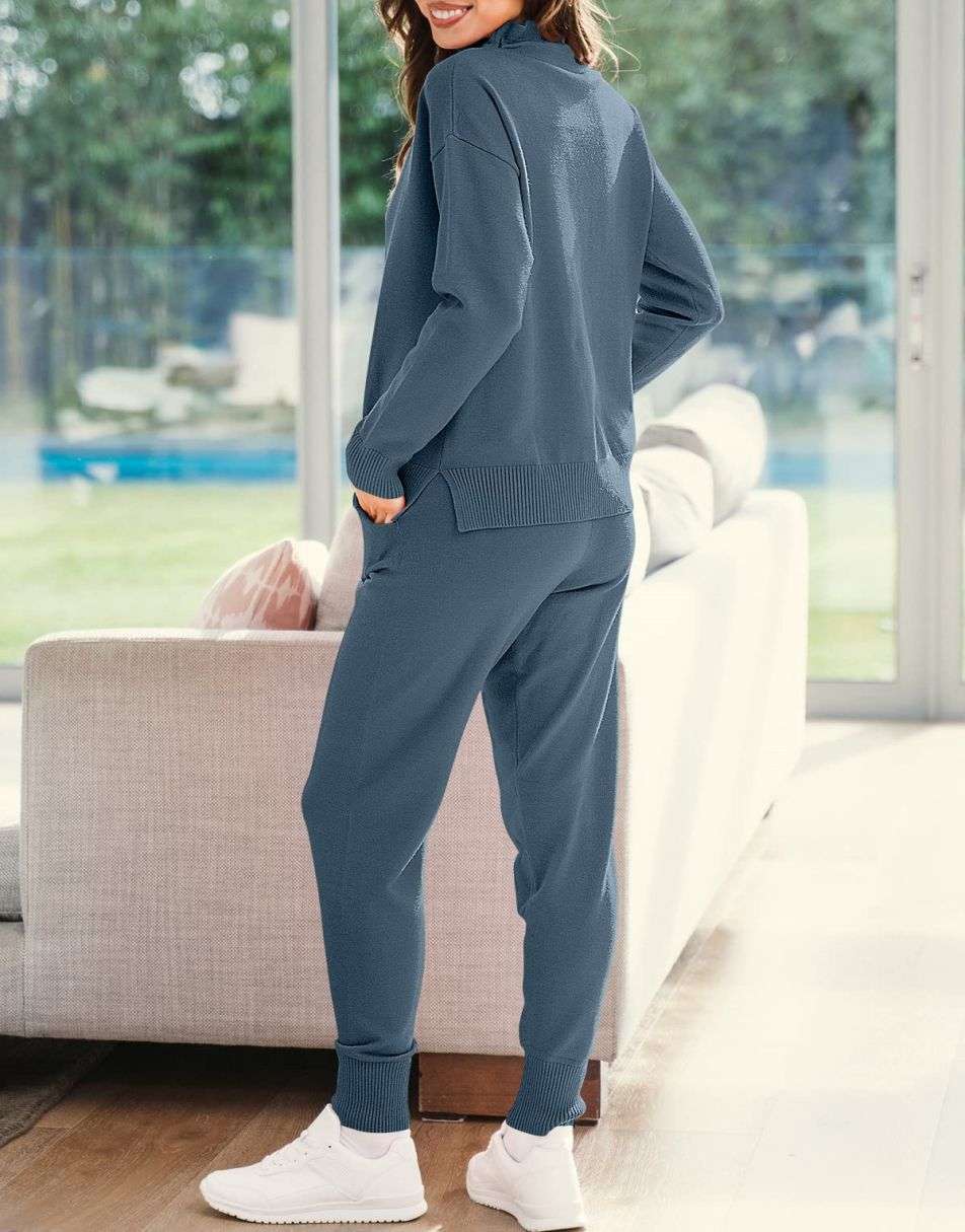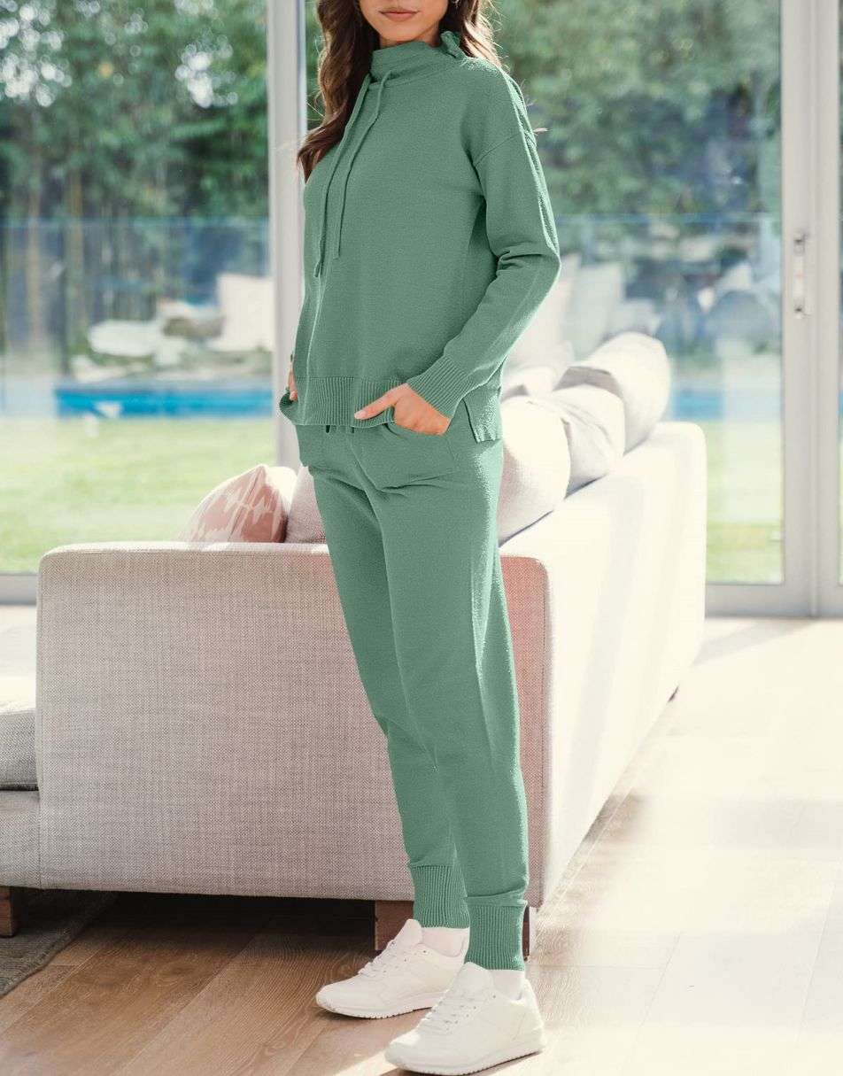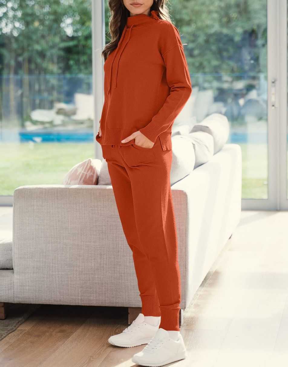• Features - Such a cute basic 2 piece outfit!Features turtle drawstring neckline,long sleeve pullover top,jogger pants,pockets,ribbed hem,knit fabrication.