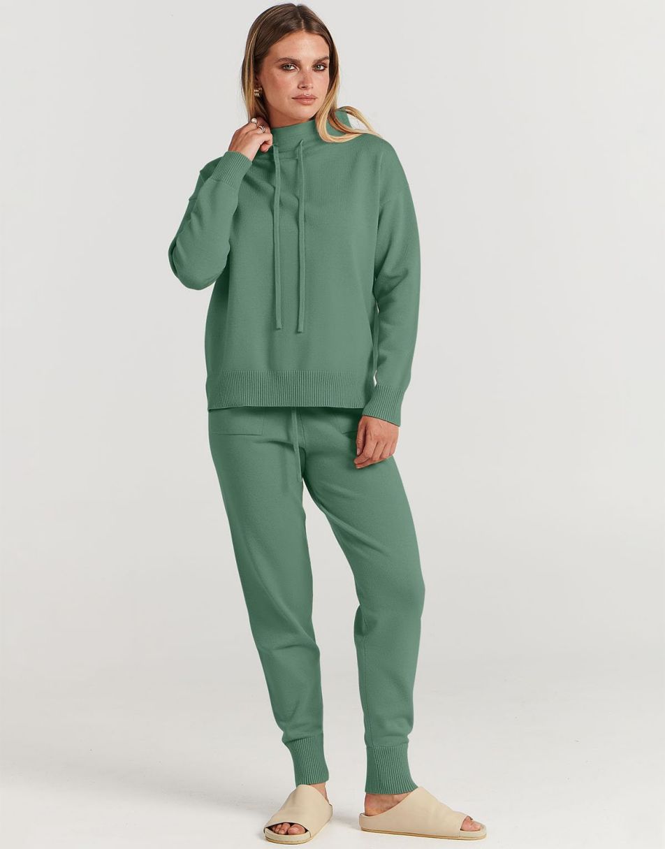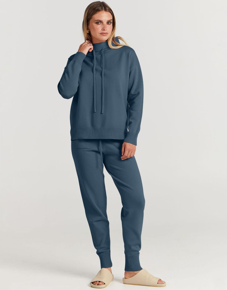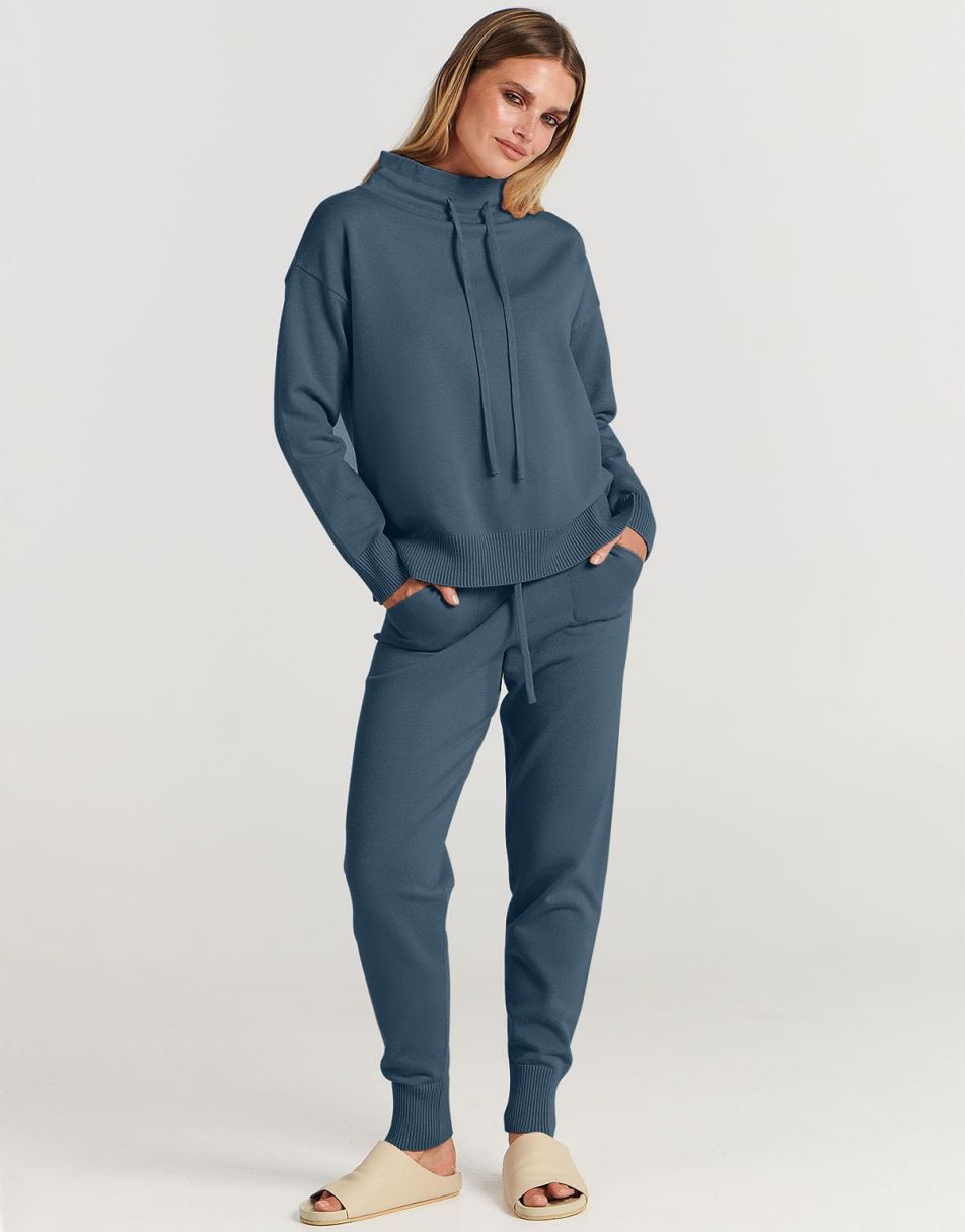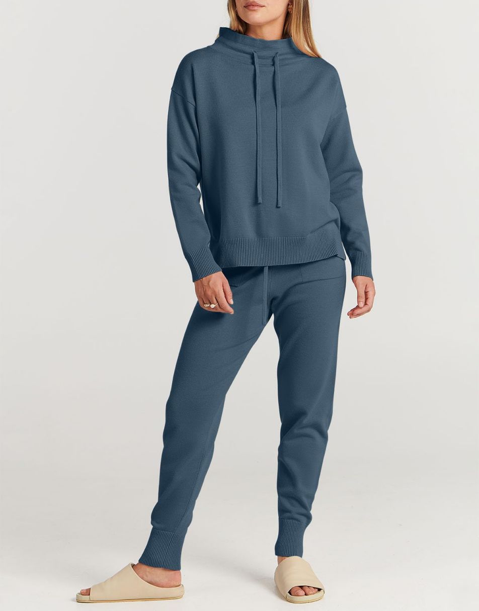 • Features - Such a cute basic 2 piece outfit!Features turtle drawstring neckline,long sleeve pullover top,jogger pants,pockets,ribbed hem,knit fabrication.