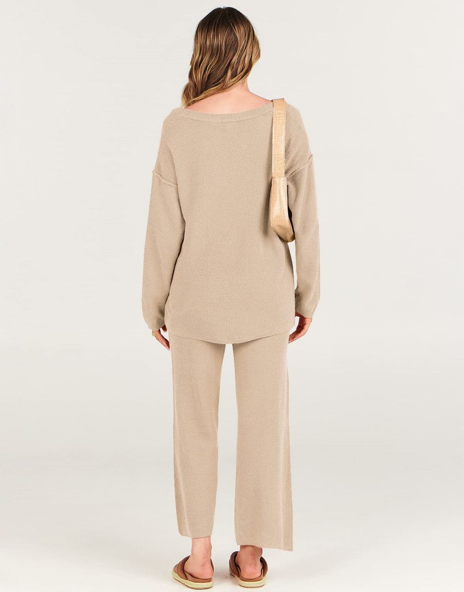 • ANRABESS Women 2 Piece Outfits Oversized Knit Loungewear Loose Slouchy Sweater Set 2023 Fall Trendy Matching Lounge Sets