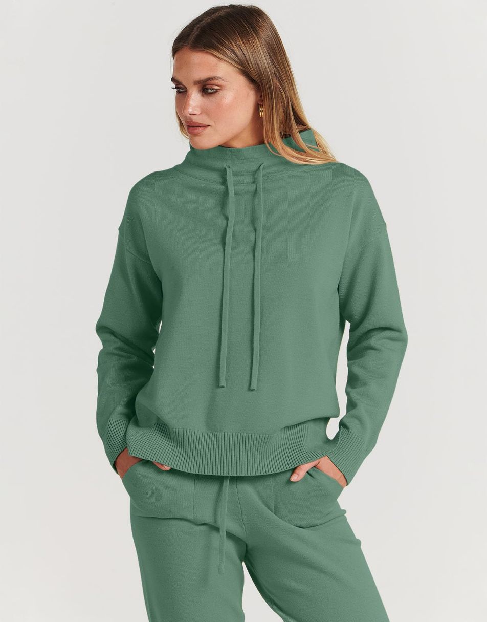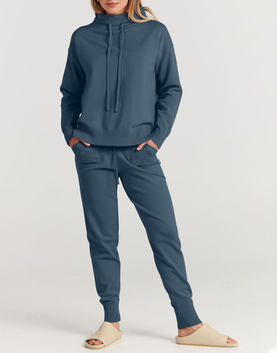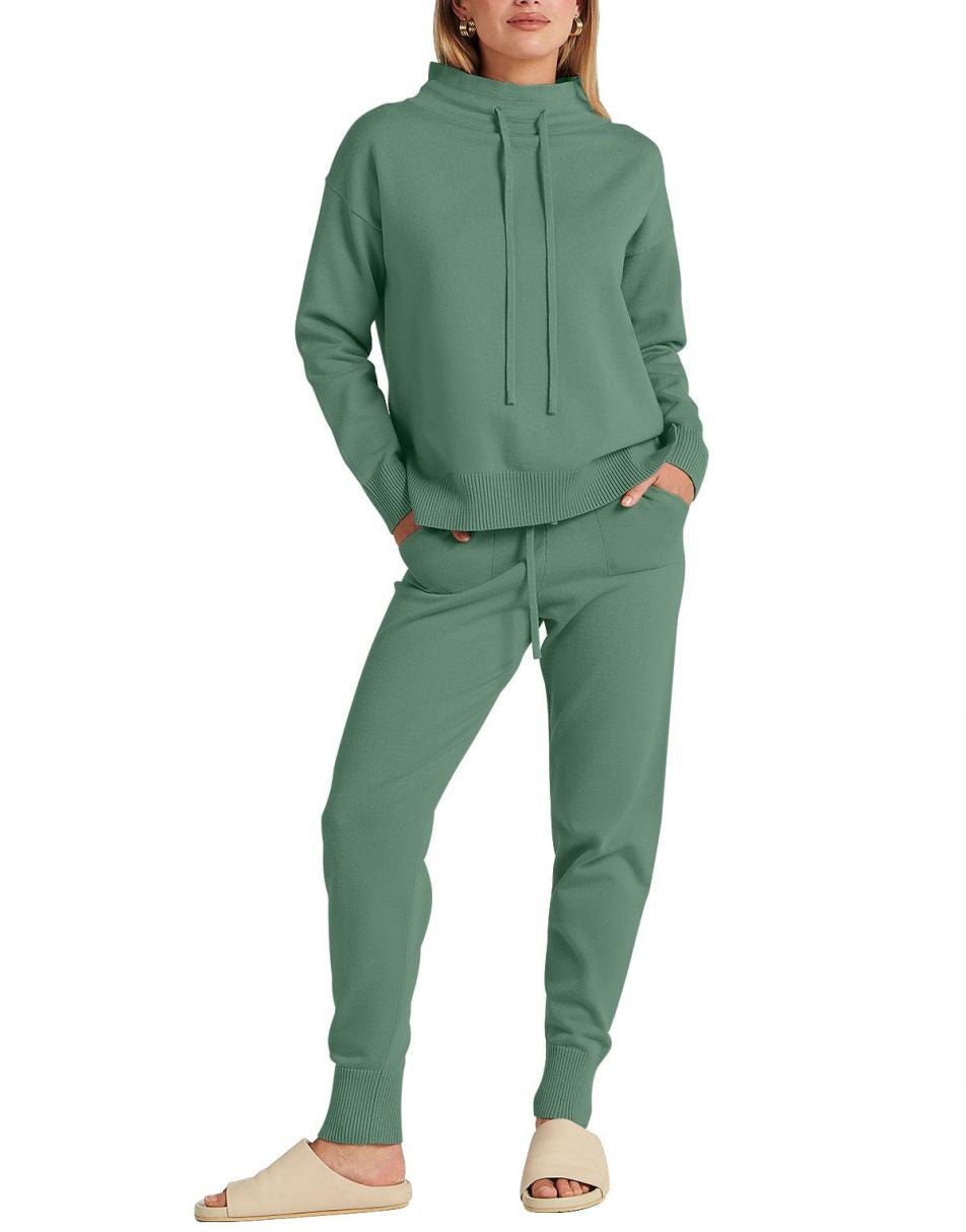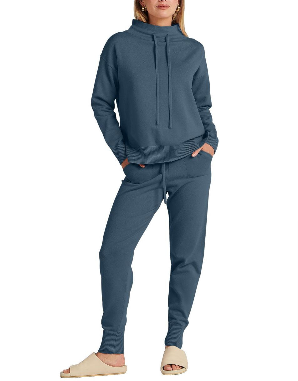 • ANRABESS Women's Two Piece Outfits Long Sleeve Turtleneck Pullover Top & Drawstring Pants Sweatsuit Lounge Set