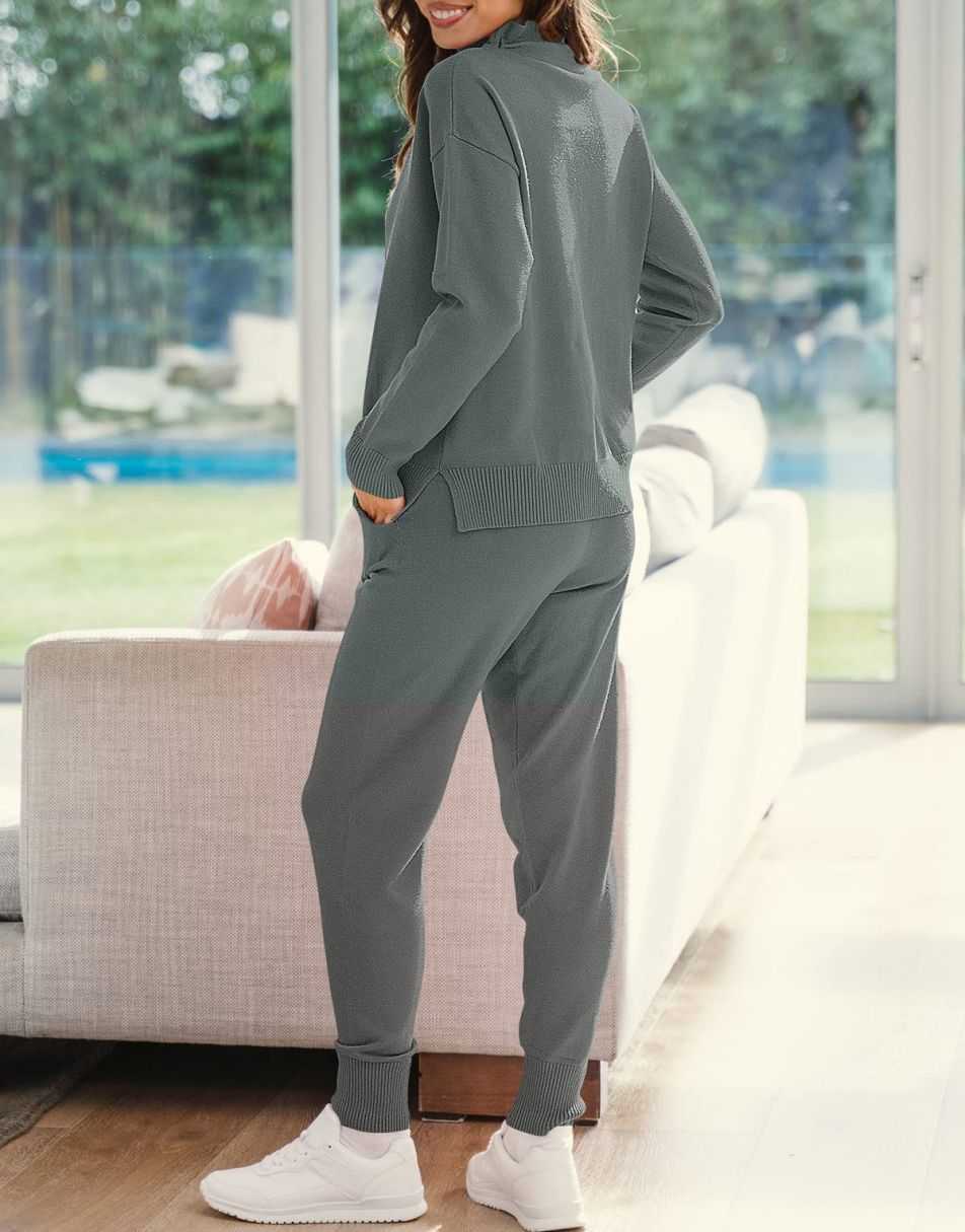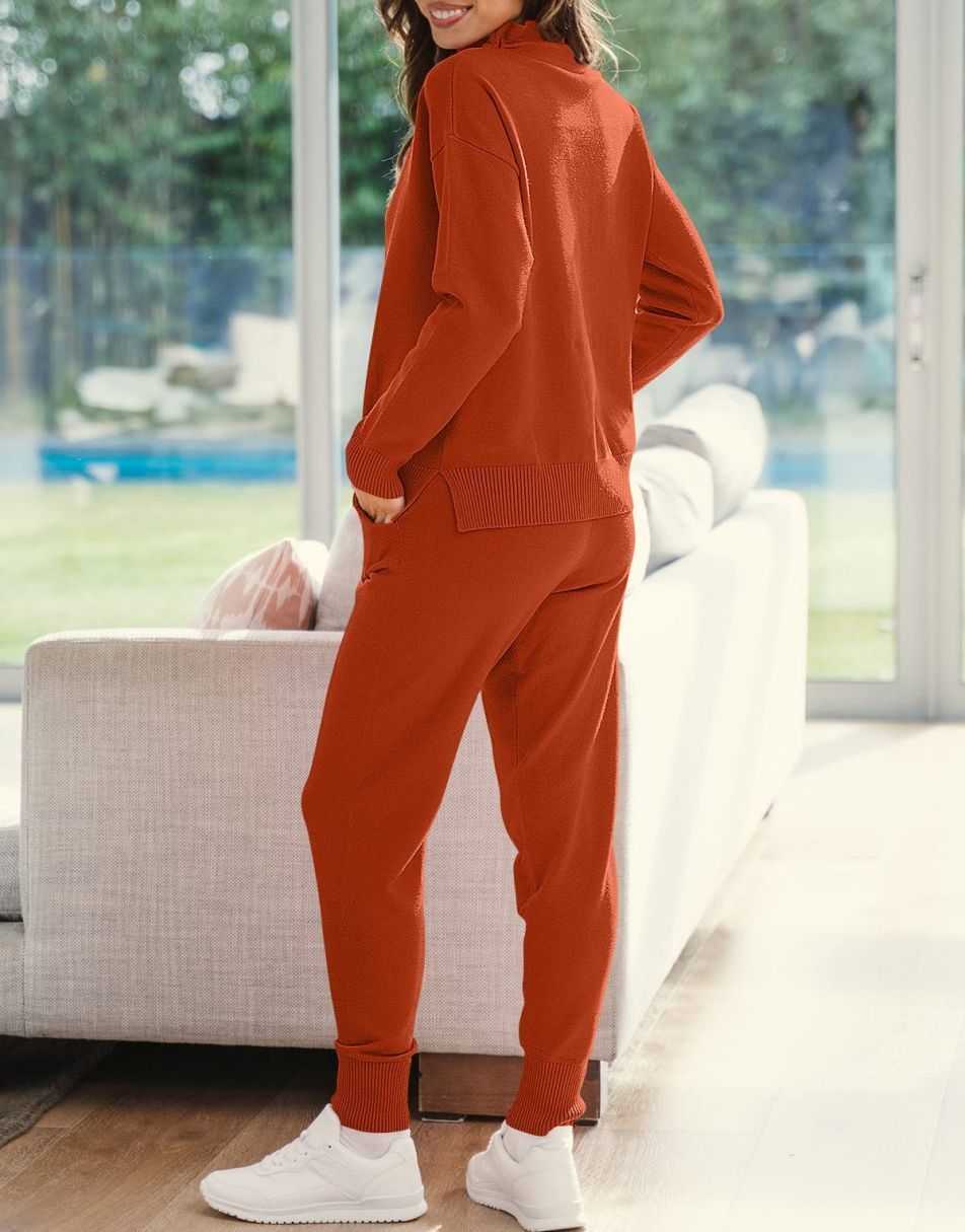 • Features - Such a cute basic 2 piece outfit锛�Features turtle drawstring neckline锛�long sleeve pullover top锛�jogger pants锛�pockets锛�ribbed hem锛�knit fabrication.