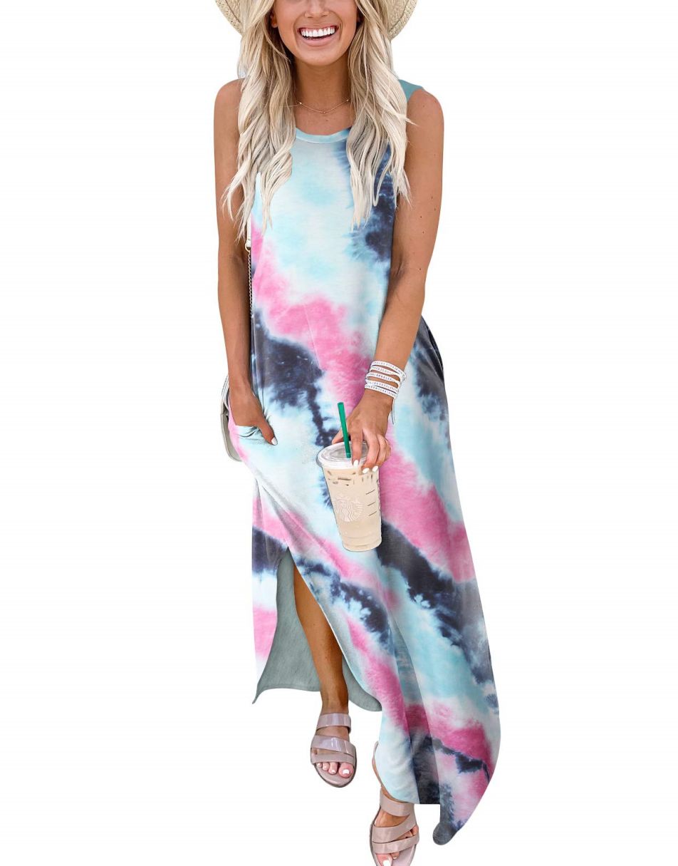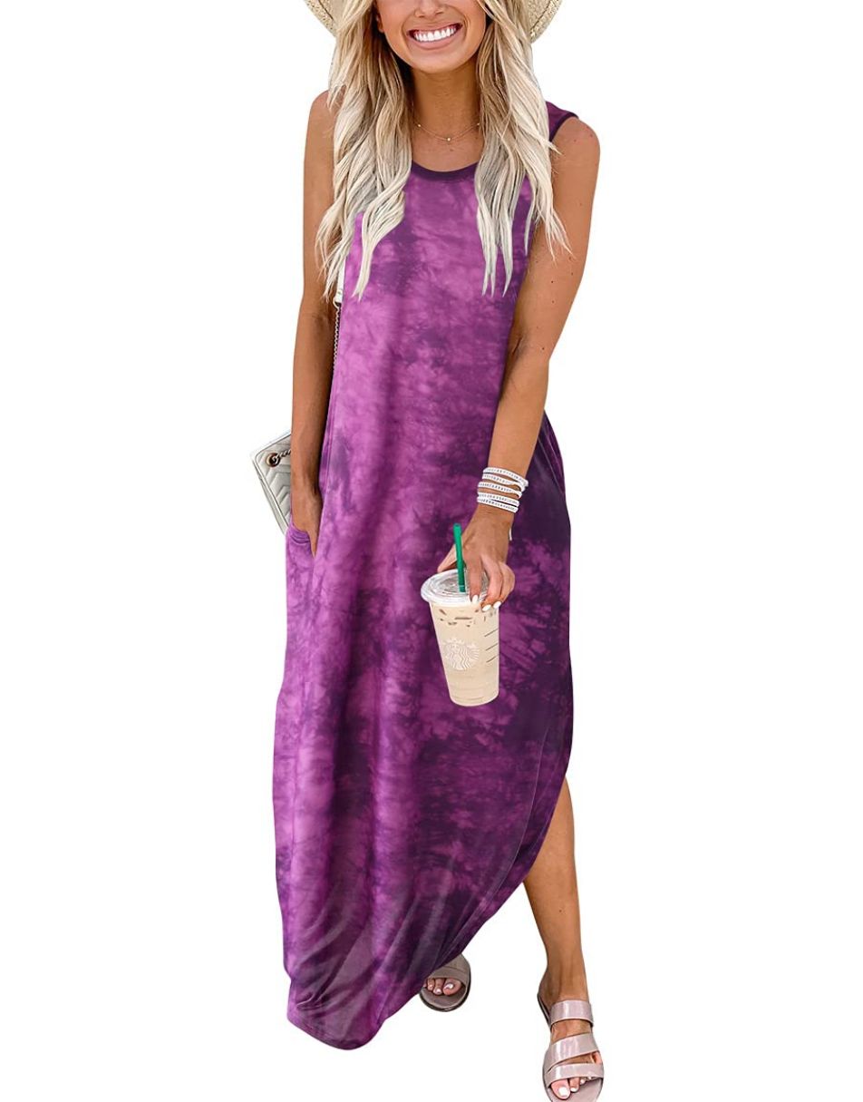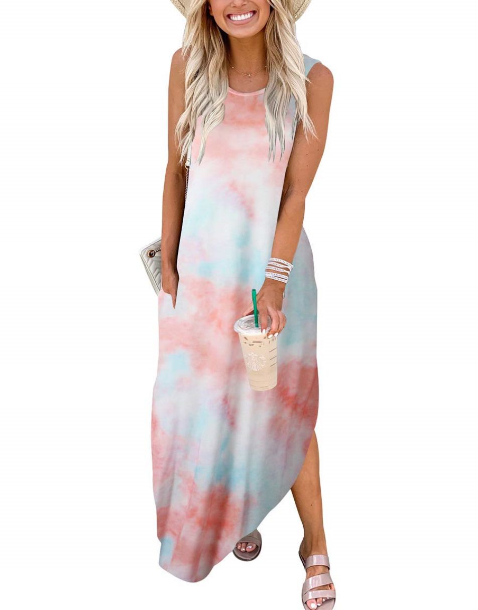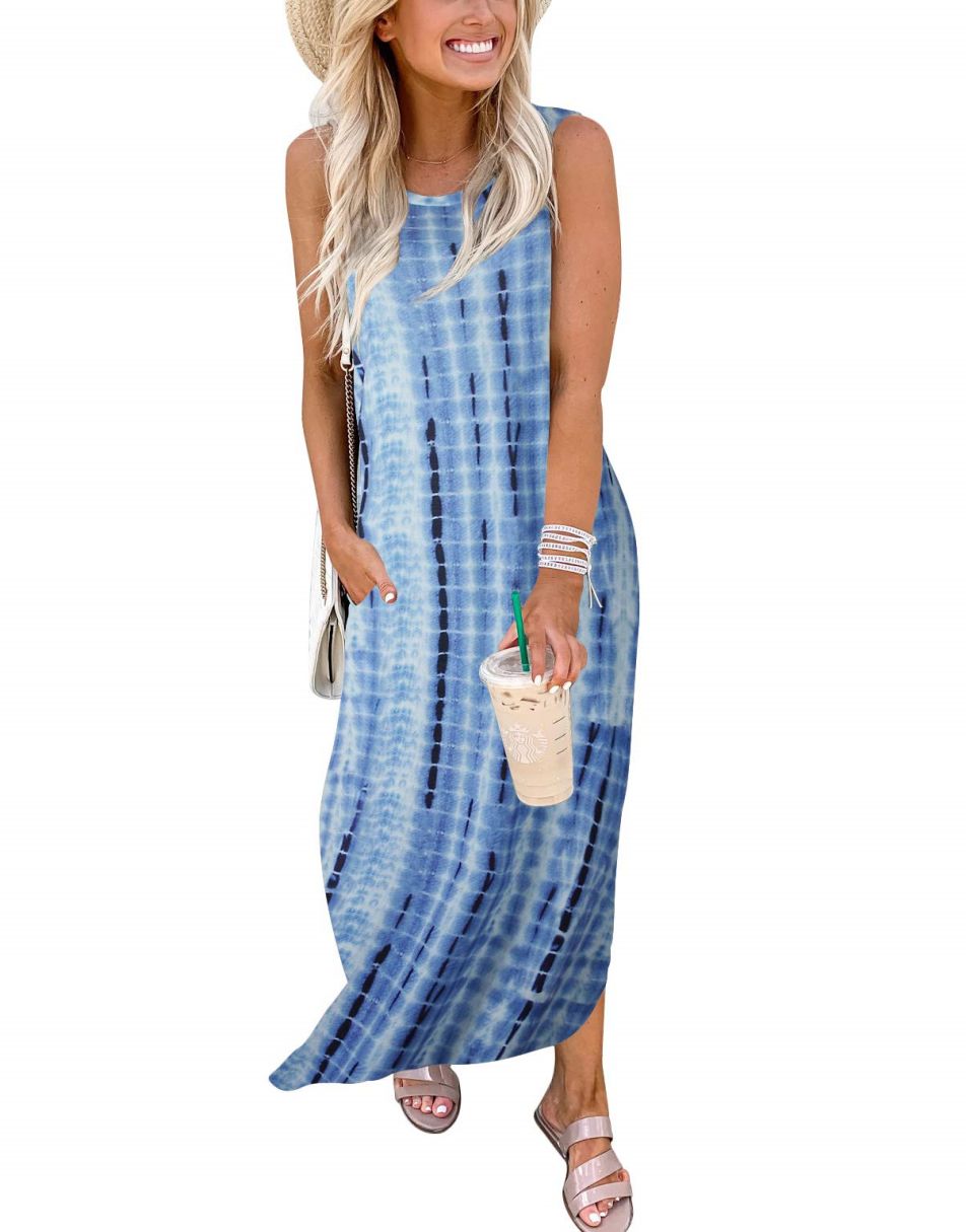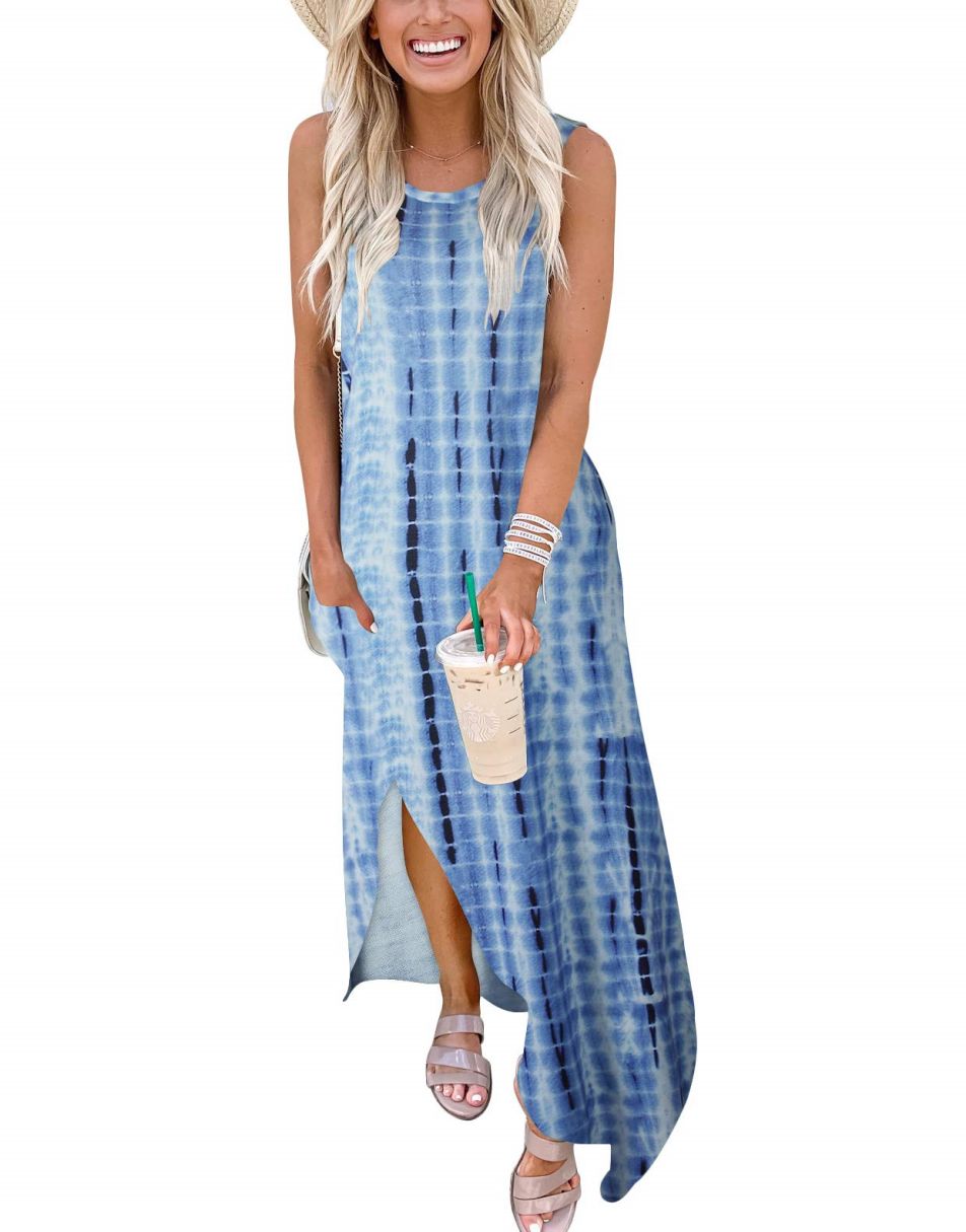 • Design:Sleeveless,crew neck,Long dress,side slit,summer beach dress,solid dress,tie dye dress,printed dress,casual loose fit.