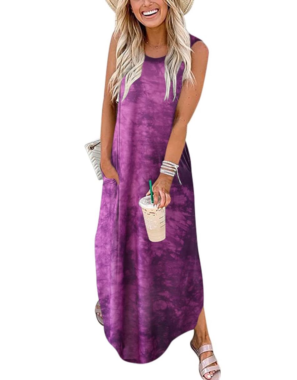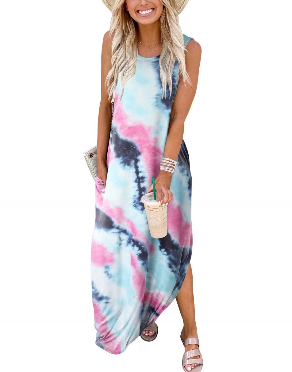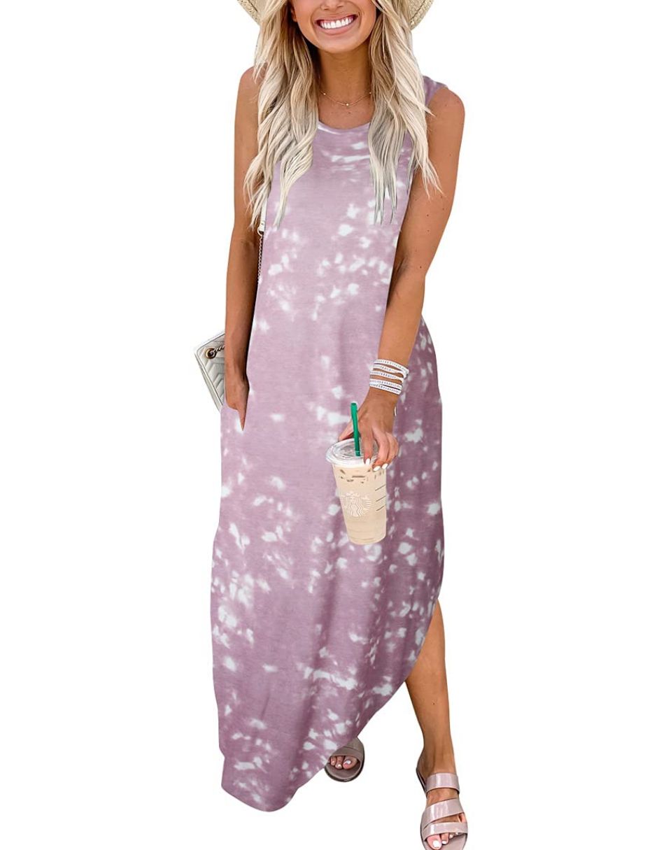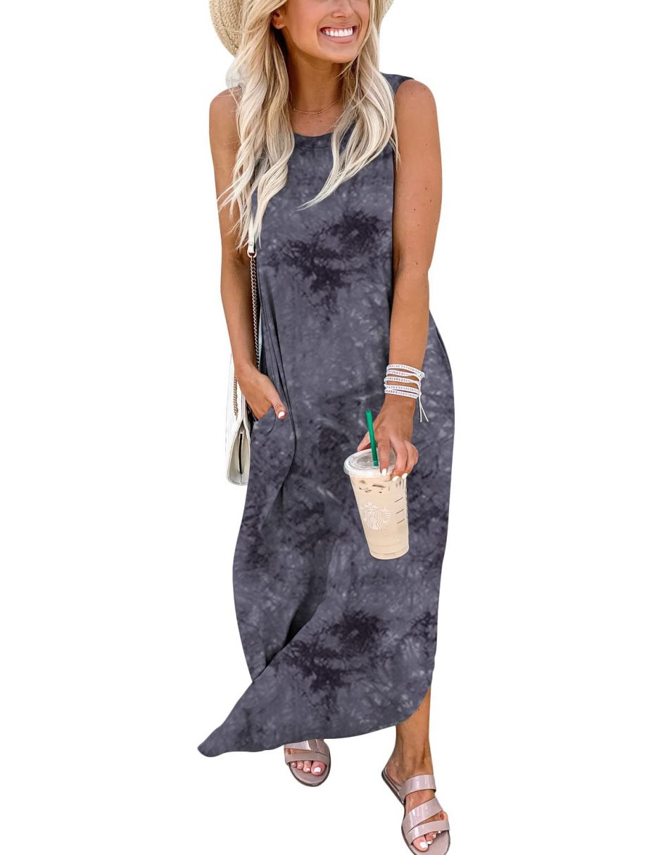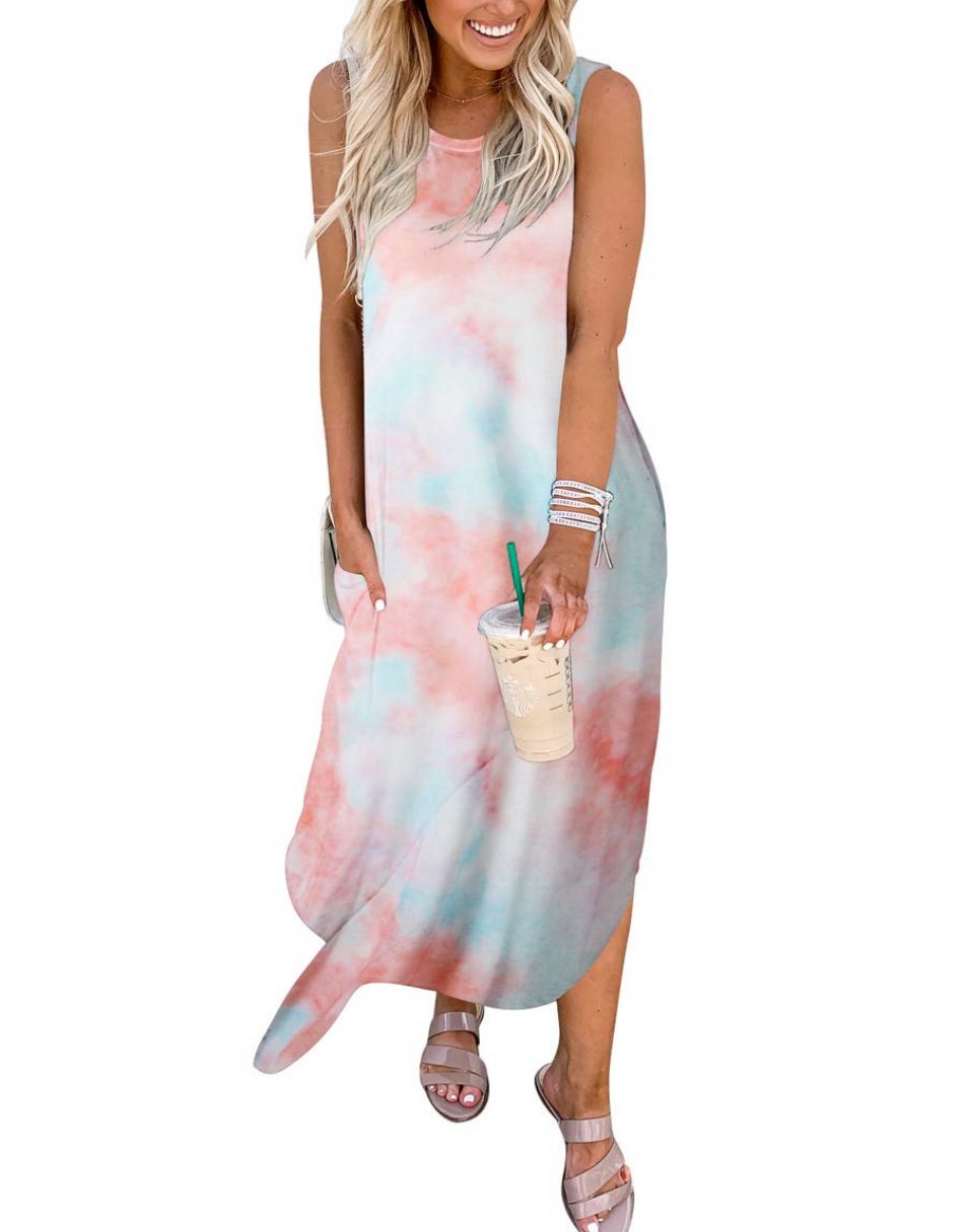 • Design:Sleeveless,crew neck,Long dress,side slit,summer beach dress,solid dress,tie dye dress,printed dress,casual loose fit.