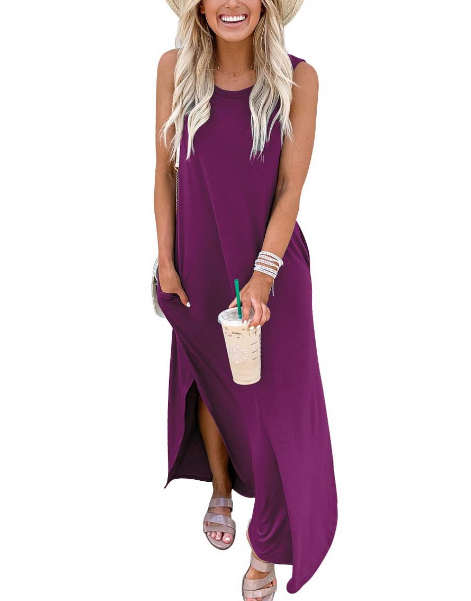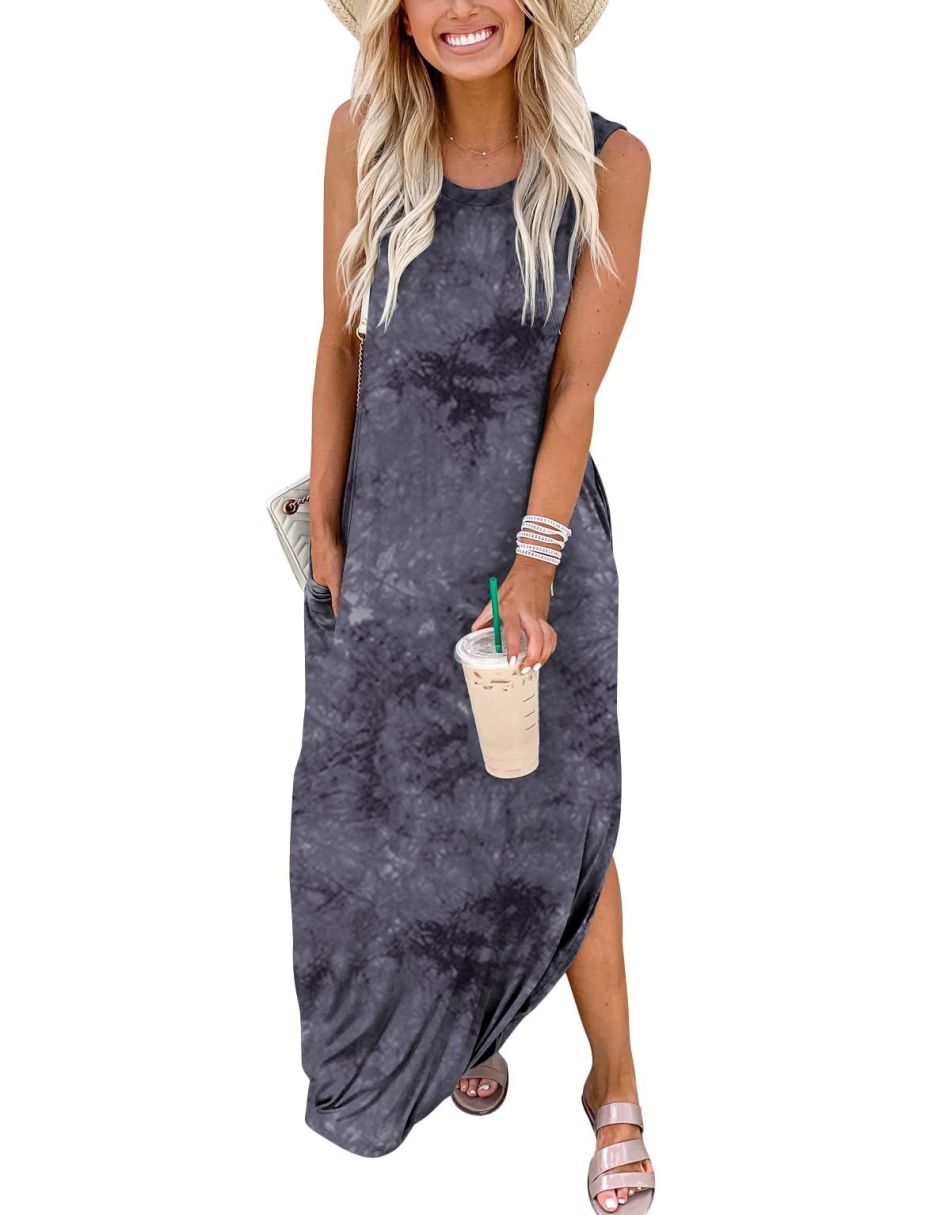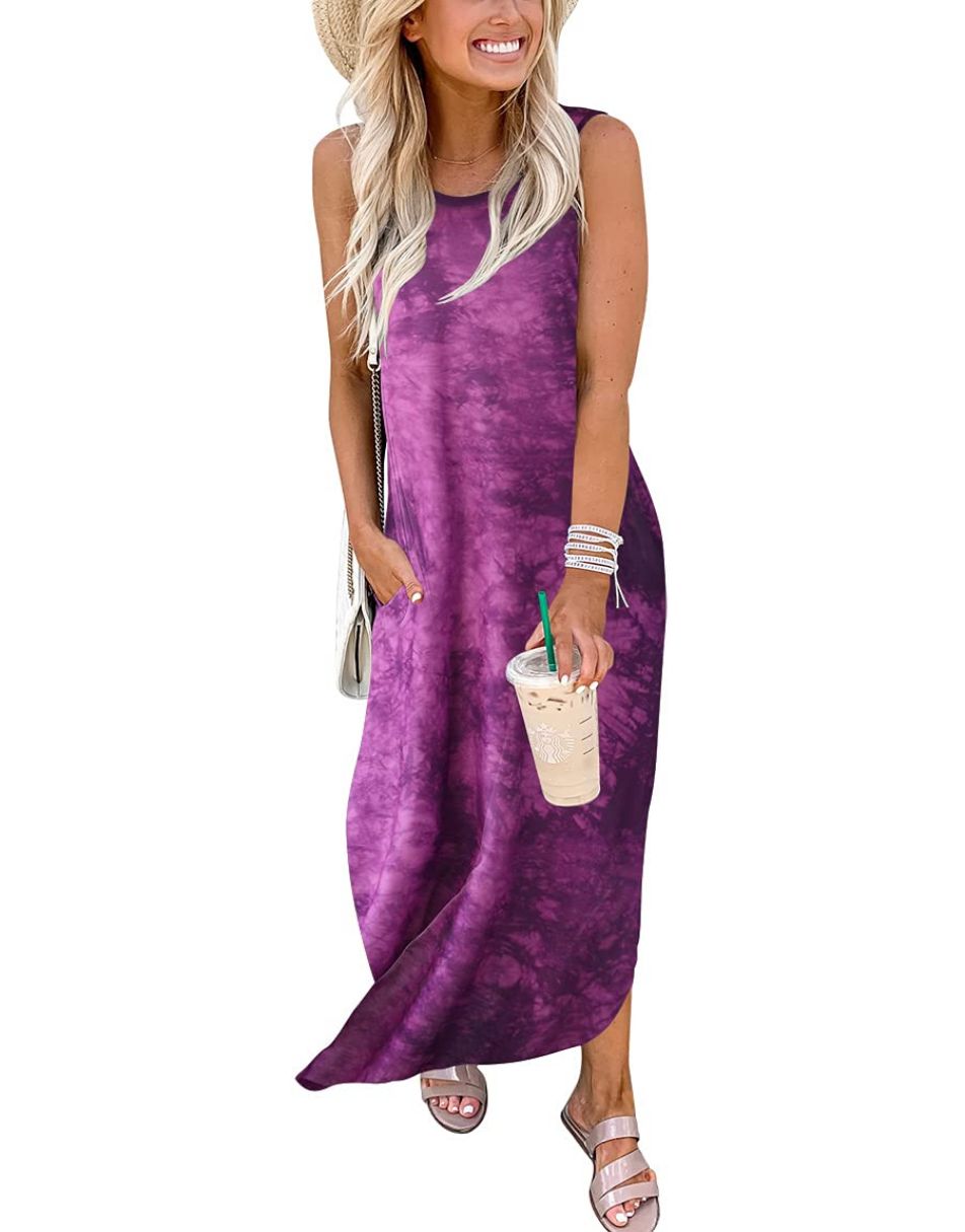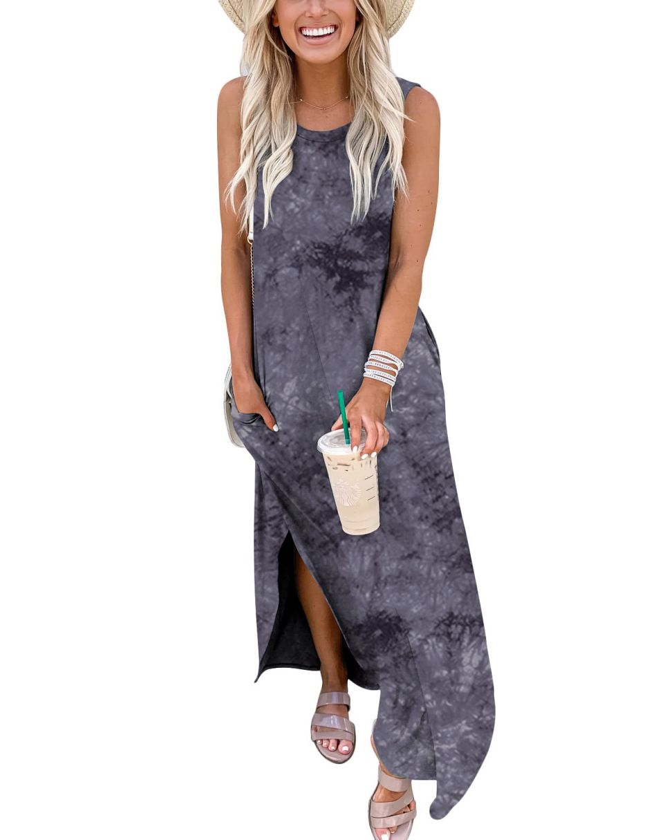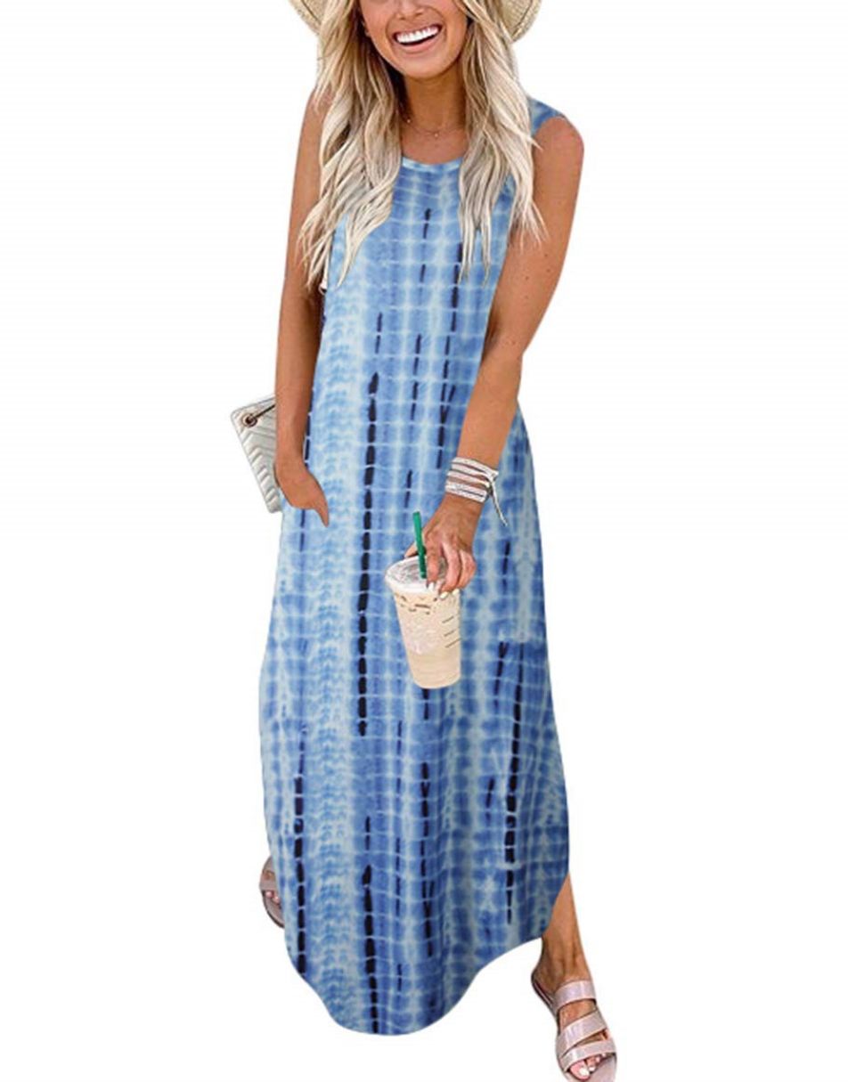 • Design:Sleeveless,crew neck,Long dress,side slit,summer beach dress,solid dress,tie dye dress,printed dress,casual loose fit.