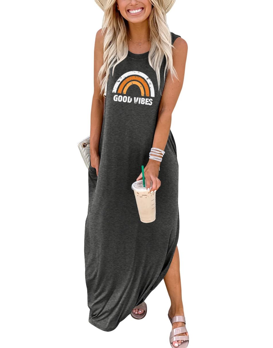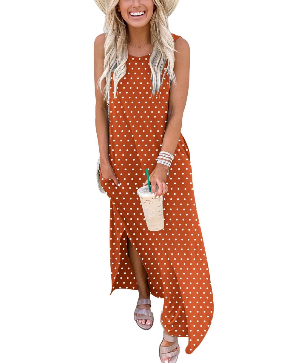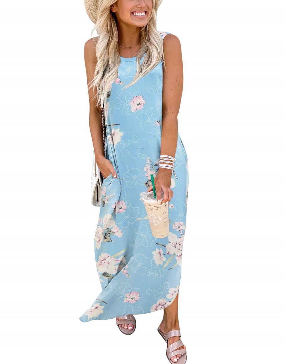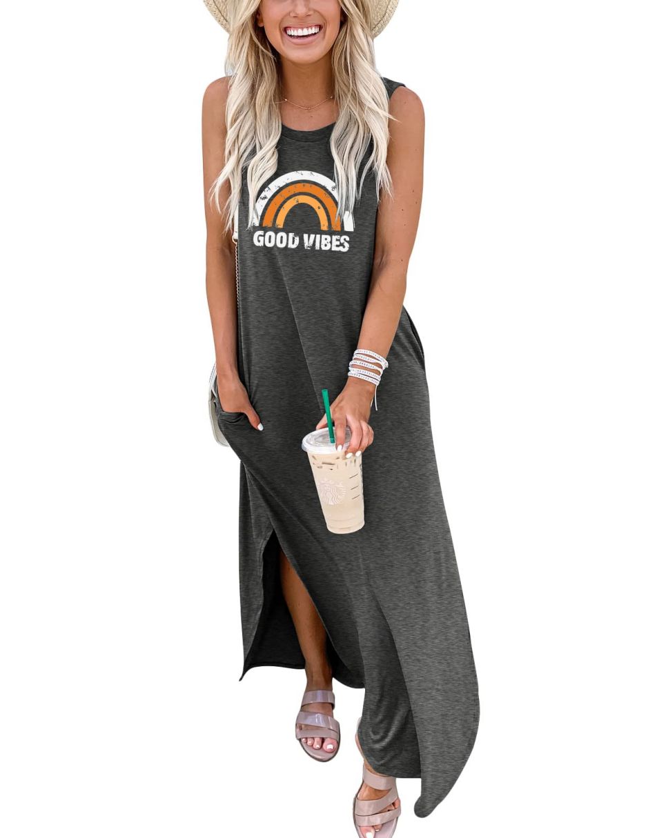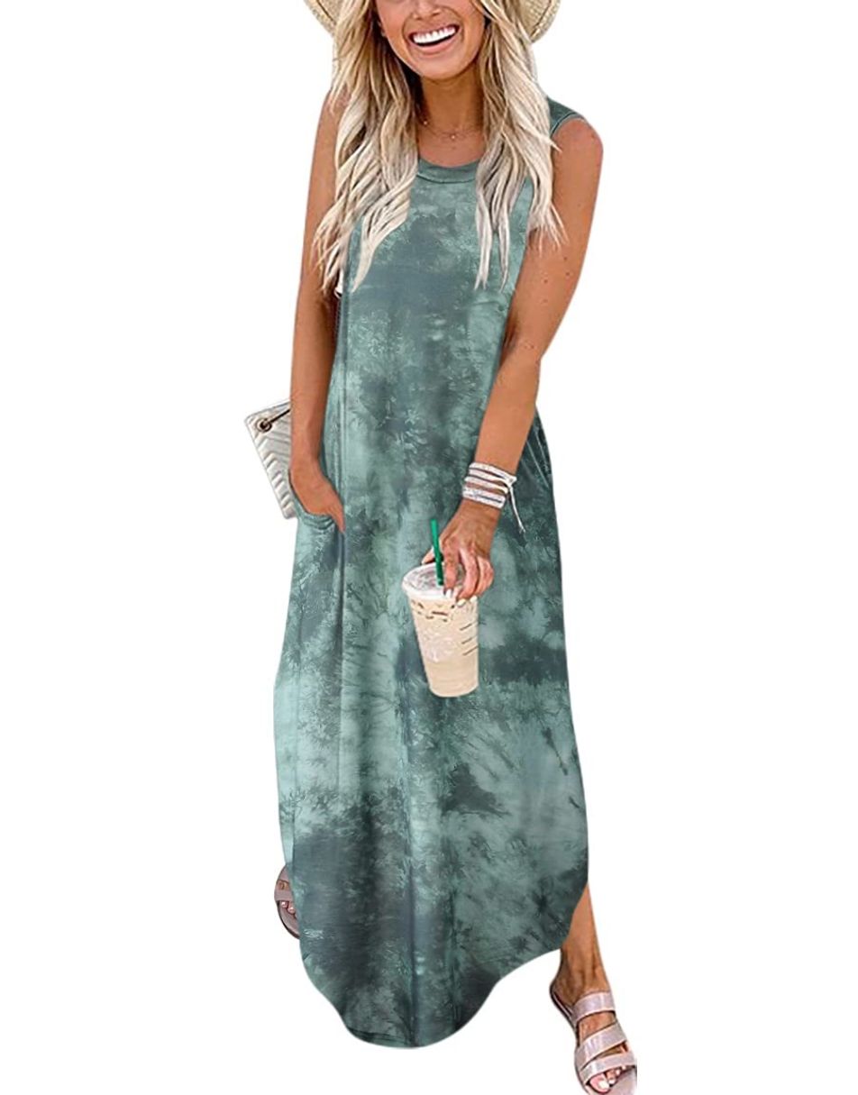 • Design:Sleeveless,crew neck,Long dress,side slit,summer beach dress,solid dress,tie dye dress,printed dress,casual loose fit.