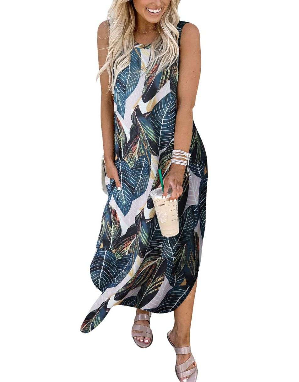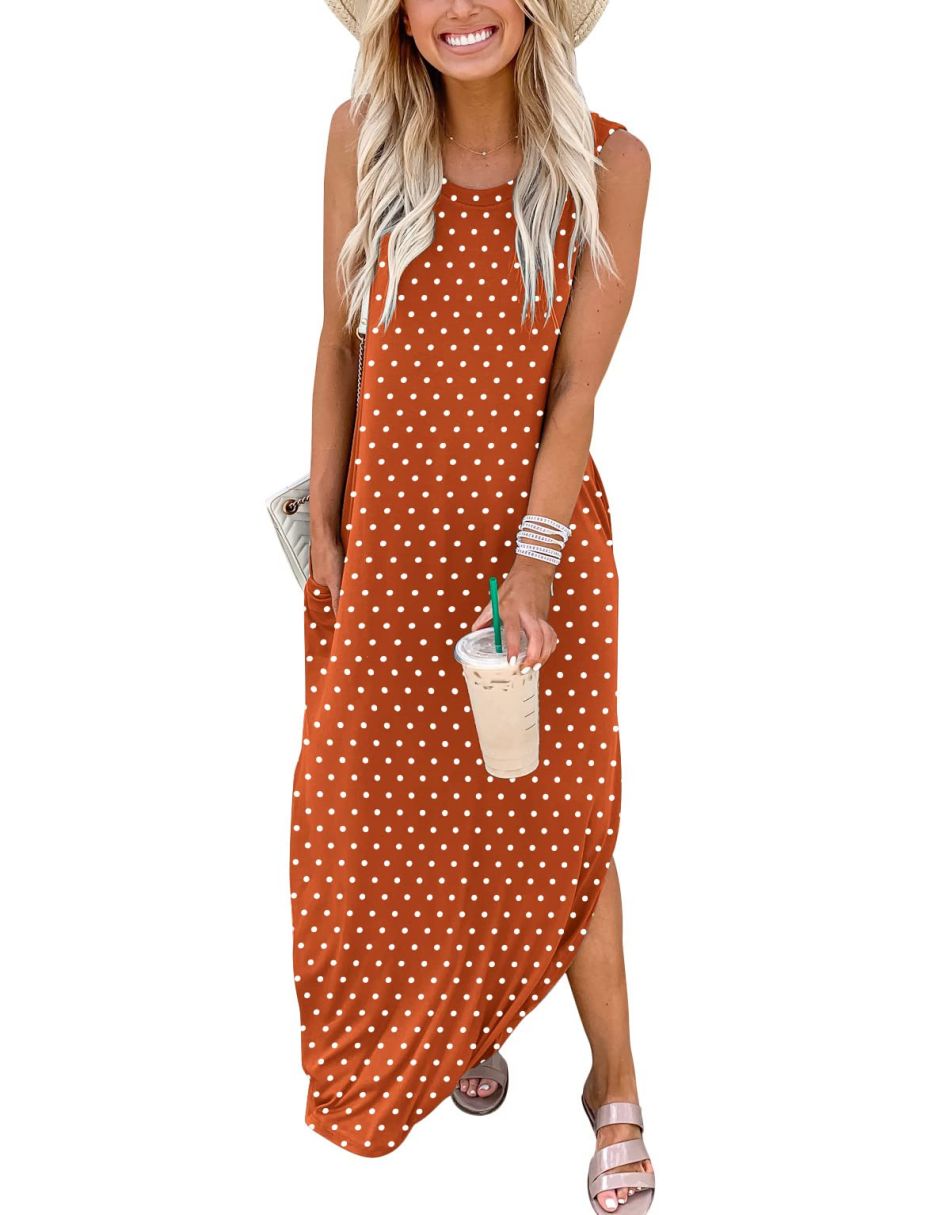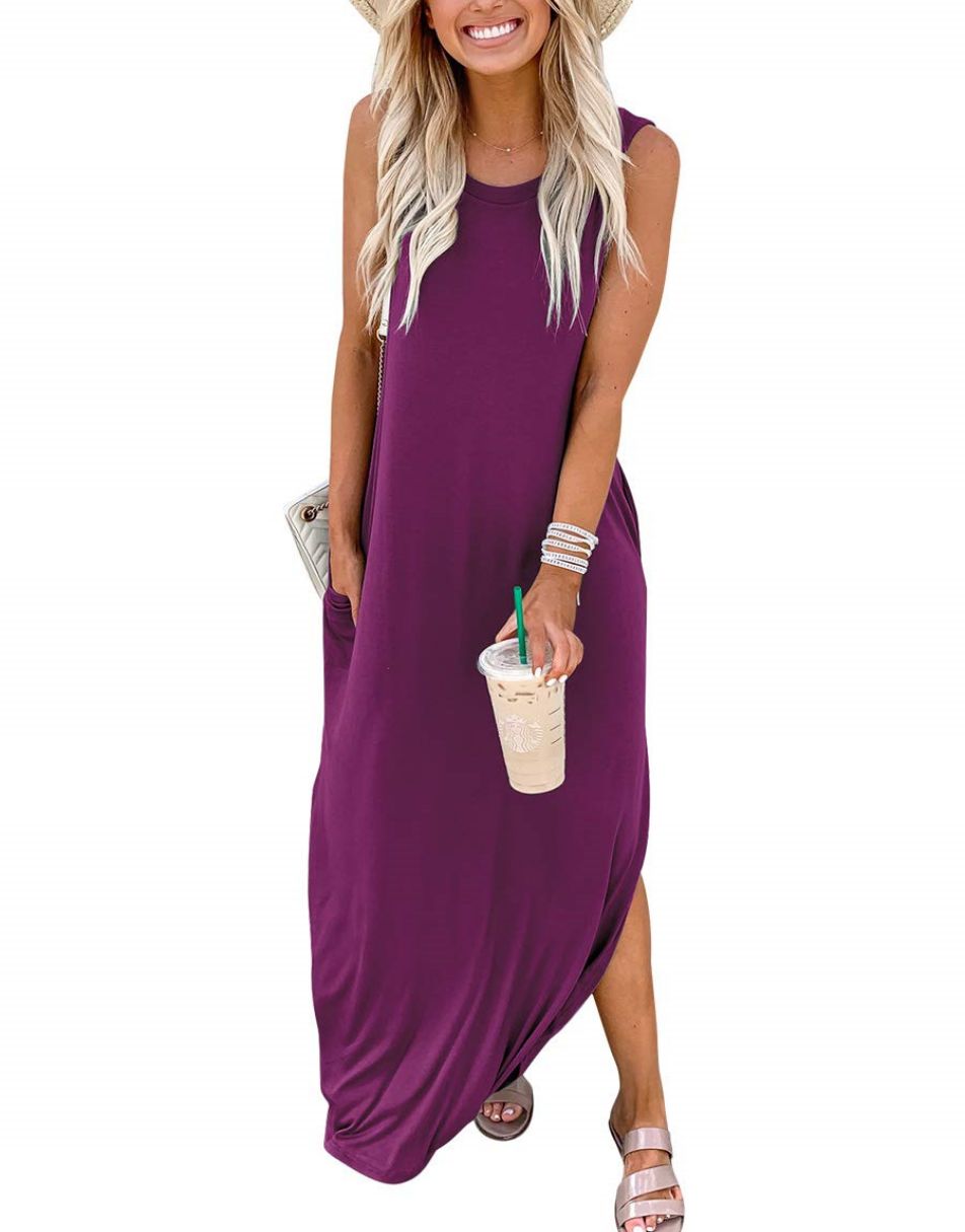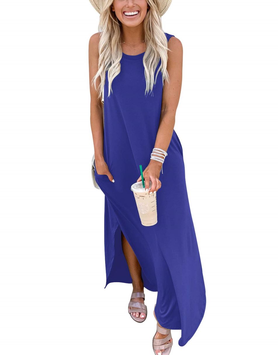 • Design:Sleeveless,crew neck,Long dress,side slit,summer beach dress,solid dress,tie dye dress,printed dress,casual loose fit.