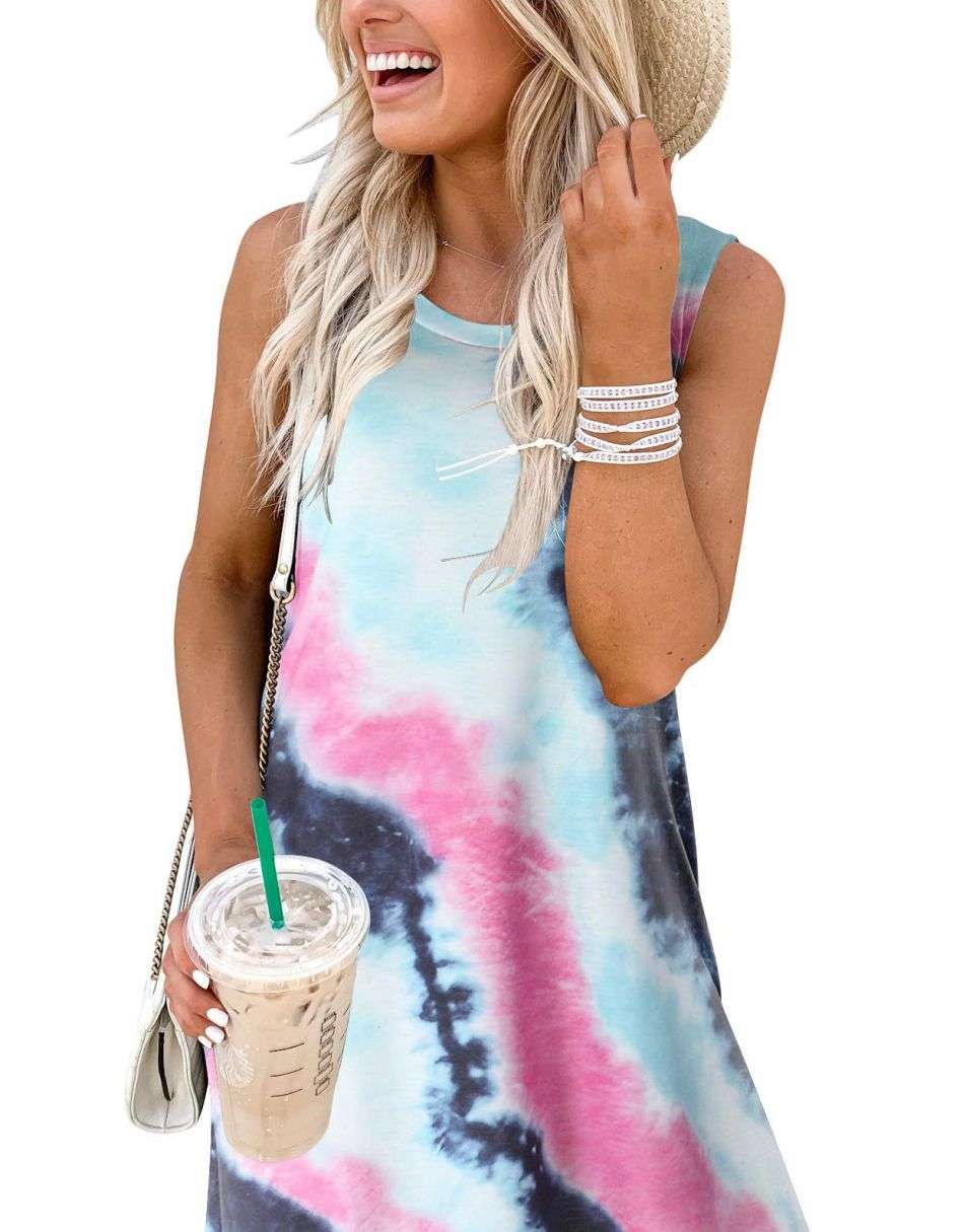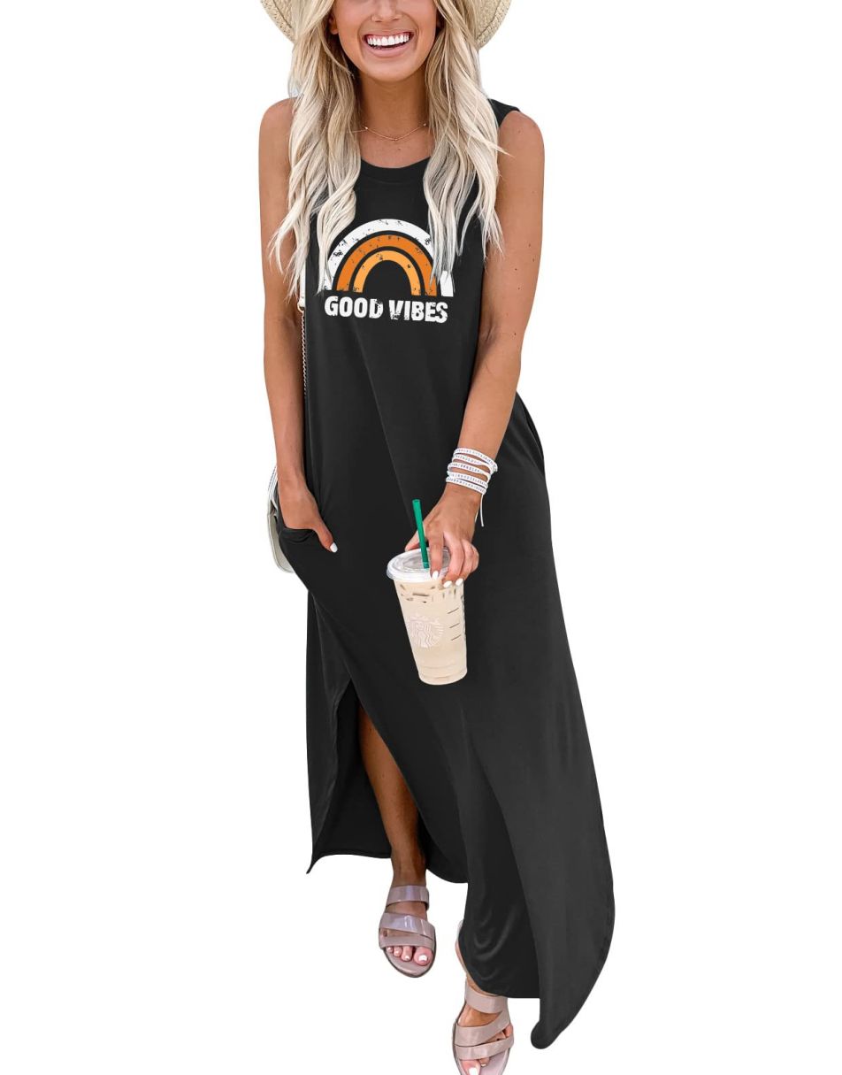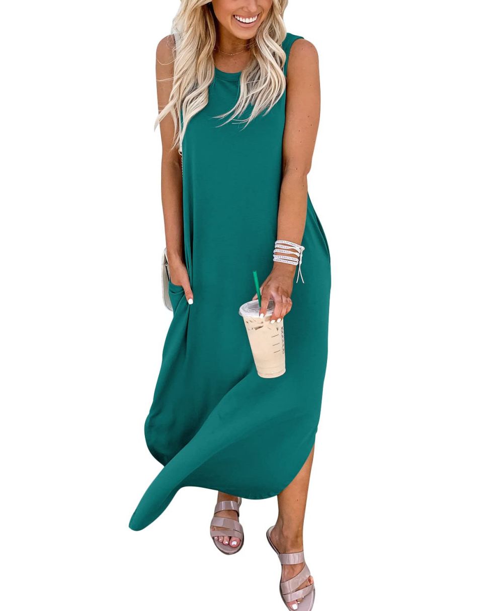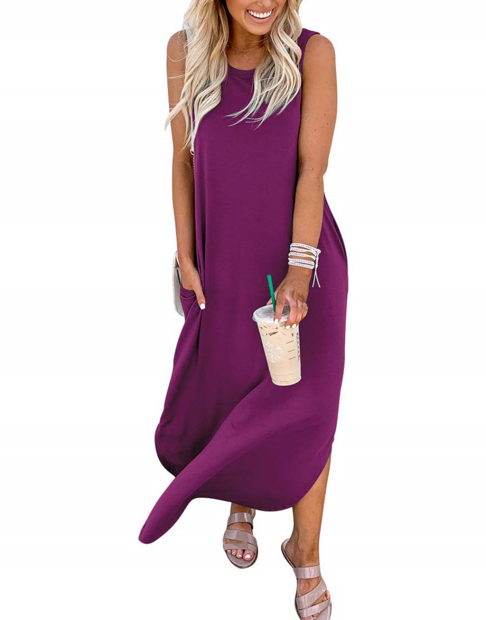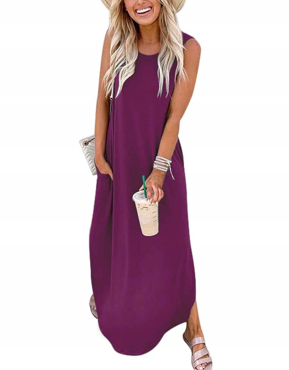 • Design:Sleeveless,crew neck,Long dress,side slit,summer beach dress,solid dress,tie dye dress,printed dress,casual loose fit.
