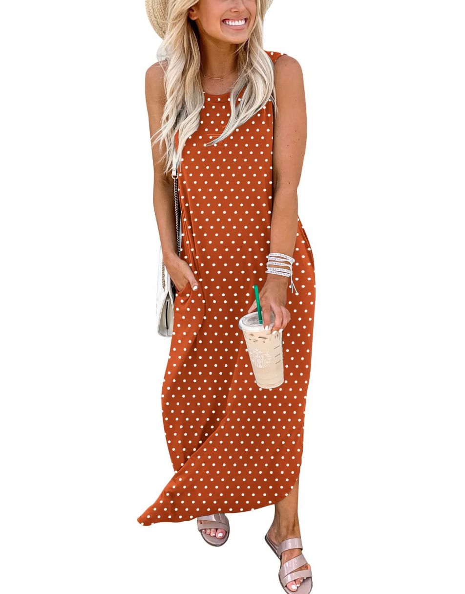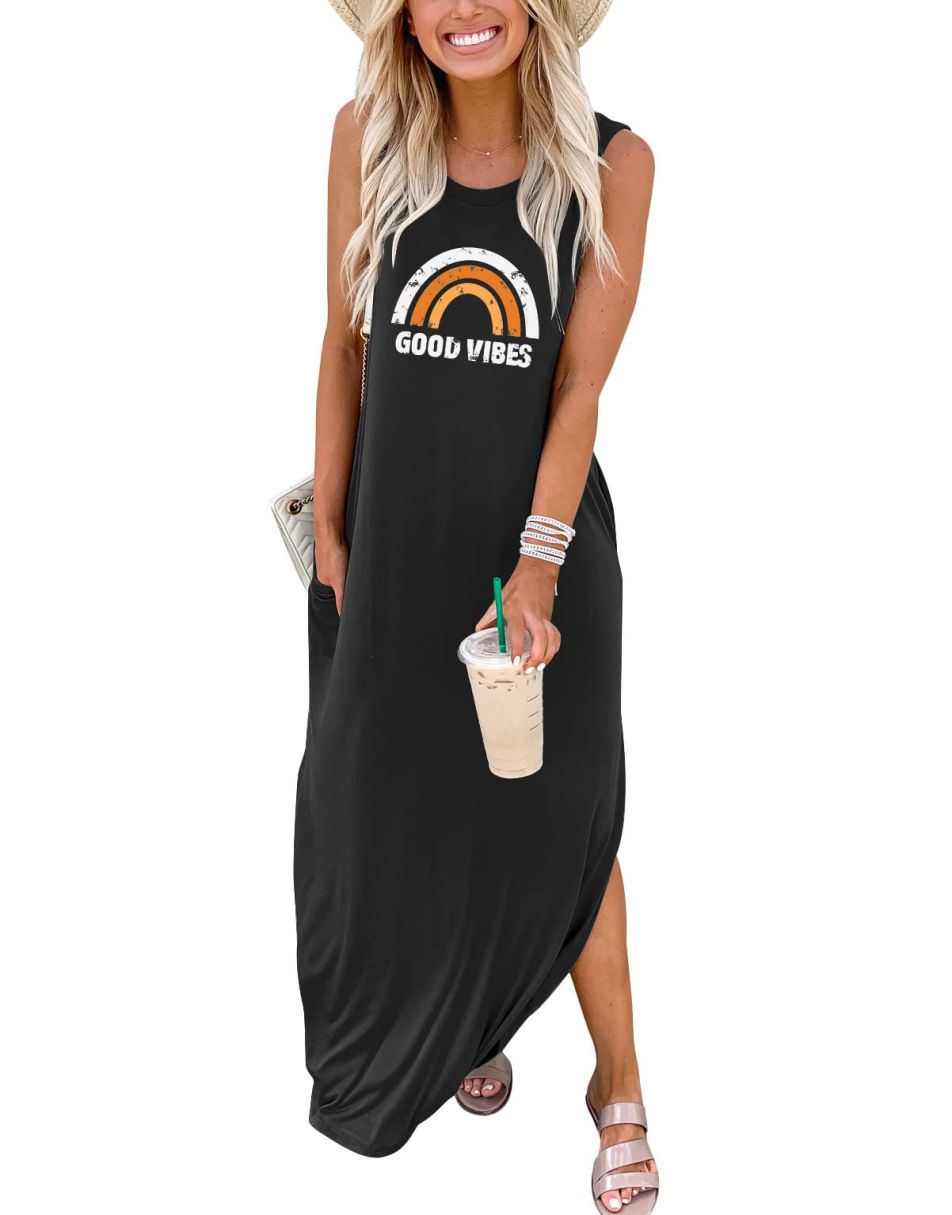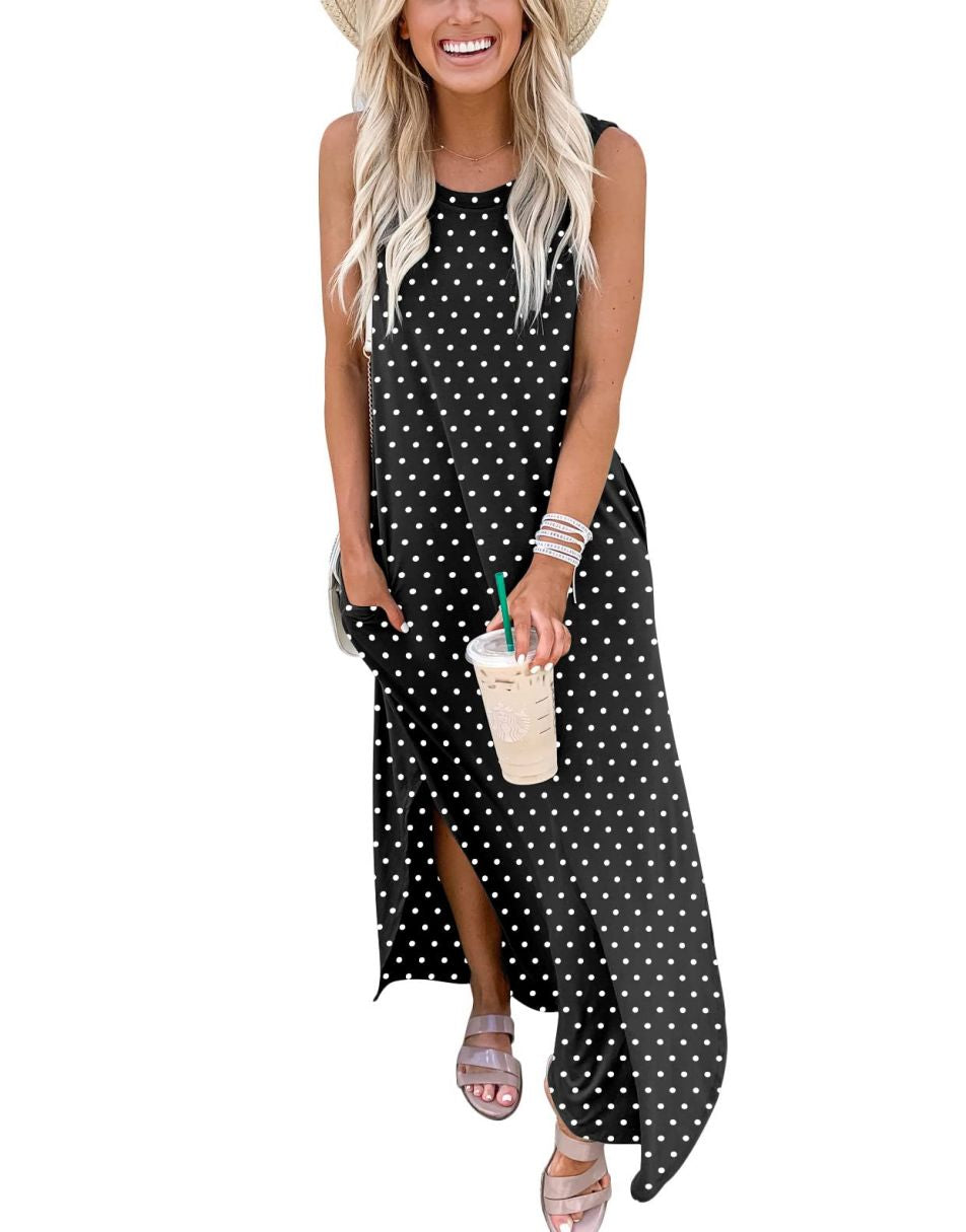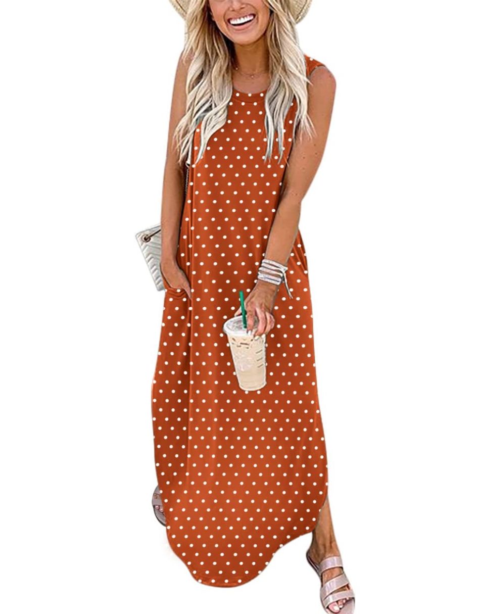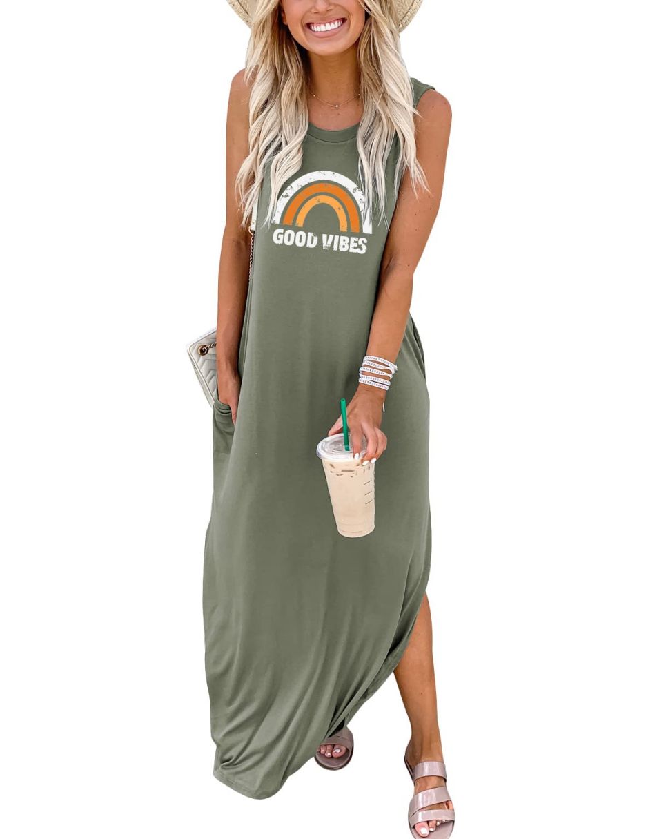 • Design:Sleeveless,crew neck,Long dress,side slit,summer beach dress,solid dress,tie dye dress,printed dress,casual loose fit.