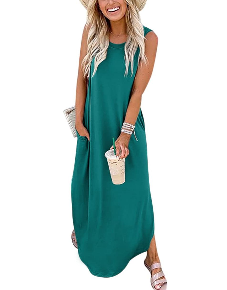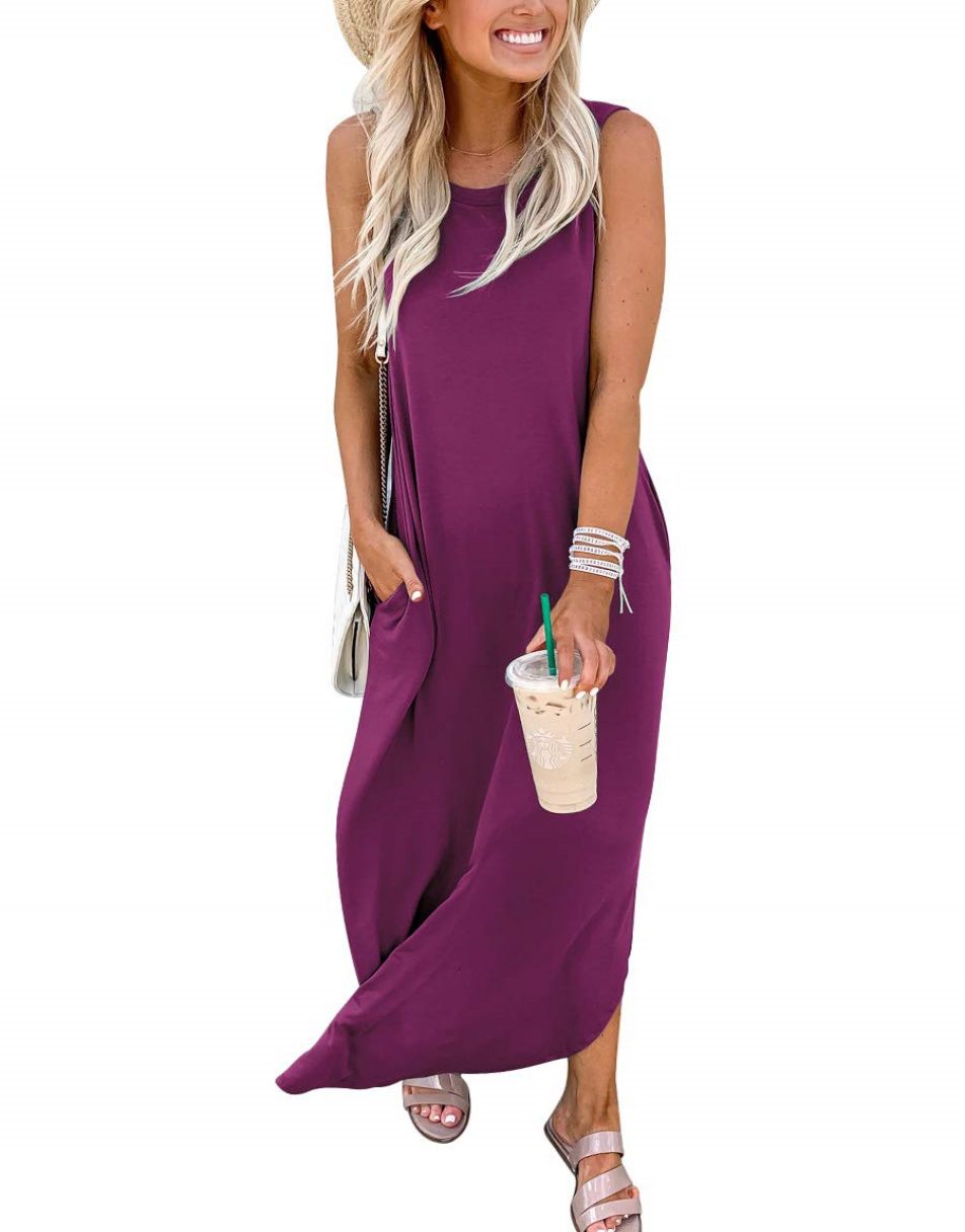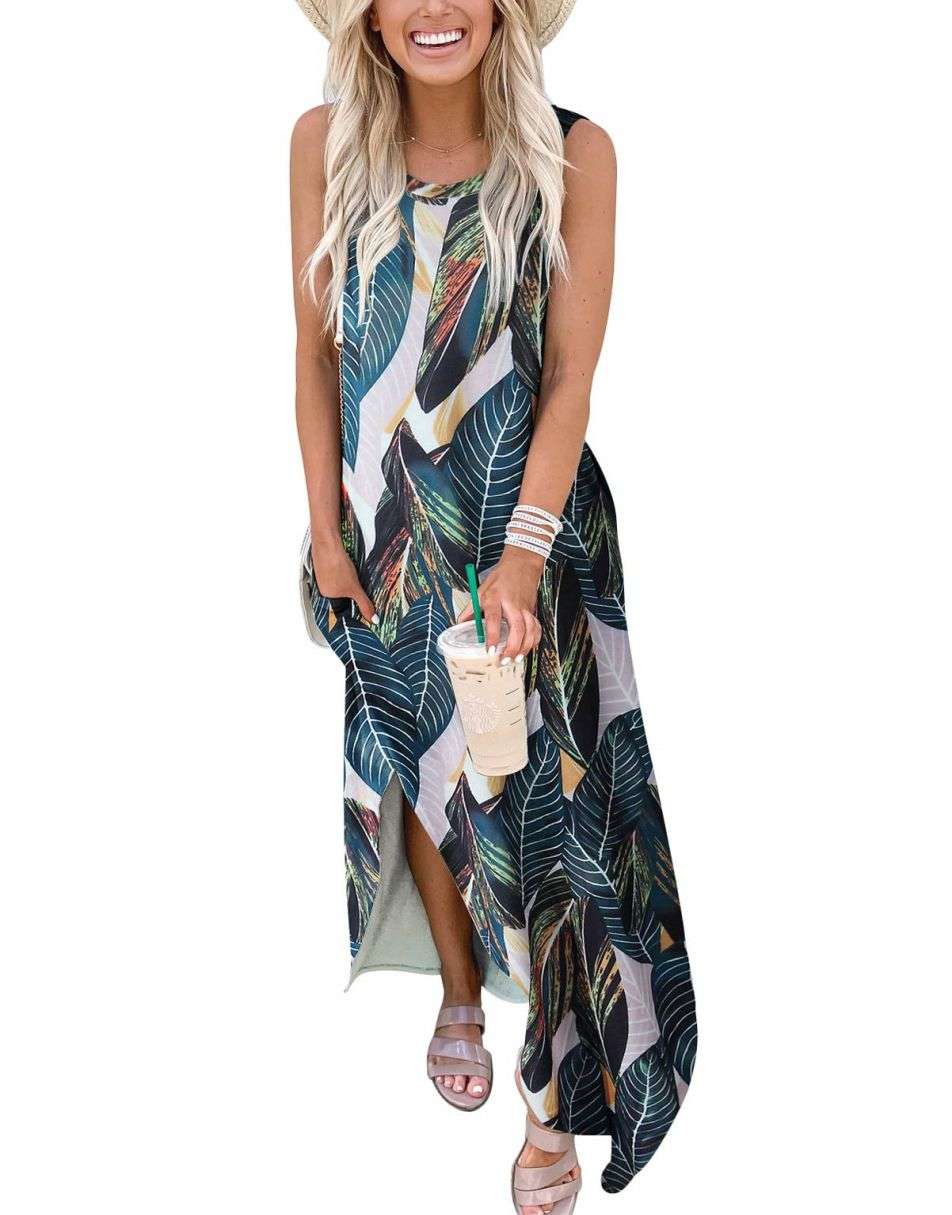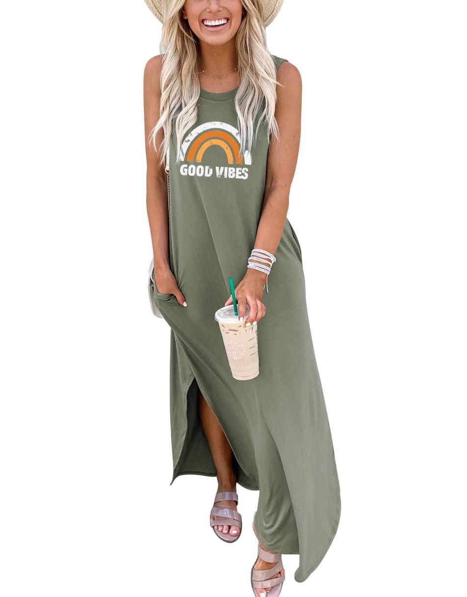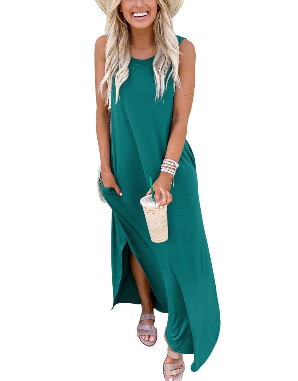 • Design:Sleeveless,crew neck,Long dress,side slit,summer beach dress,solid dress,tie dye dress,printed dress,casual loose fit.