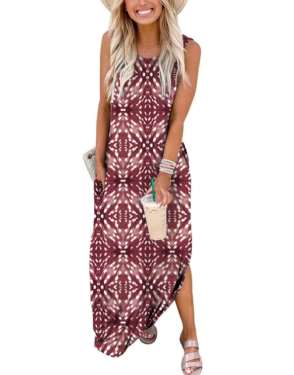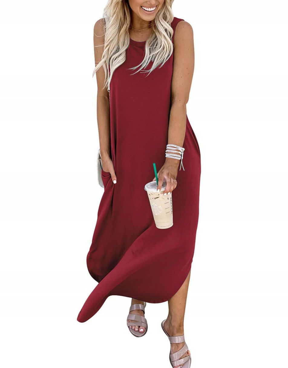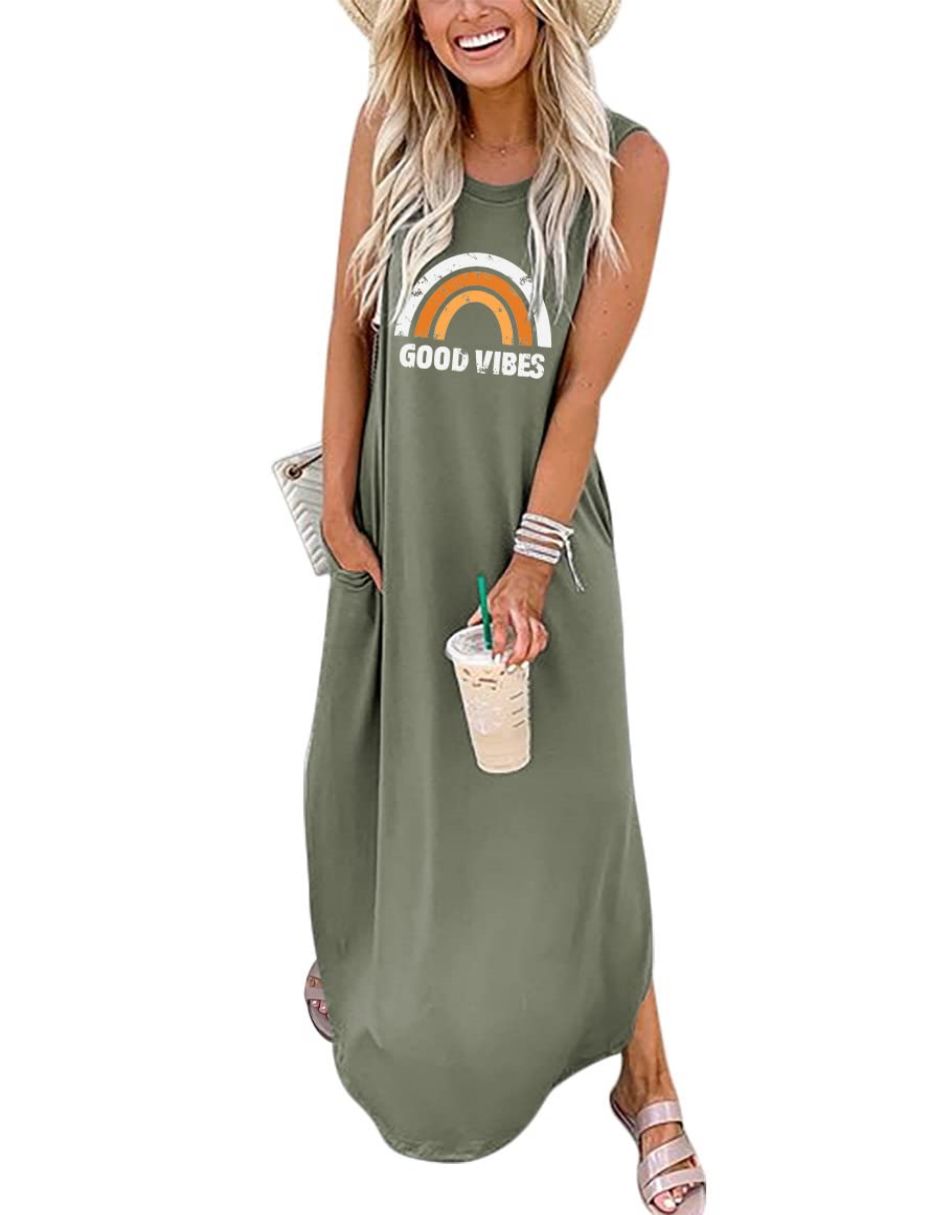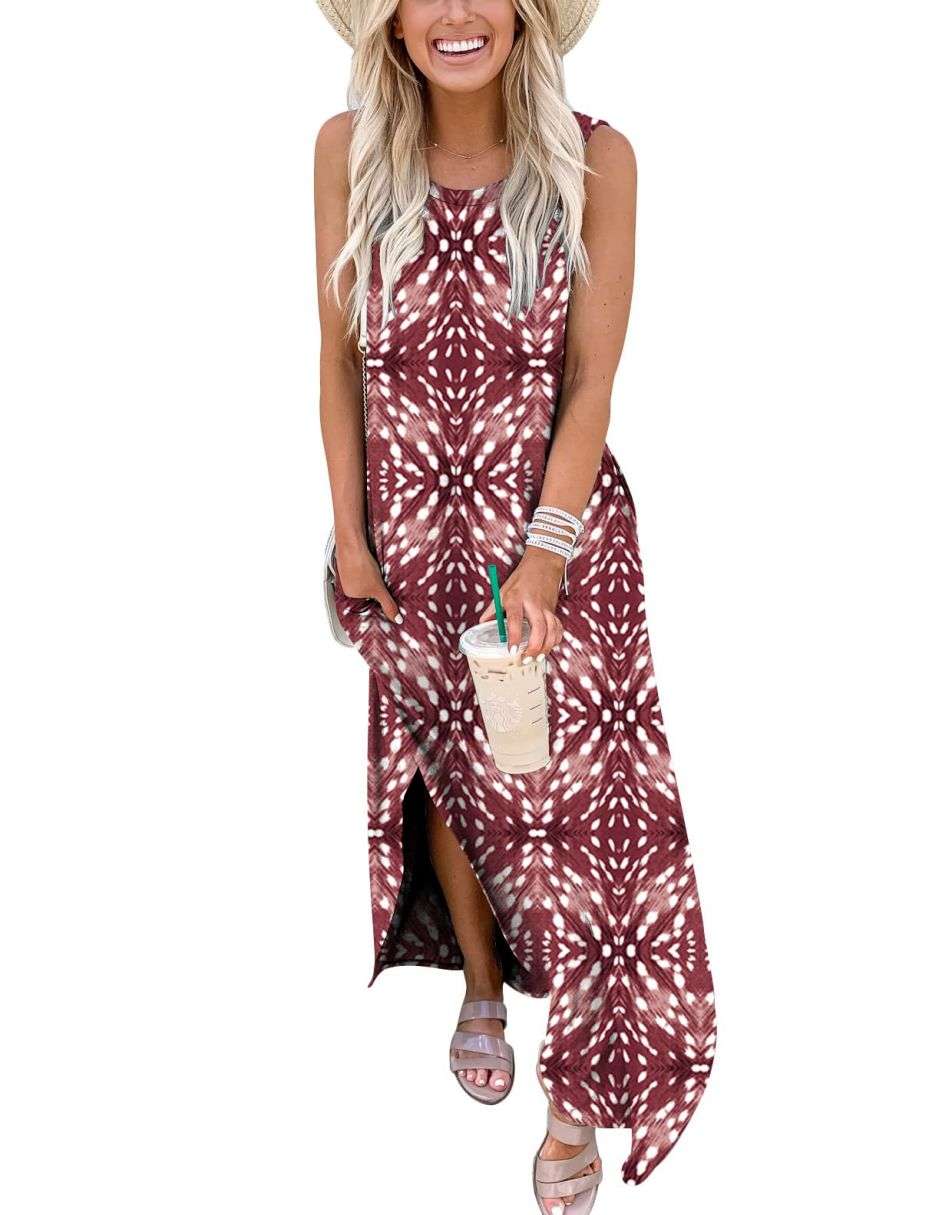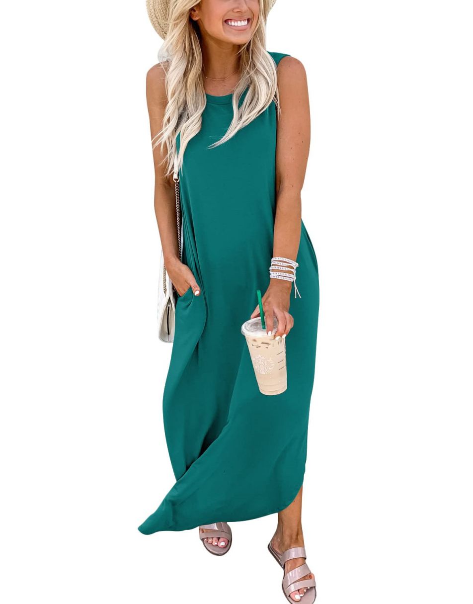 • Design:Sleeveless,crew neck,Long dress,side slit,summer beach dress,solid dress,tie dye dress,printed dress,casual loose fit.