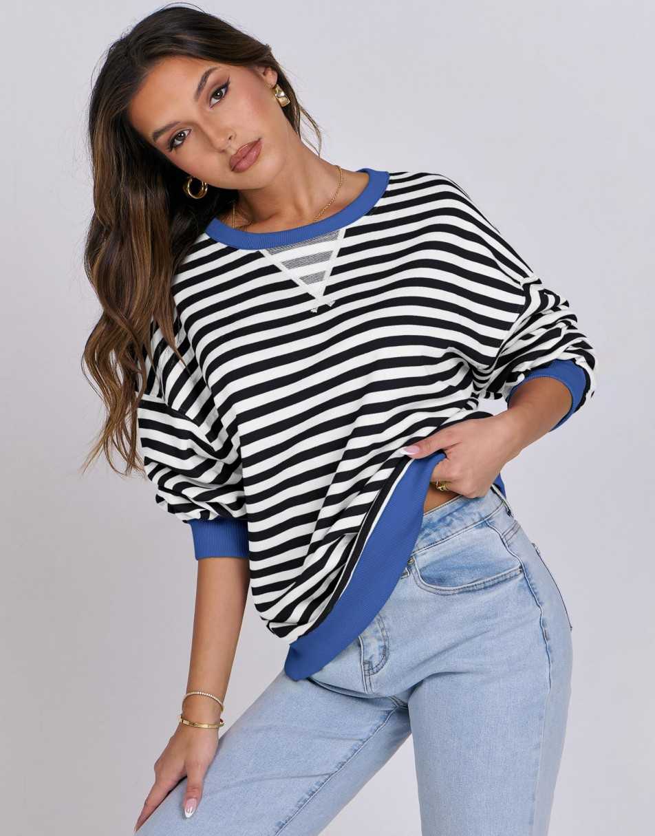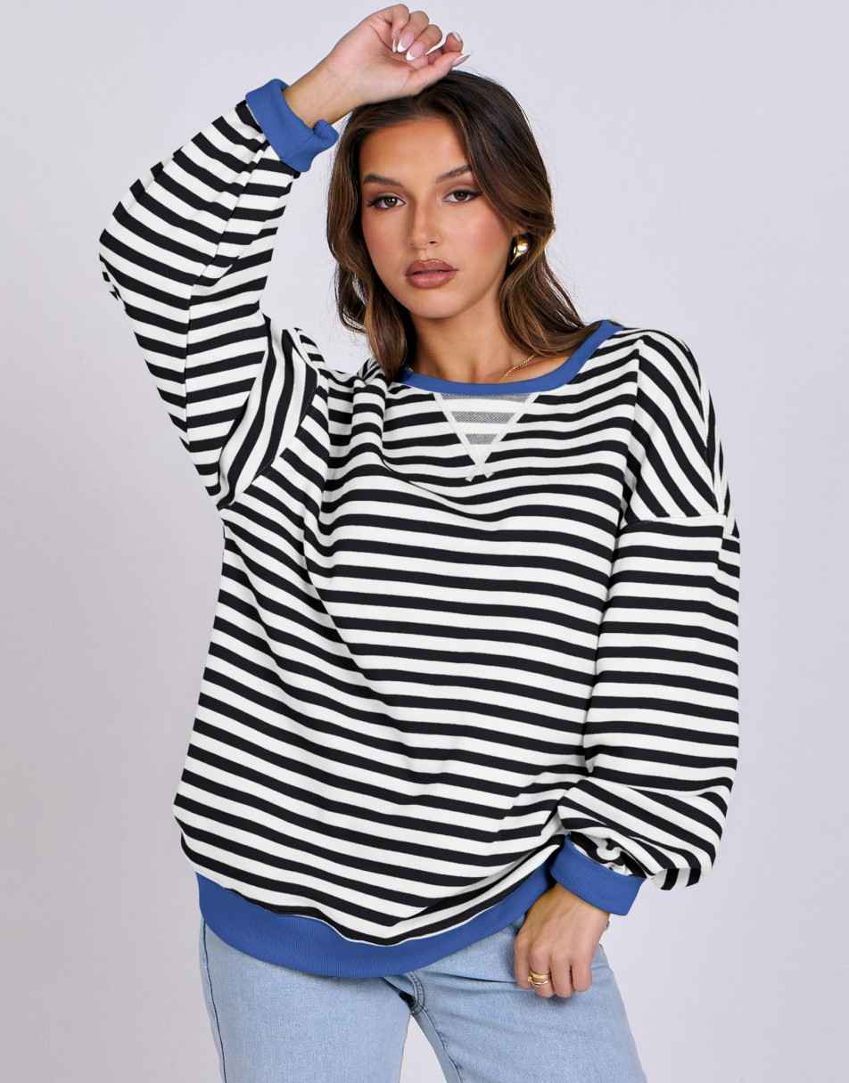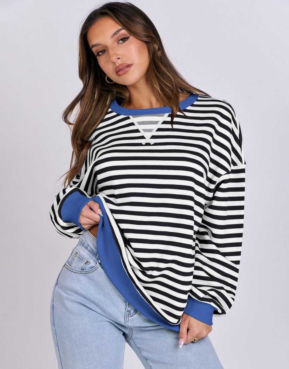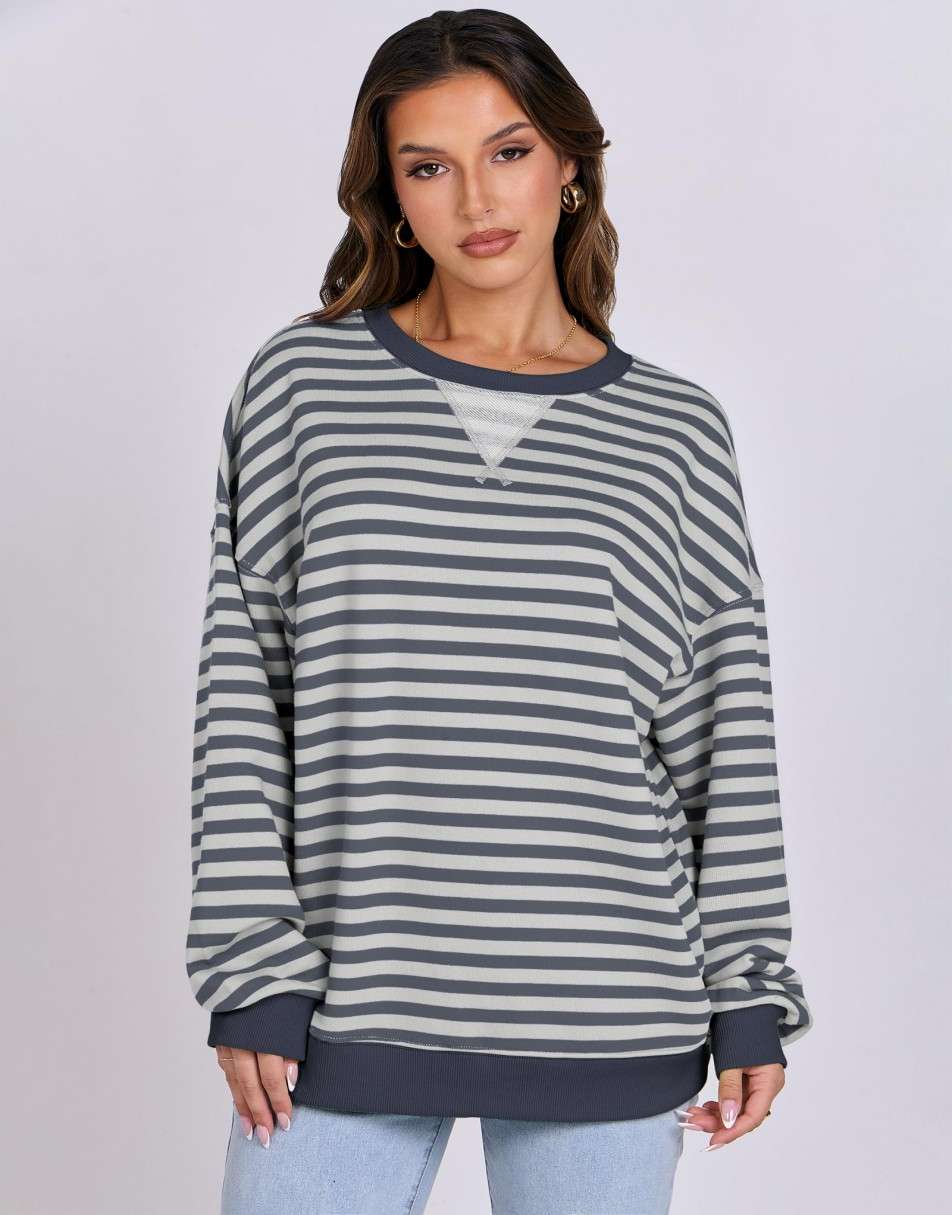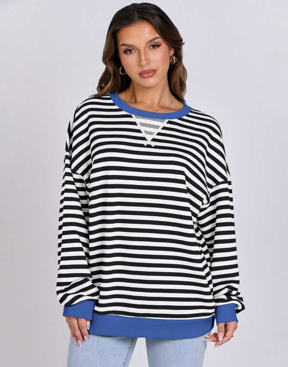 • ANRABESS Women Striped Oversized Sweatshirt Long Sleeve Crewneck Shirts 2024 Fall Fashion Pullover Sweater Trendy Clothes