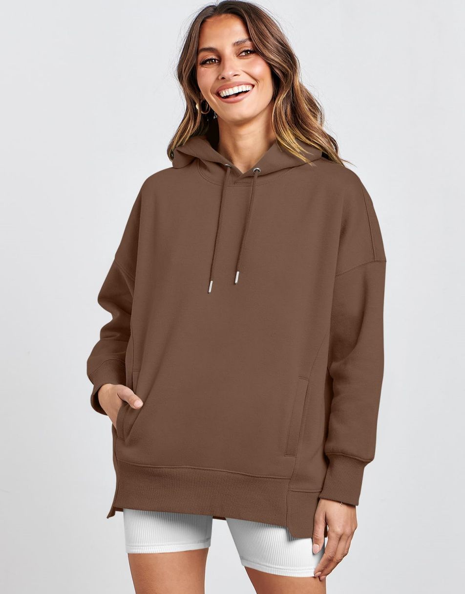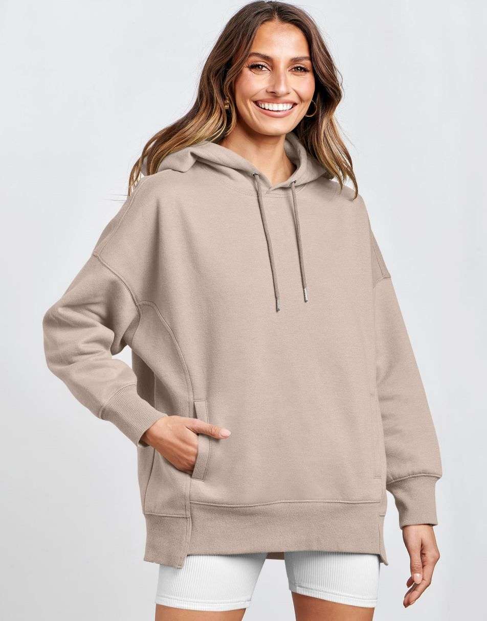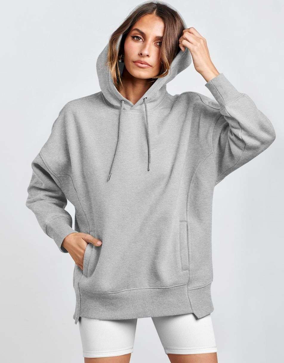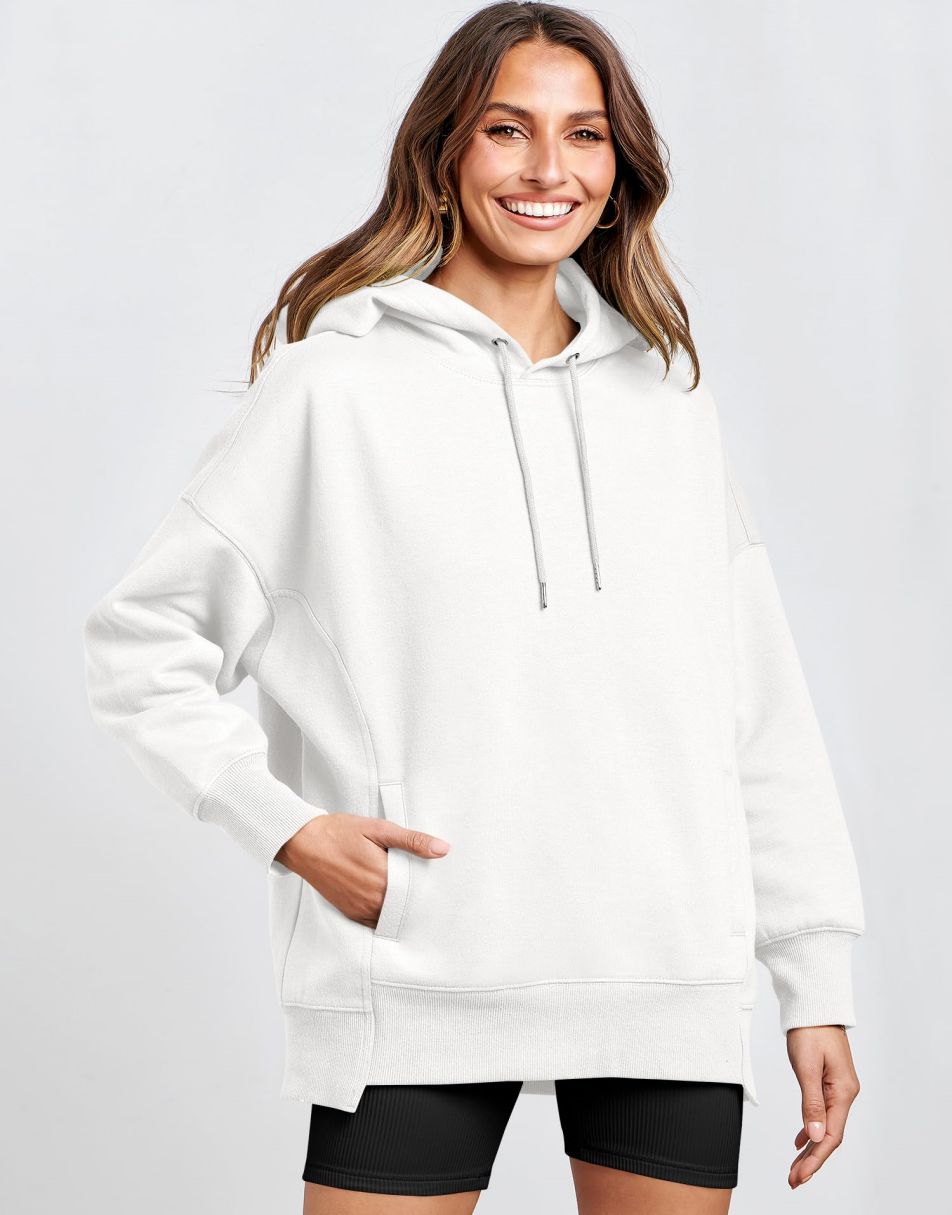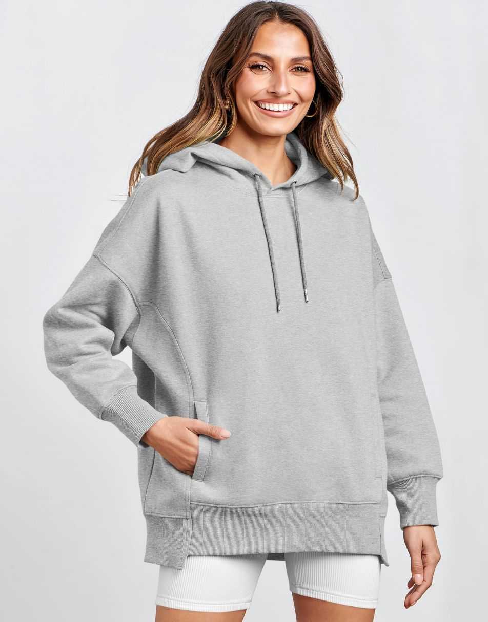 Design: Oversized hoodie with adjustable drawstrings, drop shoulder, ribbed hem and cuffs, fleece lining. Fall winter fashion clothes, and y2k fleece casual style.