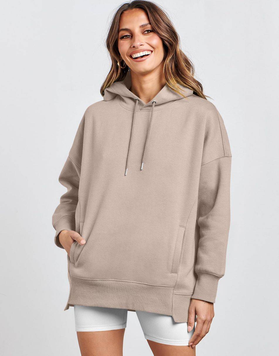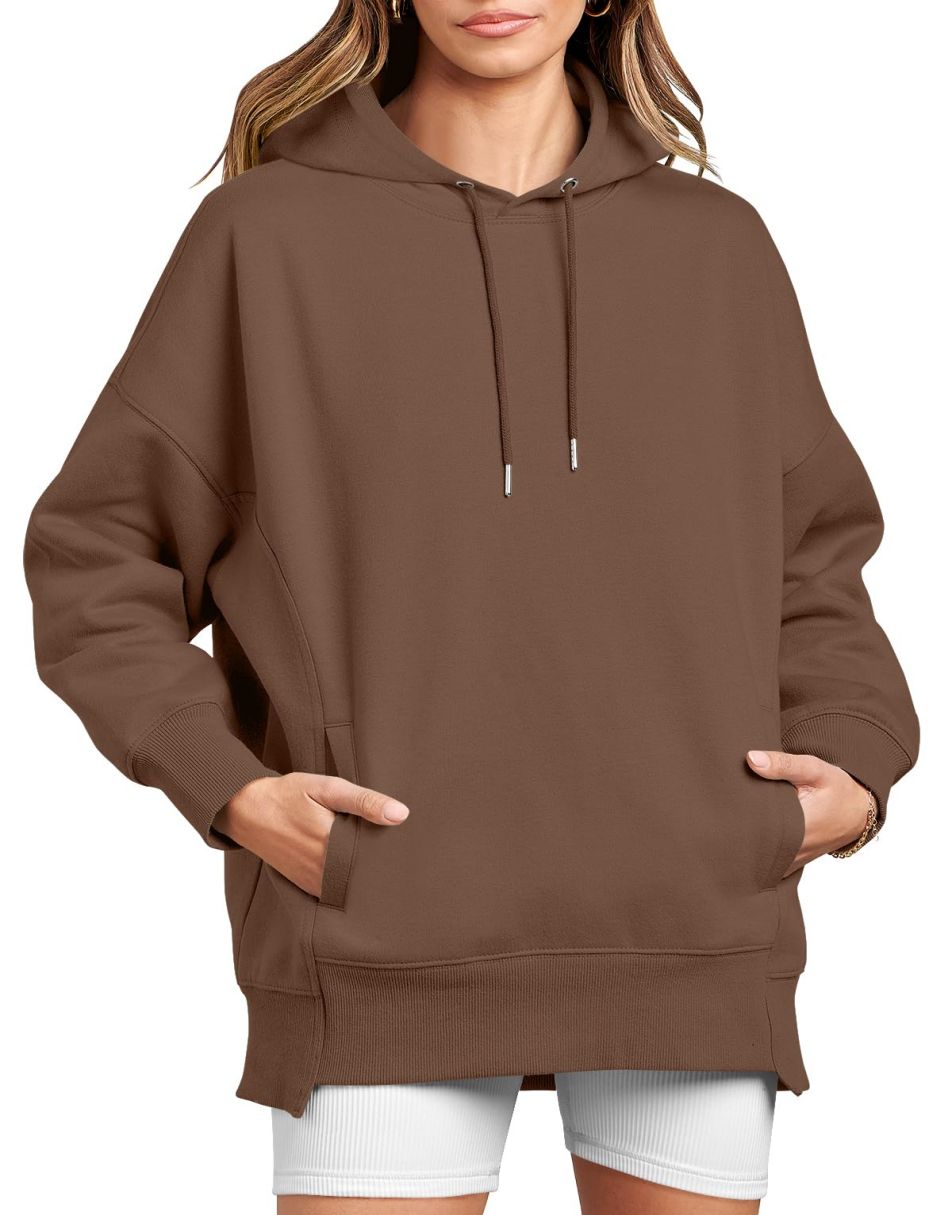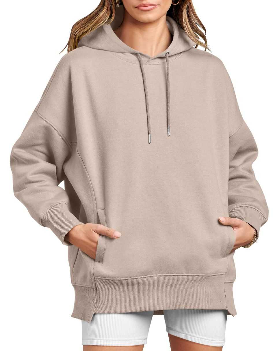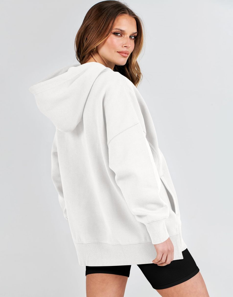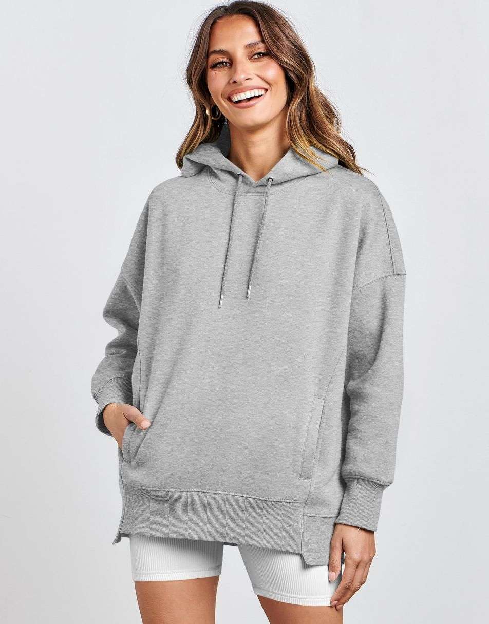 Design: Oversized hoodie with adjustable drawstrings, drop shoulder, ribbed hem and cuffs, fleece lining. Fall winter fashion clothes, and y2k fleece casual style.