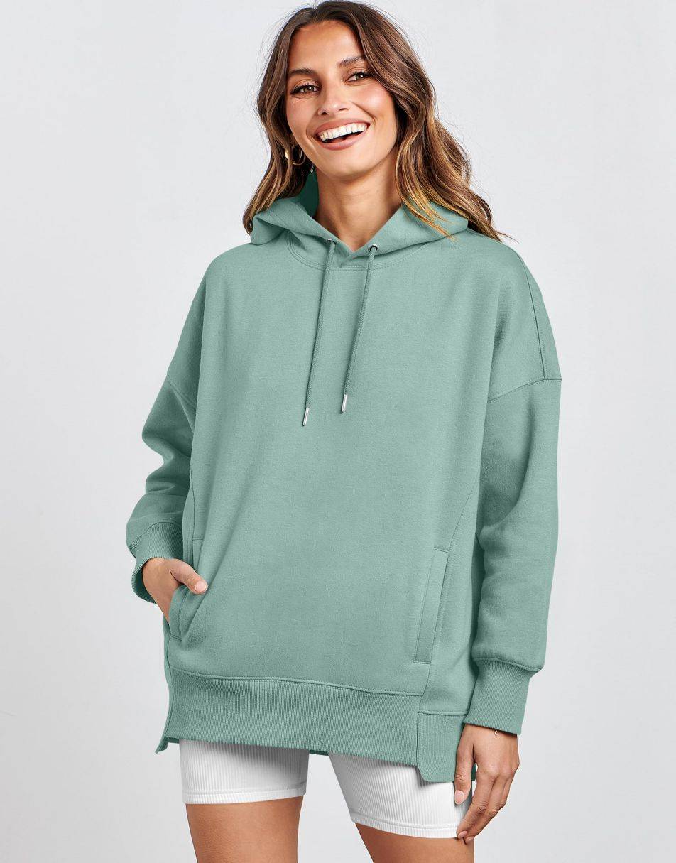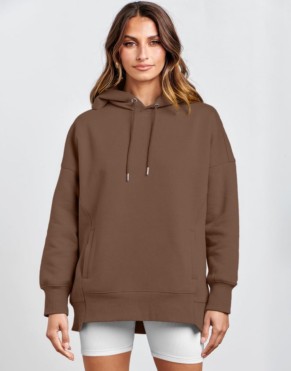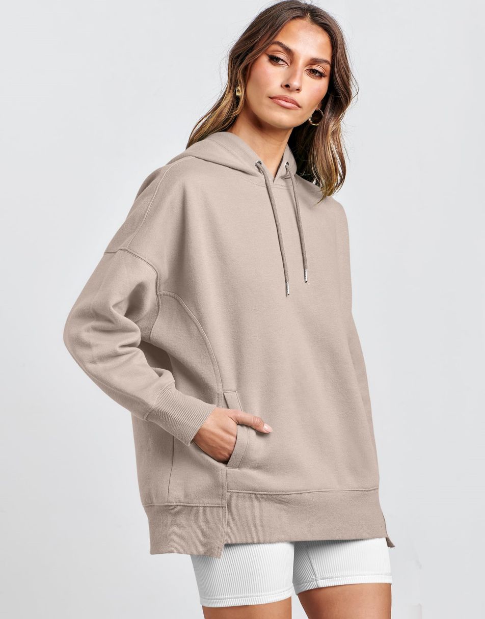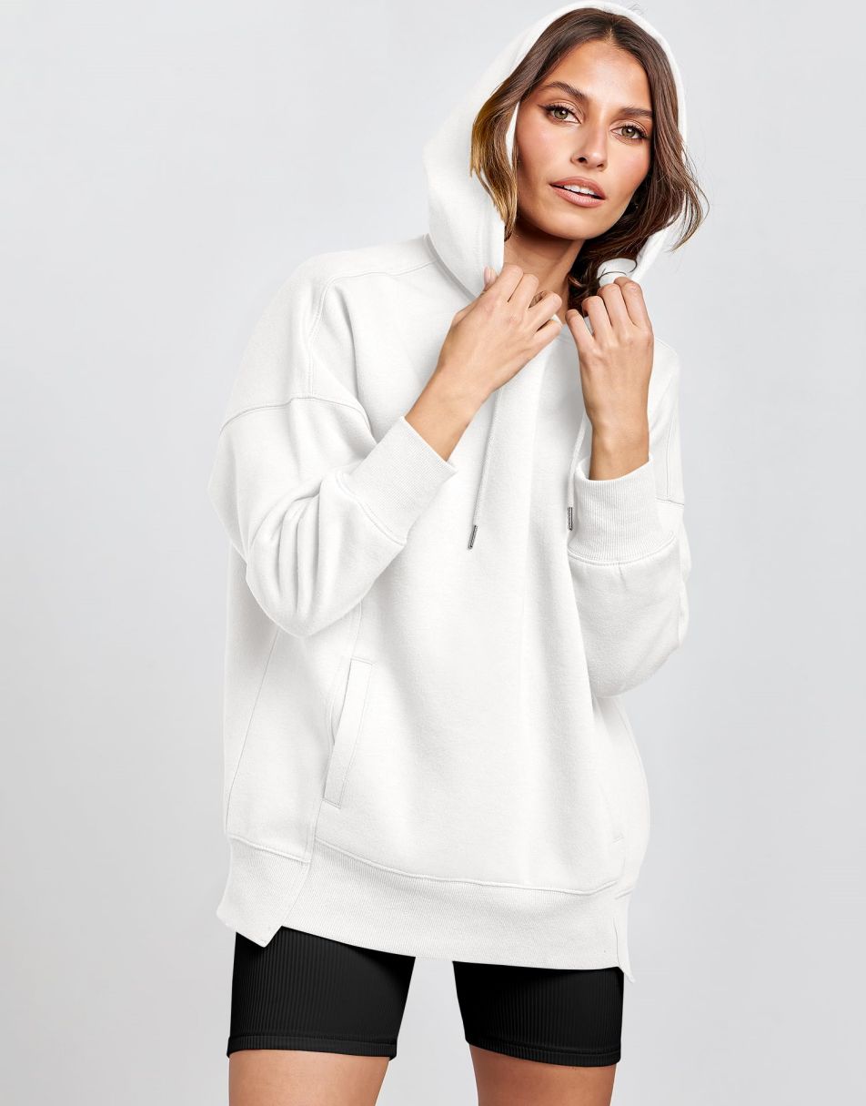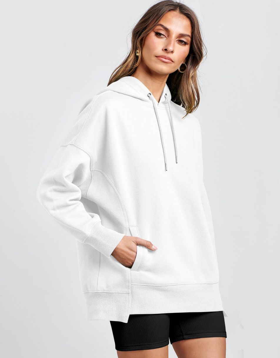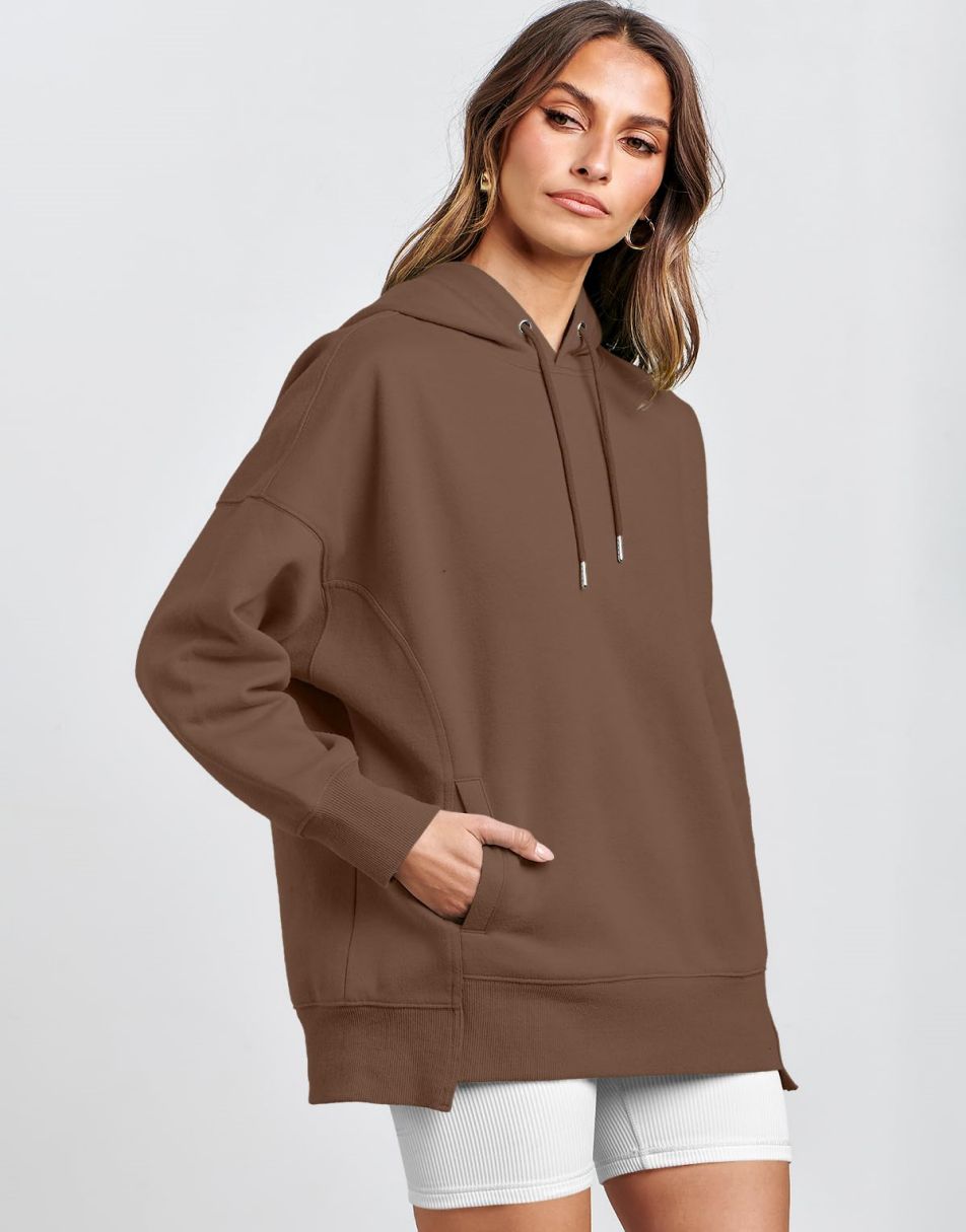 Design: Oversized hoodie with adjustable drawstrings, drop shoulder, ribbed hem and cuffs, fleece lining. Fall winter fashion clothes, and y2k fleece casual style.