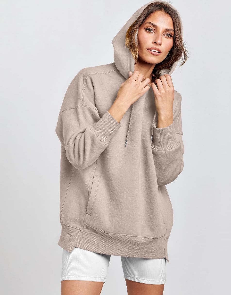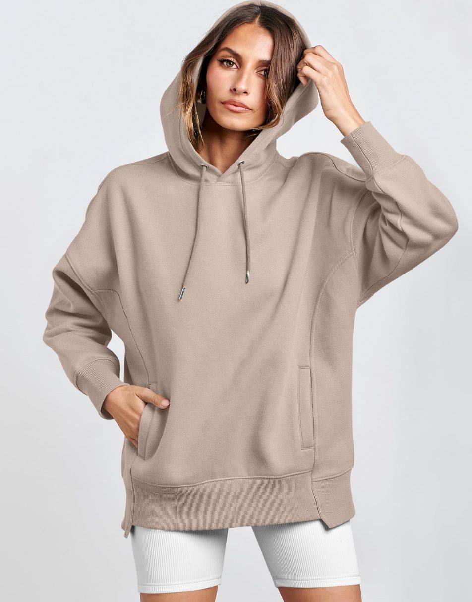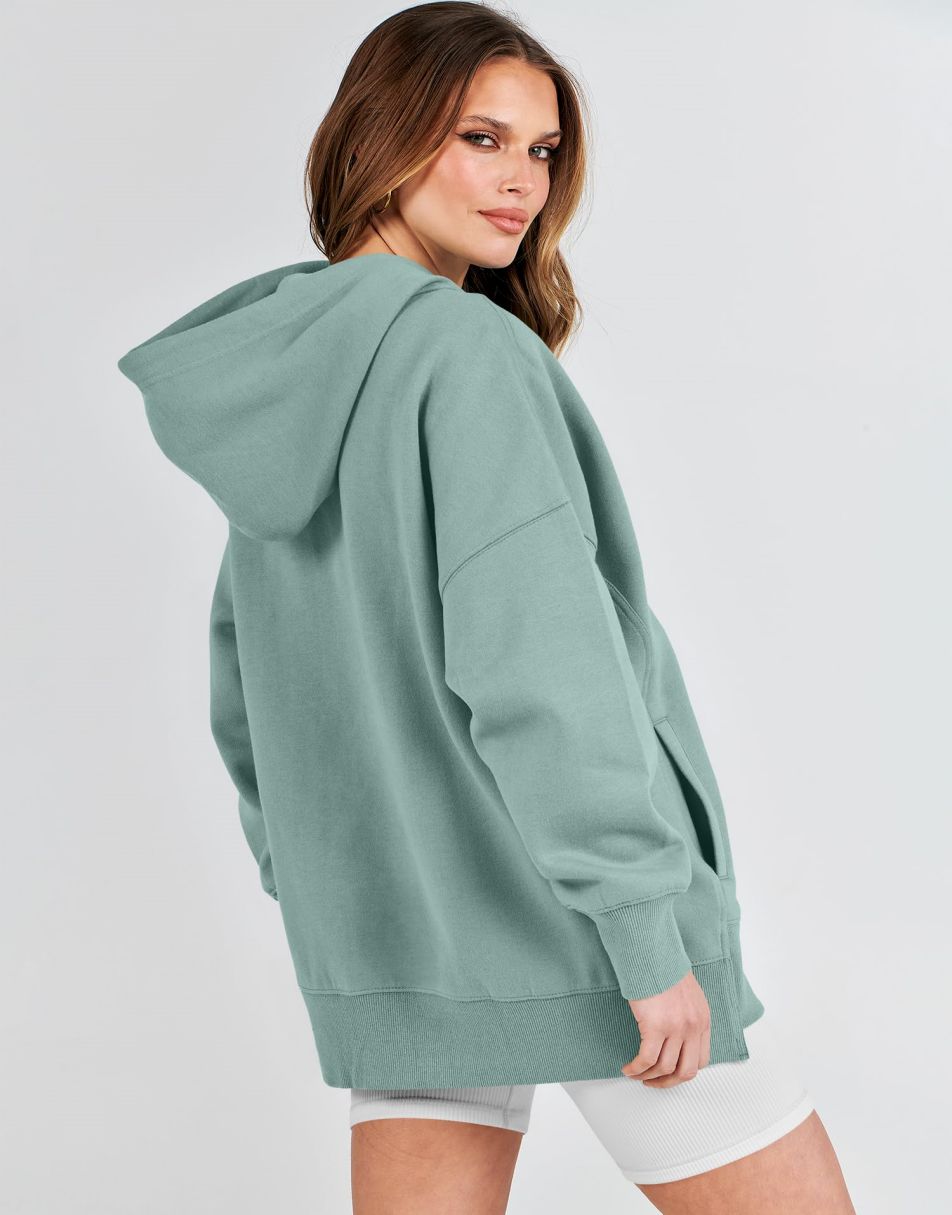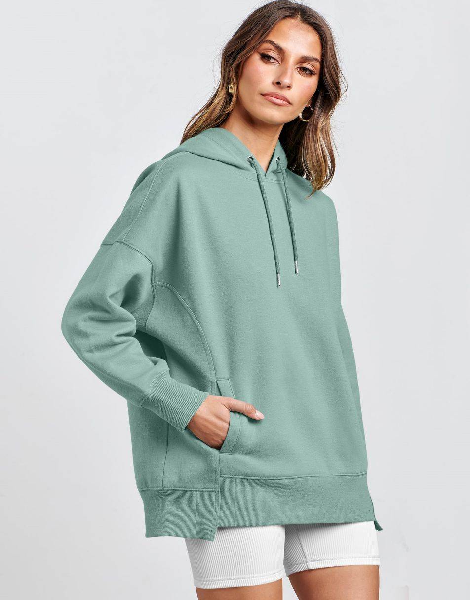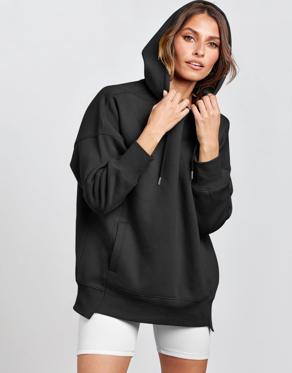 Design: Oversized hoodie with adjustable drawstrings, drop shoulder, ribbed hem and cuffs, fleece lining. Fall winter fashion clothes, and y2k fleece casual style.