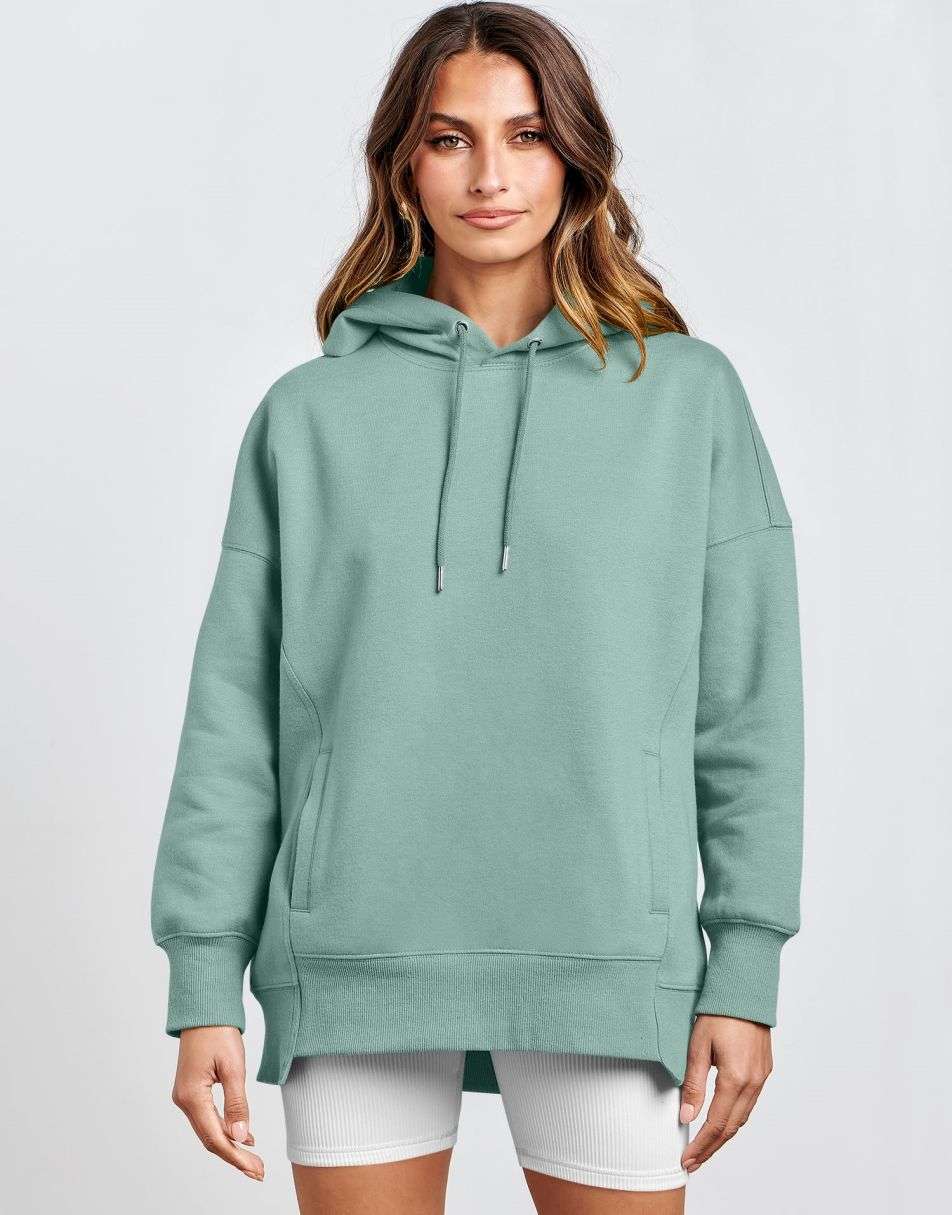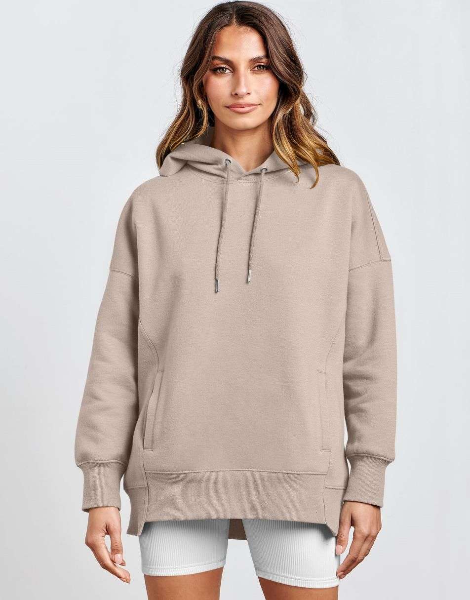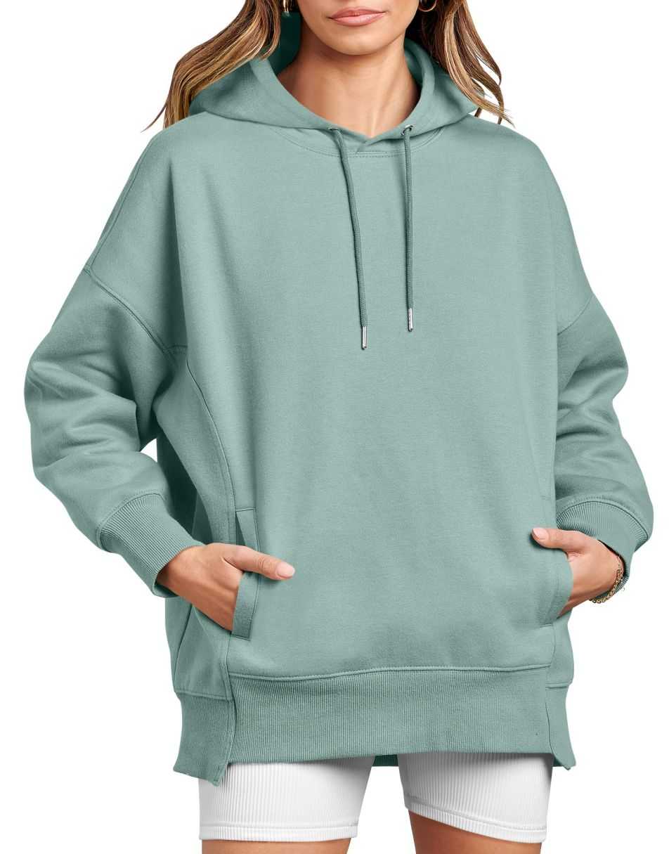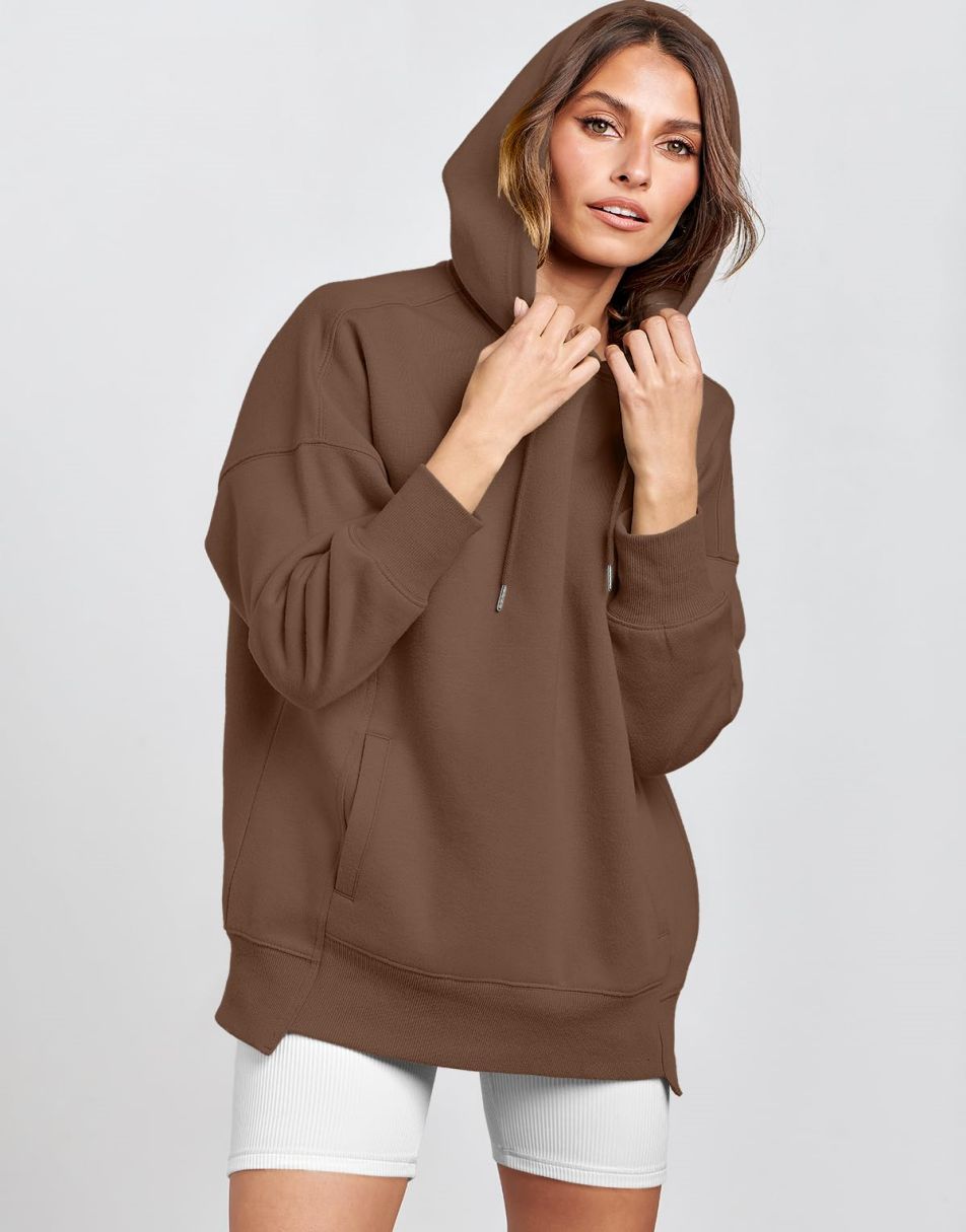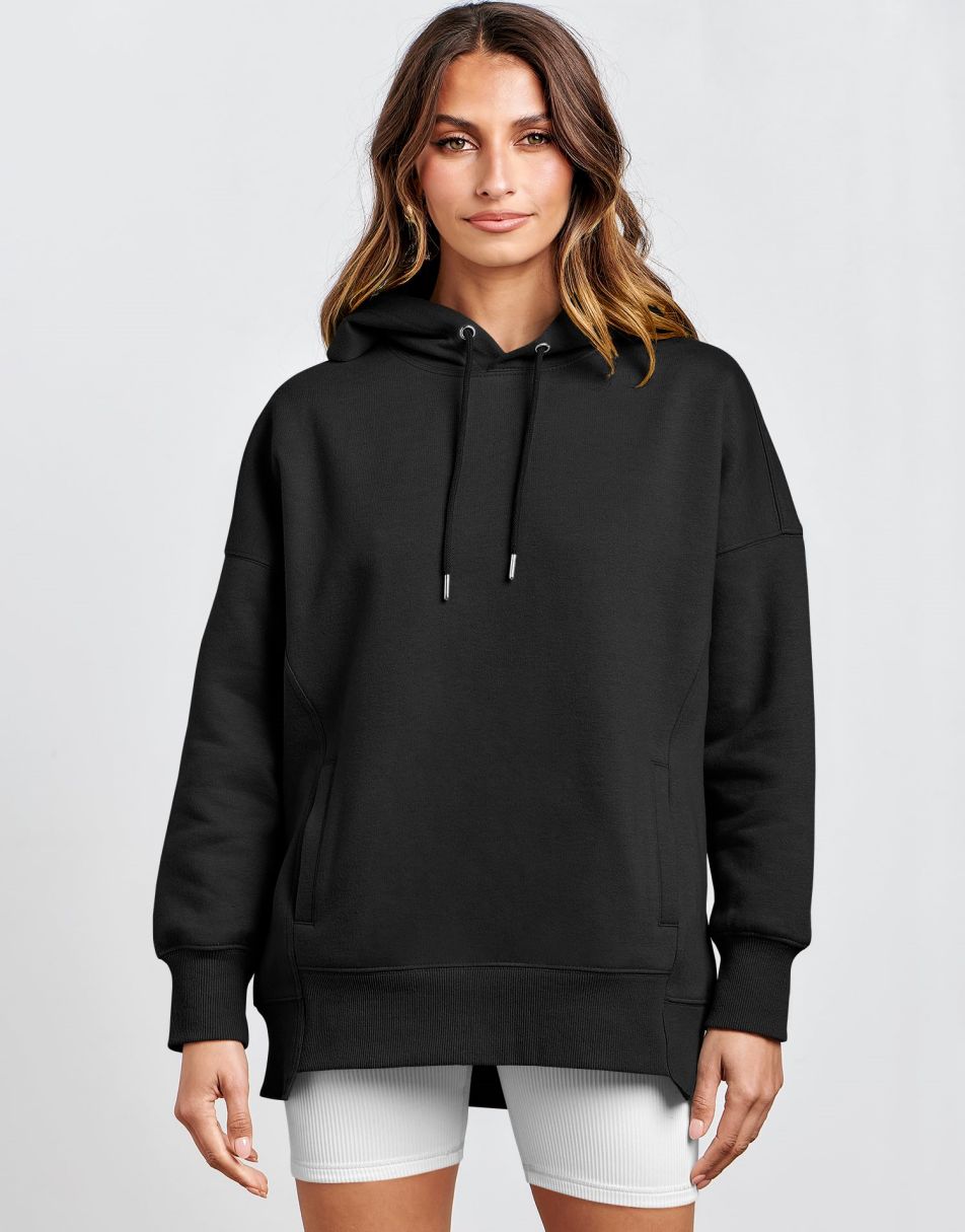 Design: Oversized hoodie with adjustable drawstrings, drop shoulder, ribbed hem and cuffs, fleece lining. Fall winter fashion clothes, and y2k fleece casual style.