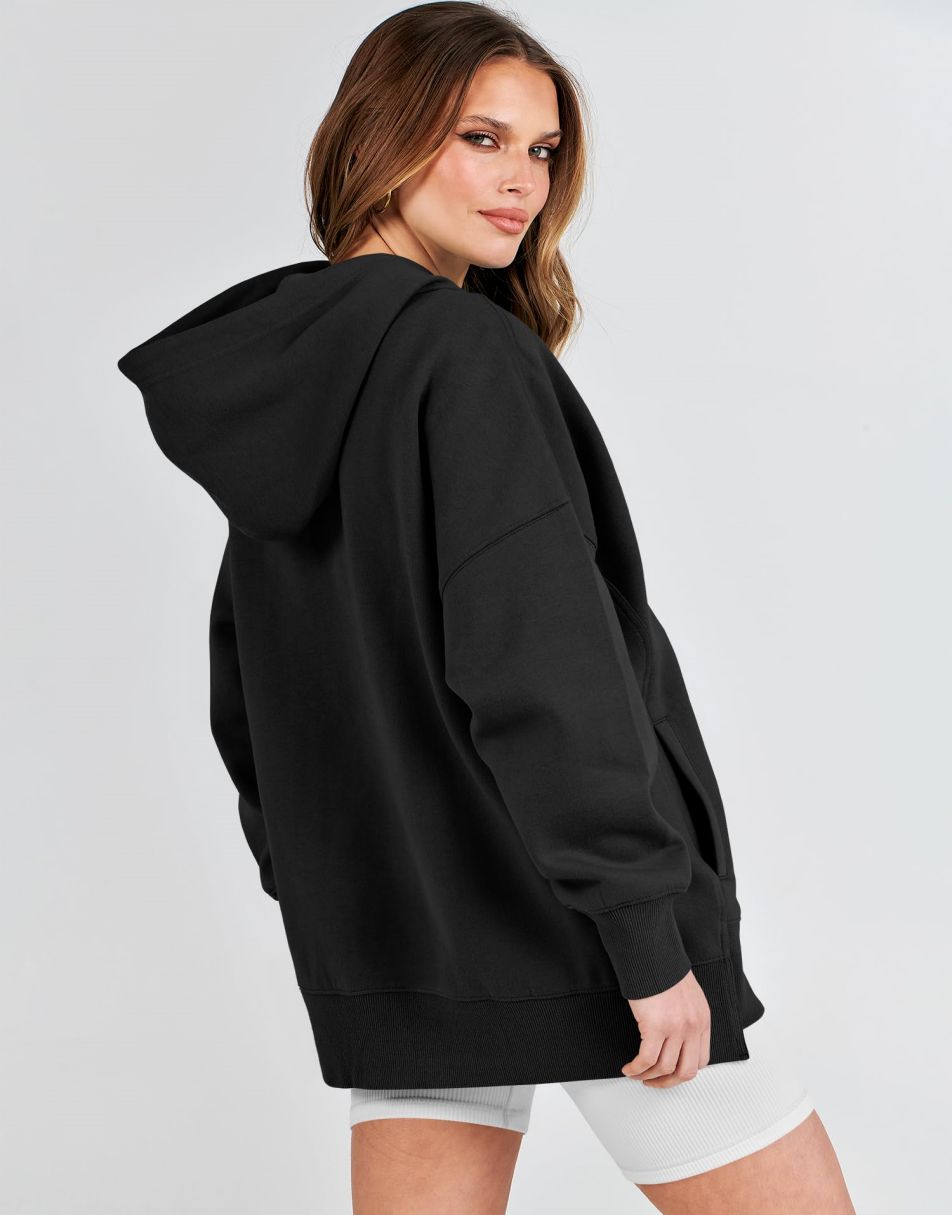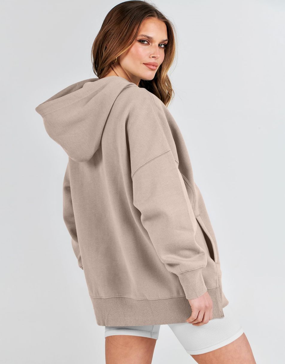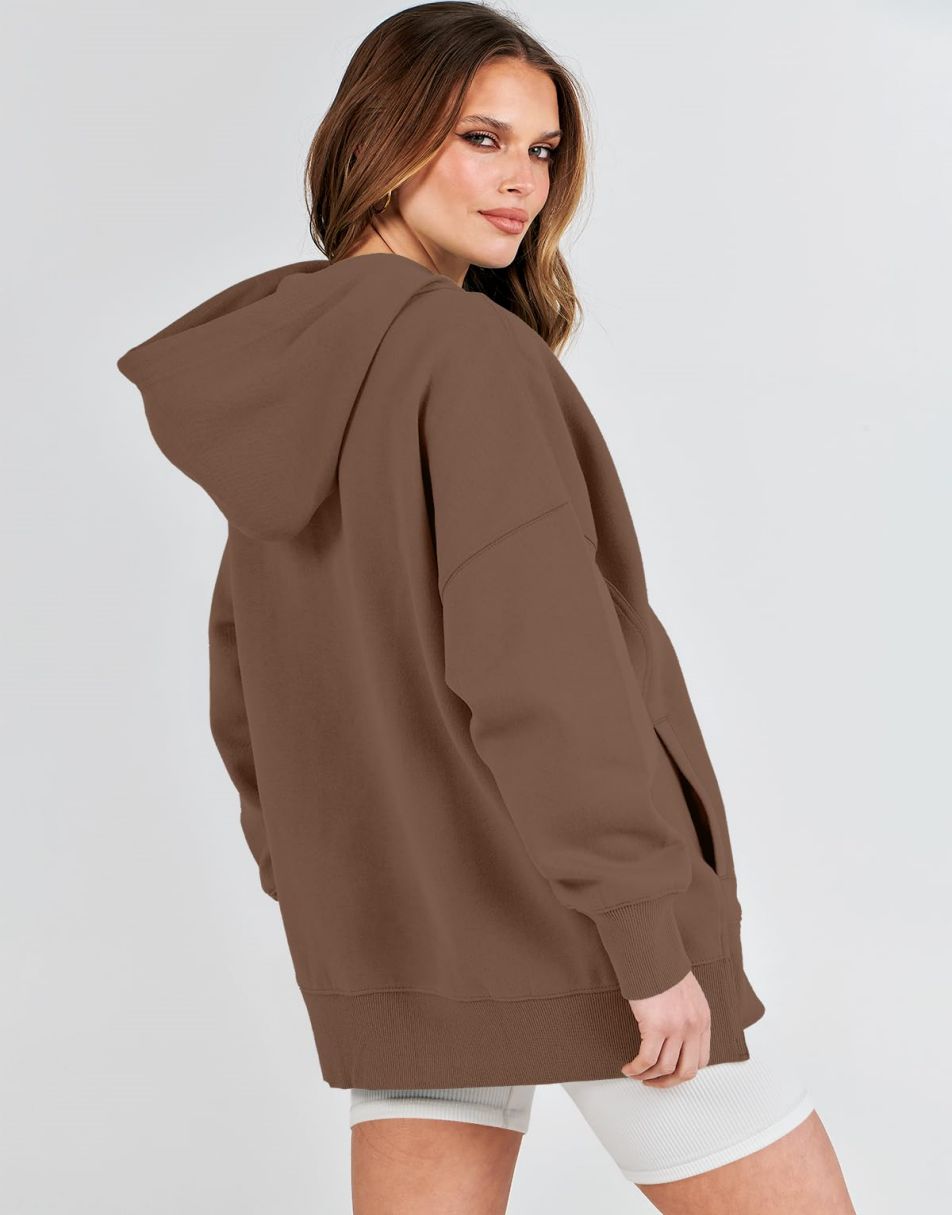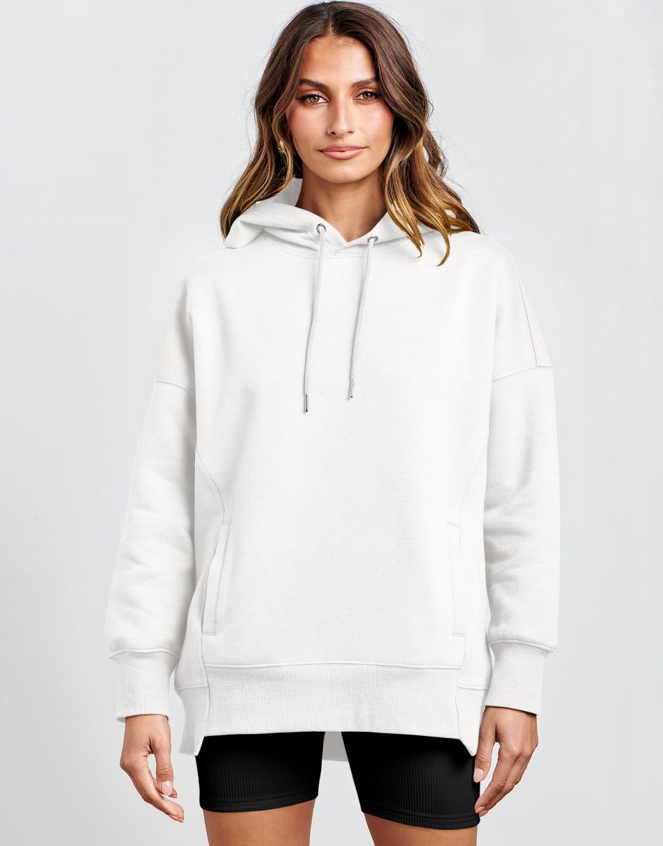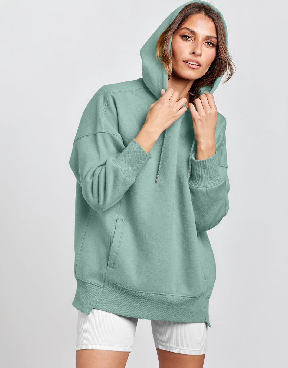 Design: Oversized hoodie with adjustable drawstrings, drop shoulder, ribbed hem and cuffs, fleece lining. Fall winter fashion clothes, and y2k fleece casual style.