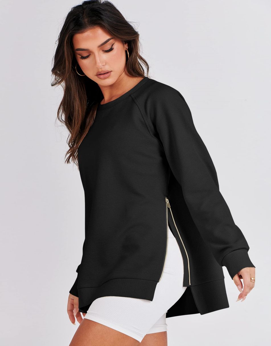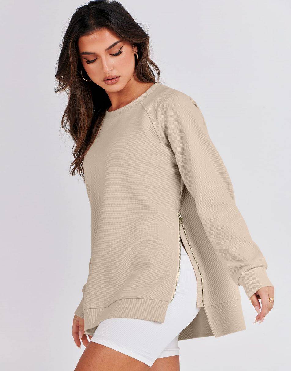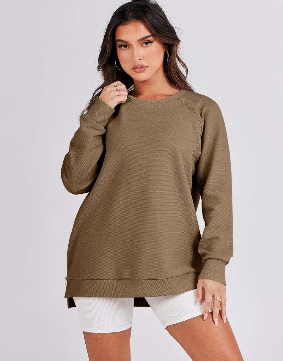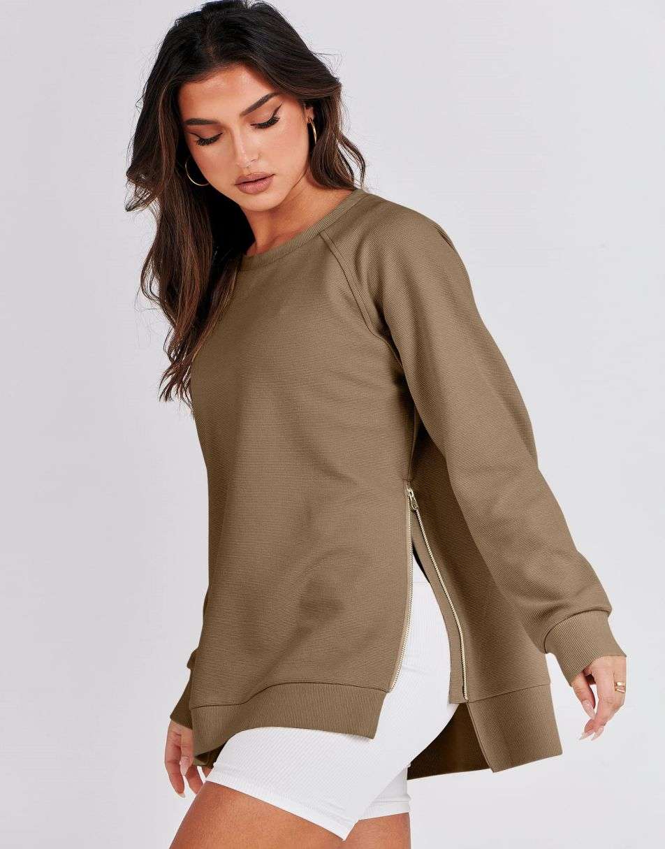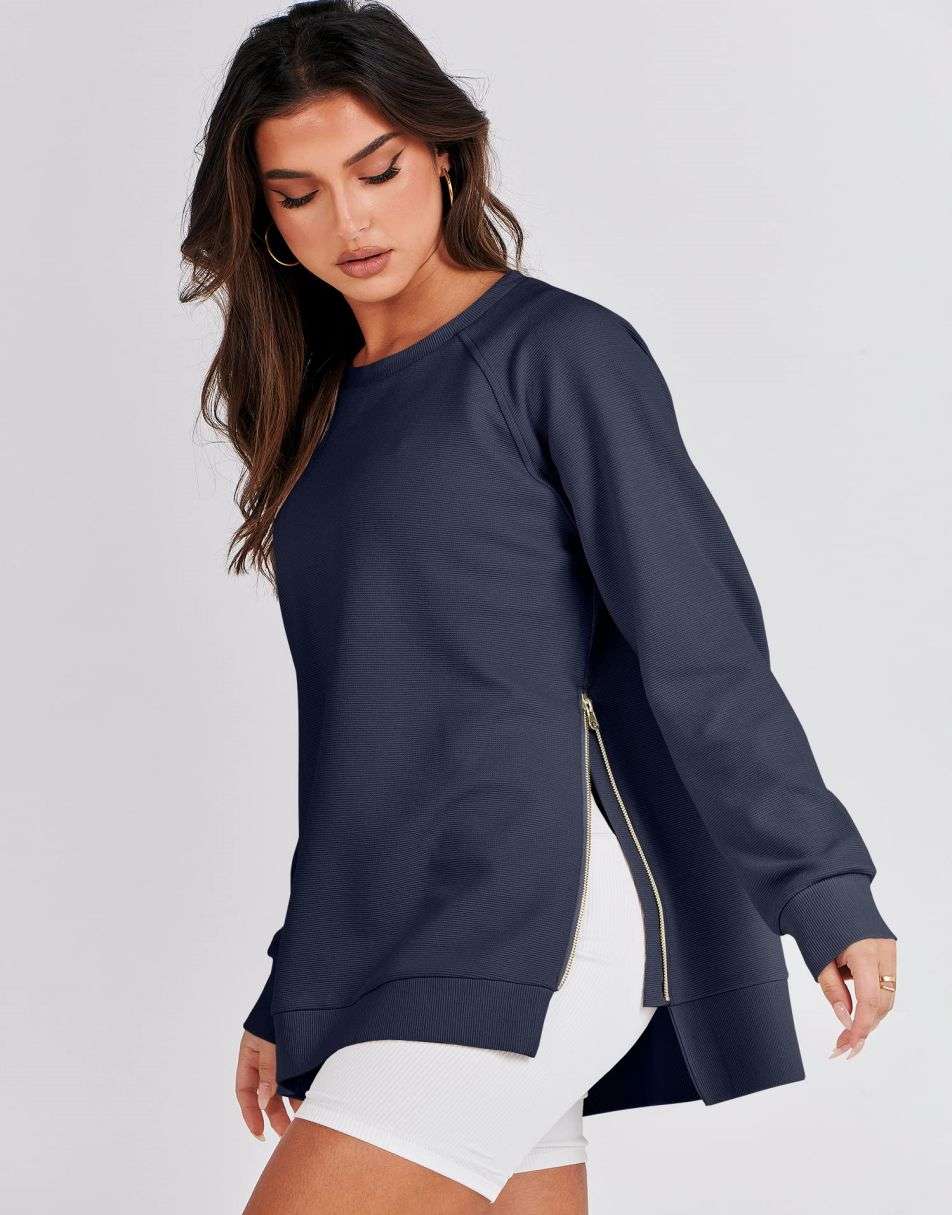 • ANRABESS Women's Sweatshirts Long Sleeve Tunic Tops Crew Neck Soft Pullover With Side Zipper Shirt Clothes 2023