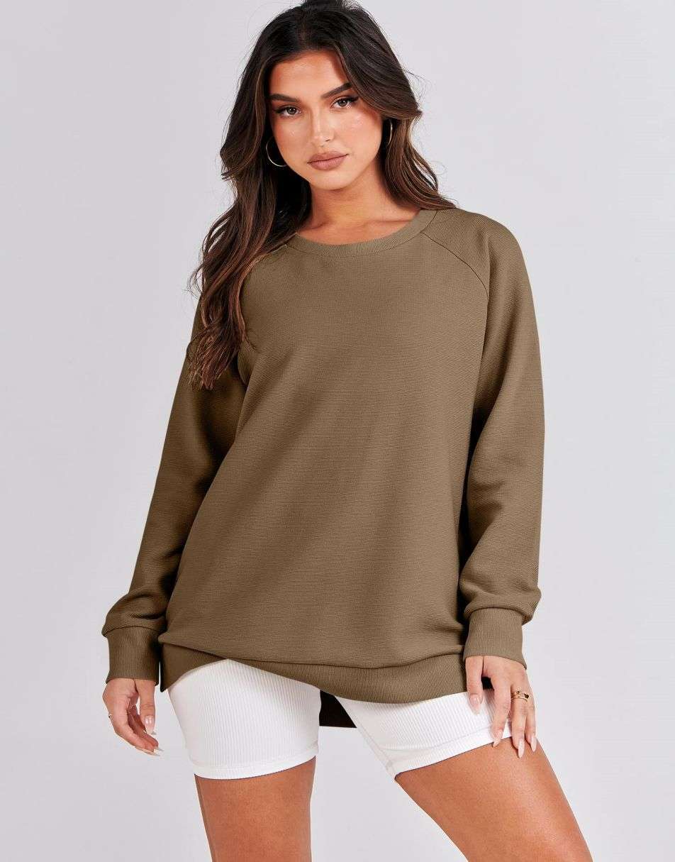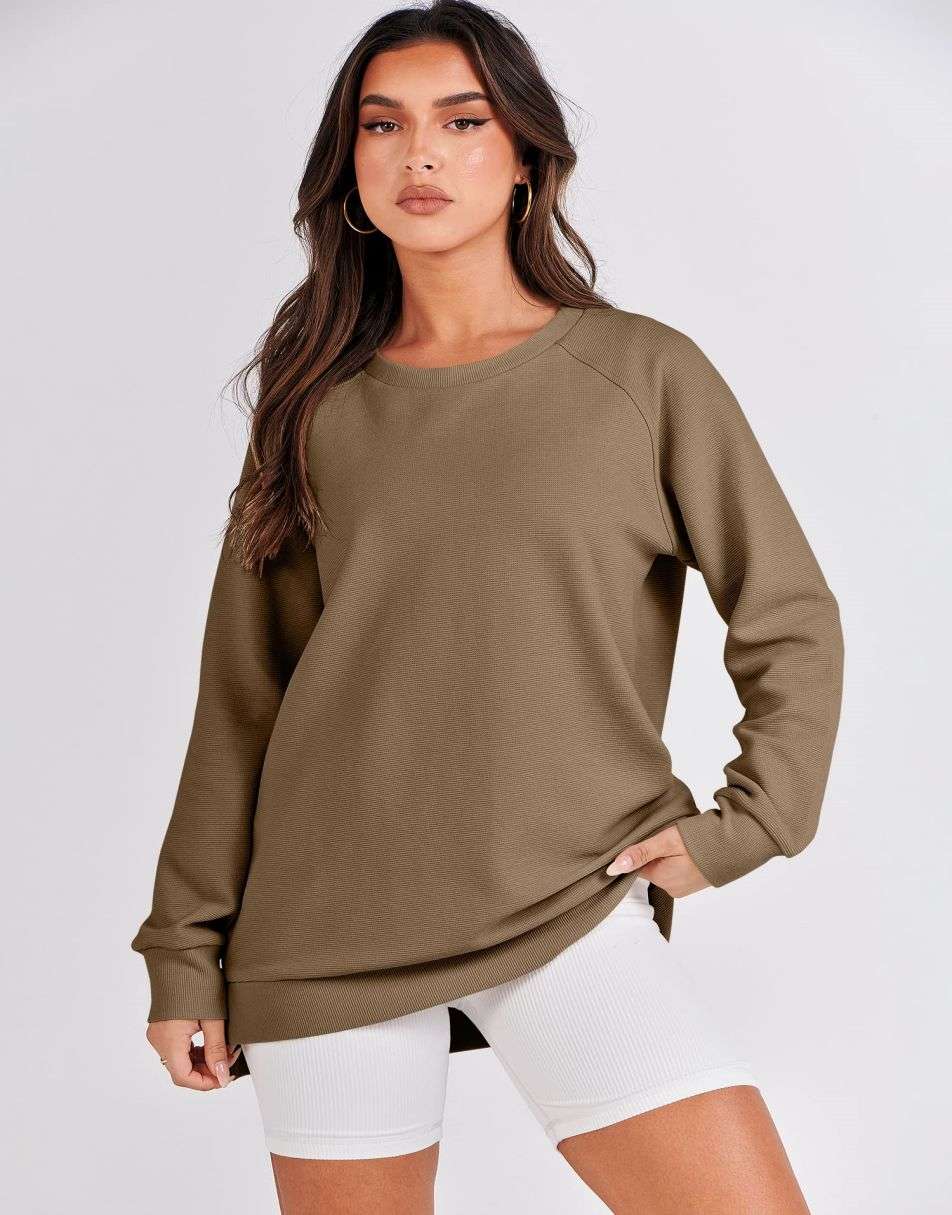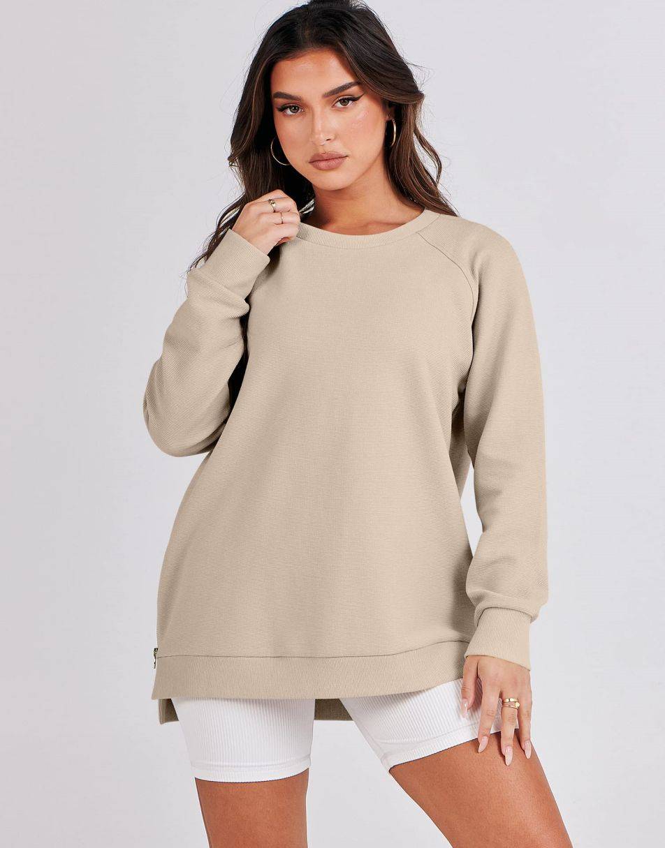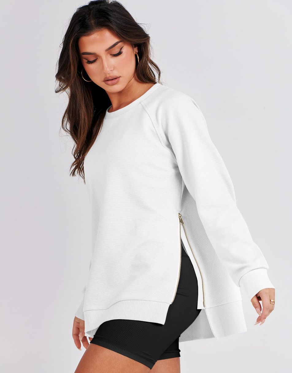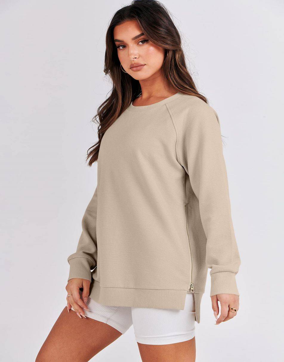 • ANRABESS Women's Sweatshirts Long Sleeve Tunic Tops Crew Neck Soft Pullover With Side Zipper Shirt Clothes 2023