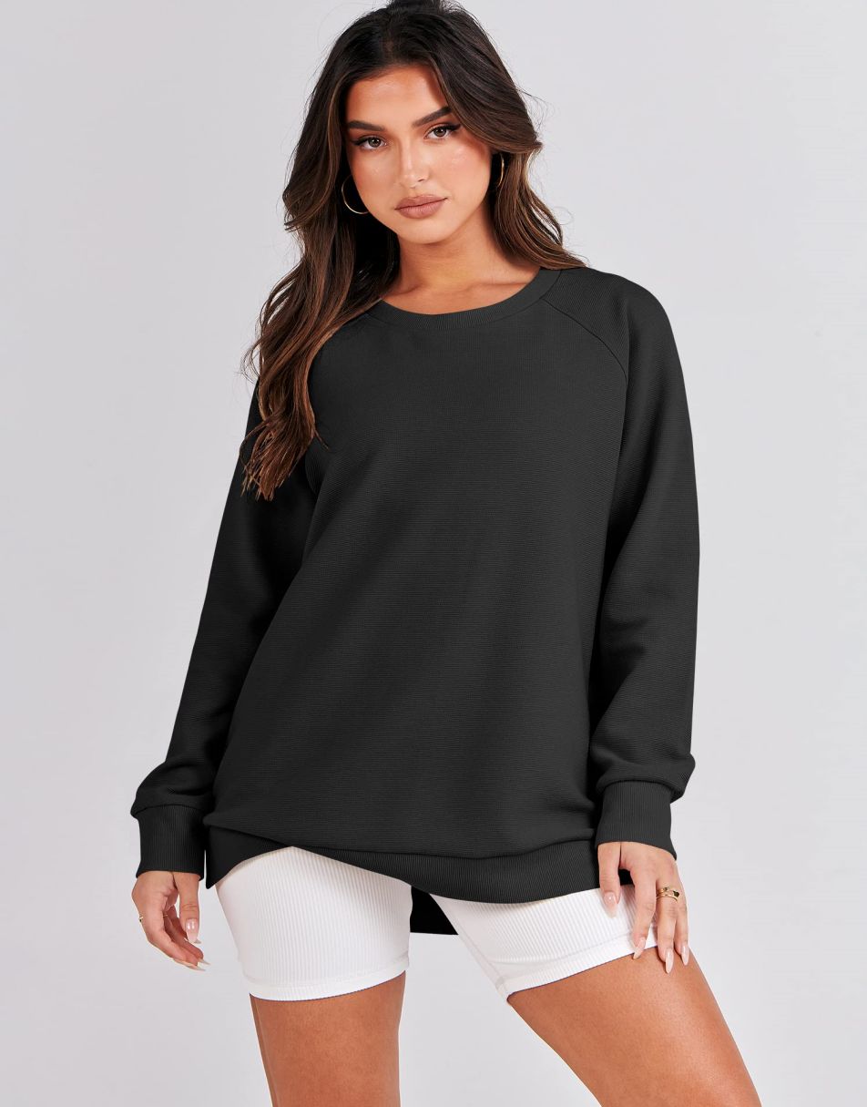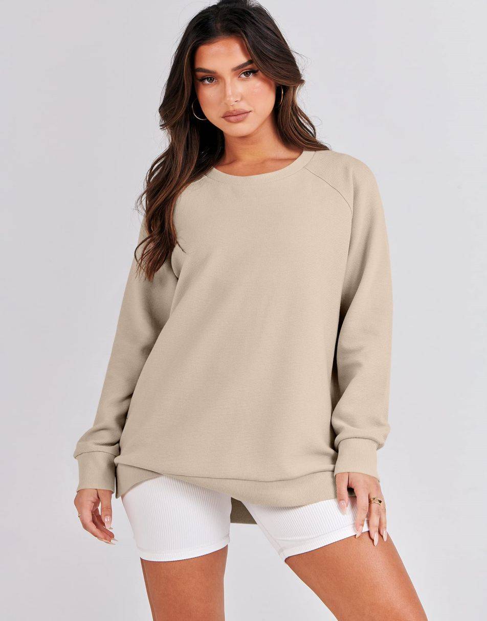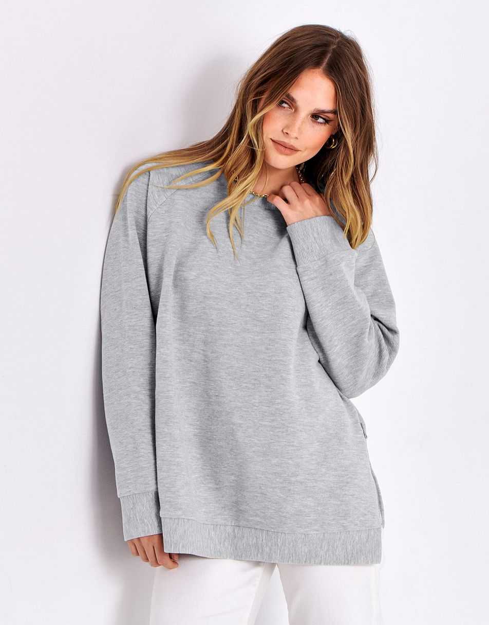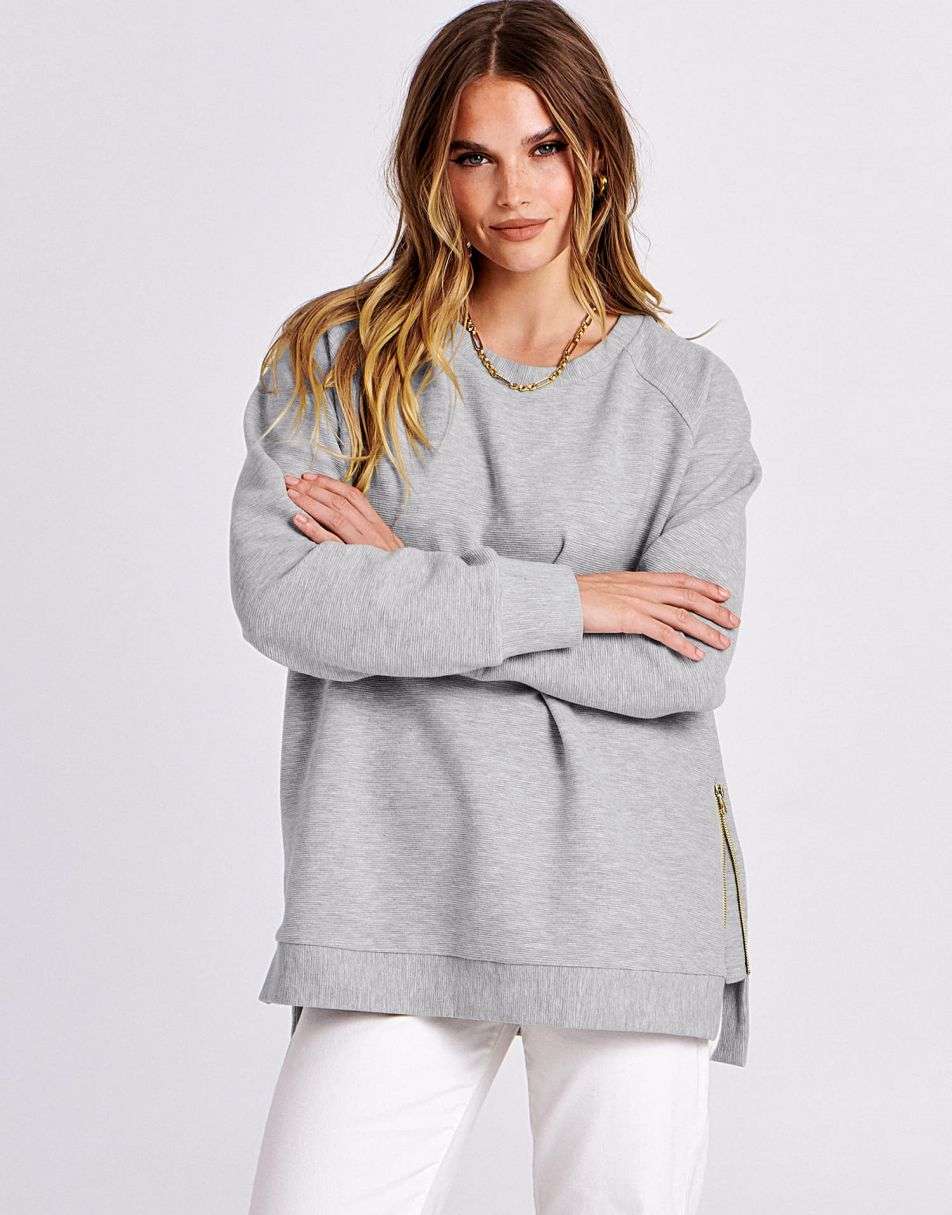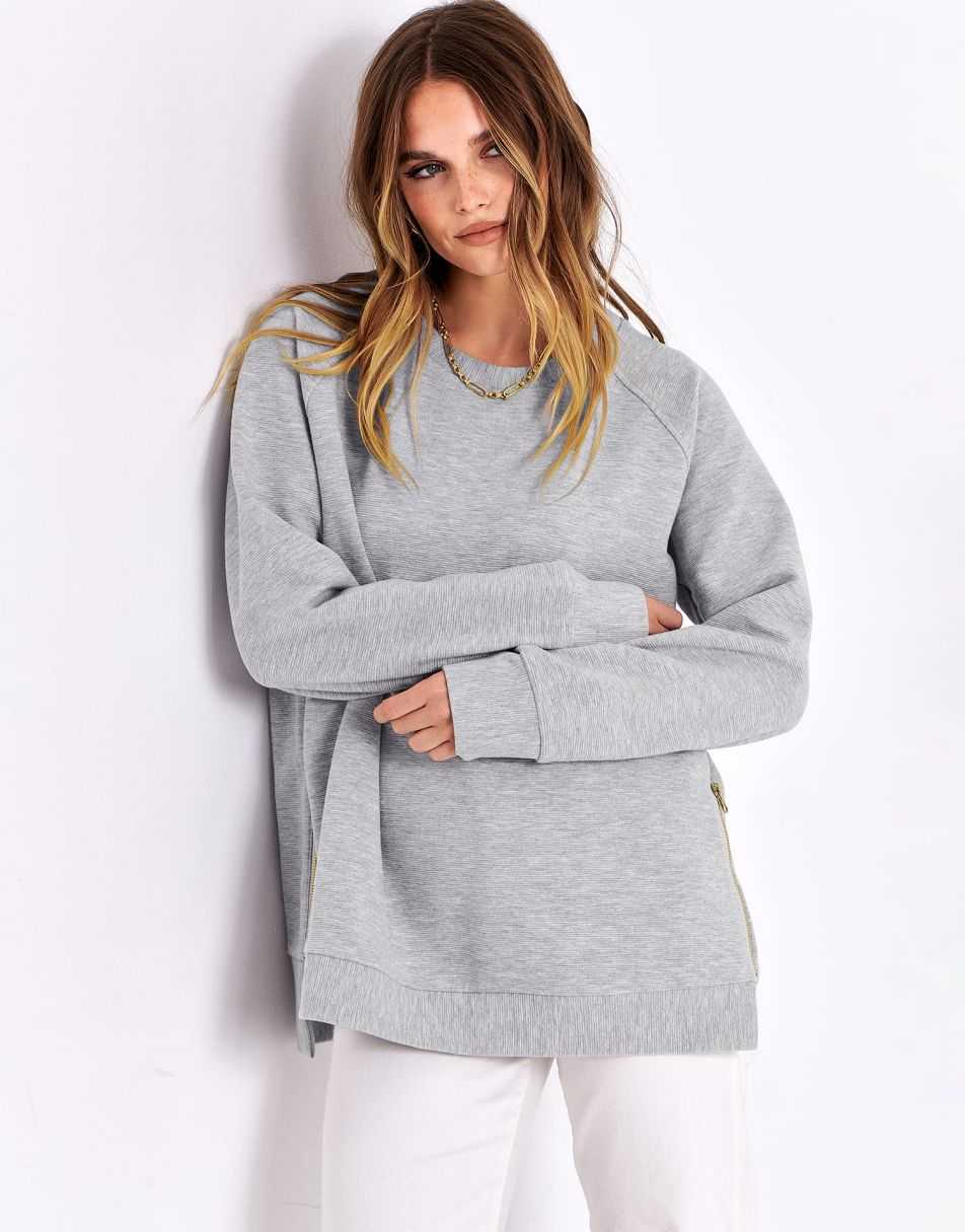 • ANRABESS Women's Sweatshirts Long Sleeve Tunic Tops Crew Neck Soft Pullover With Side Zipper Shirt Clothes 2023