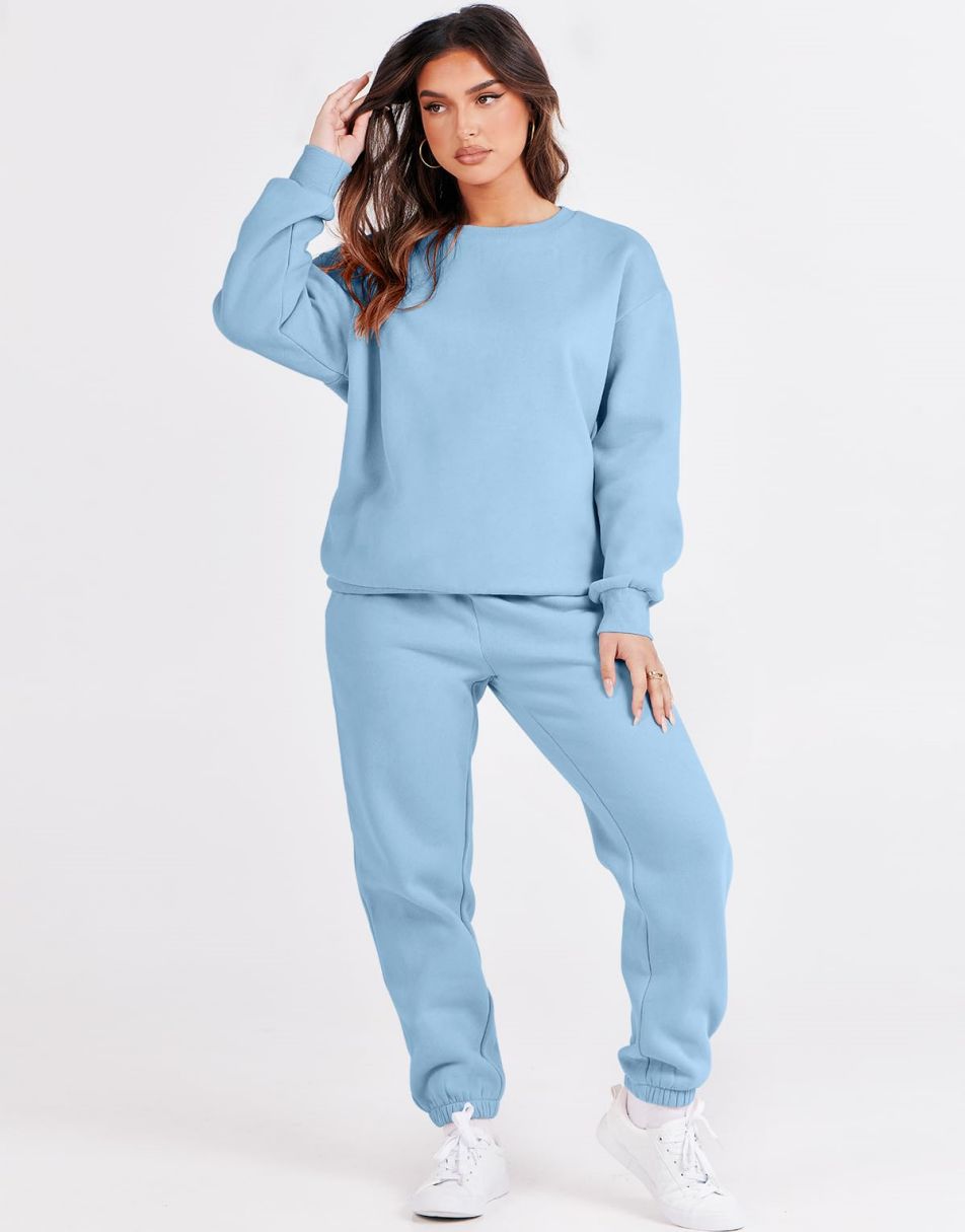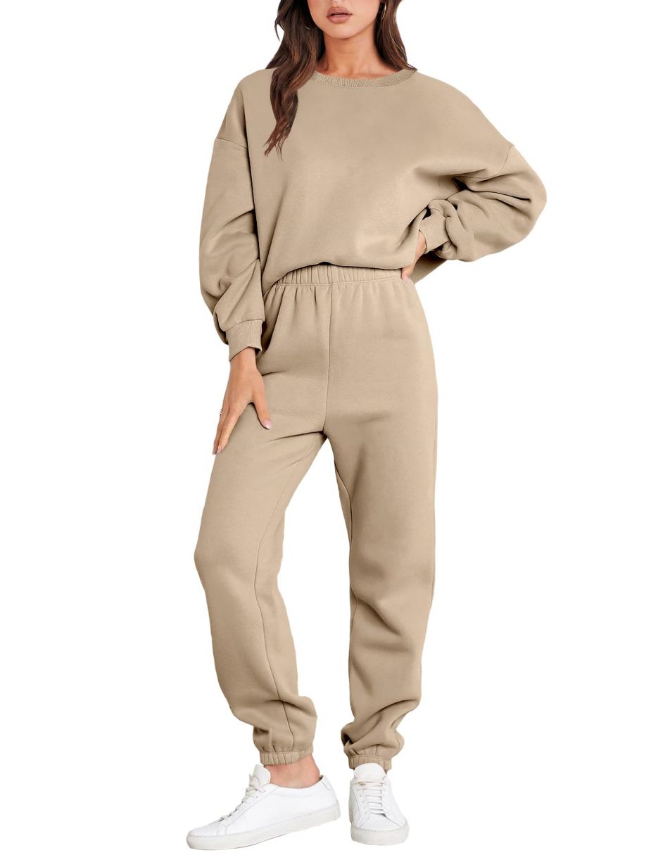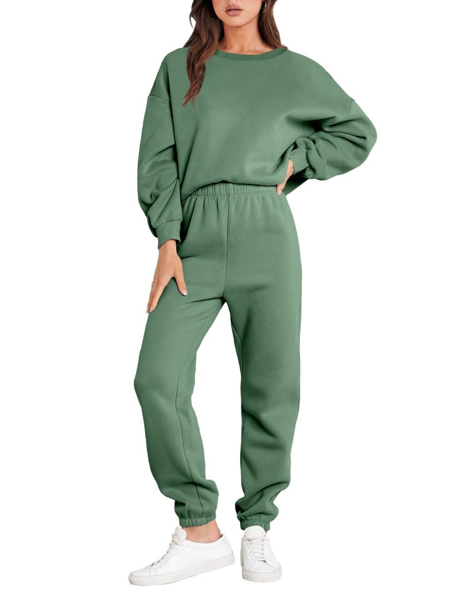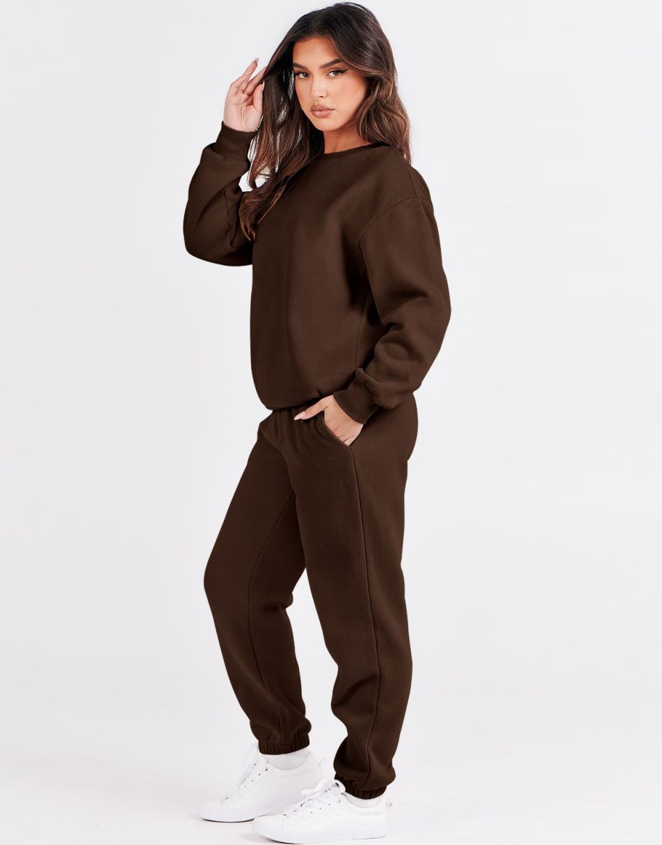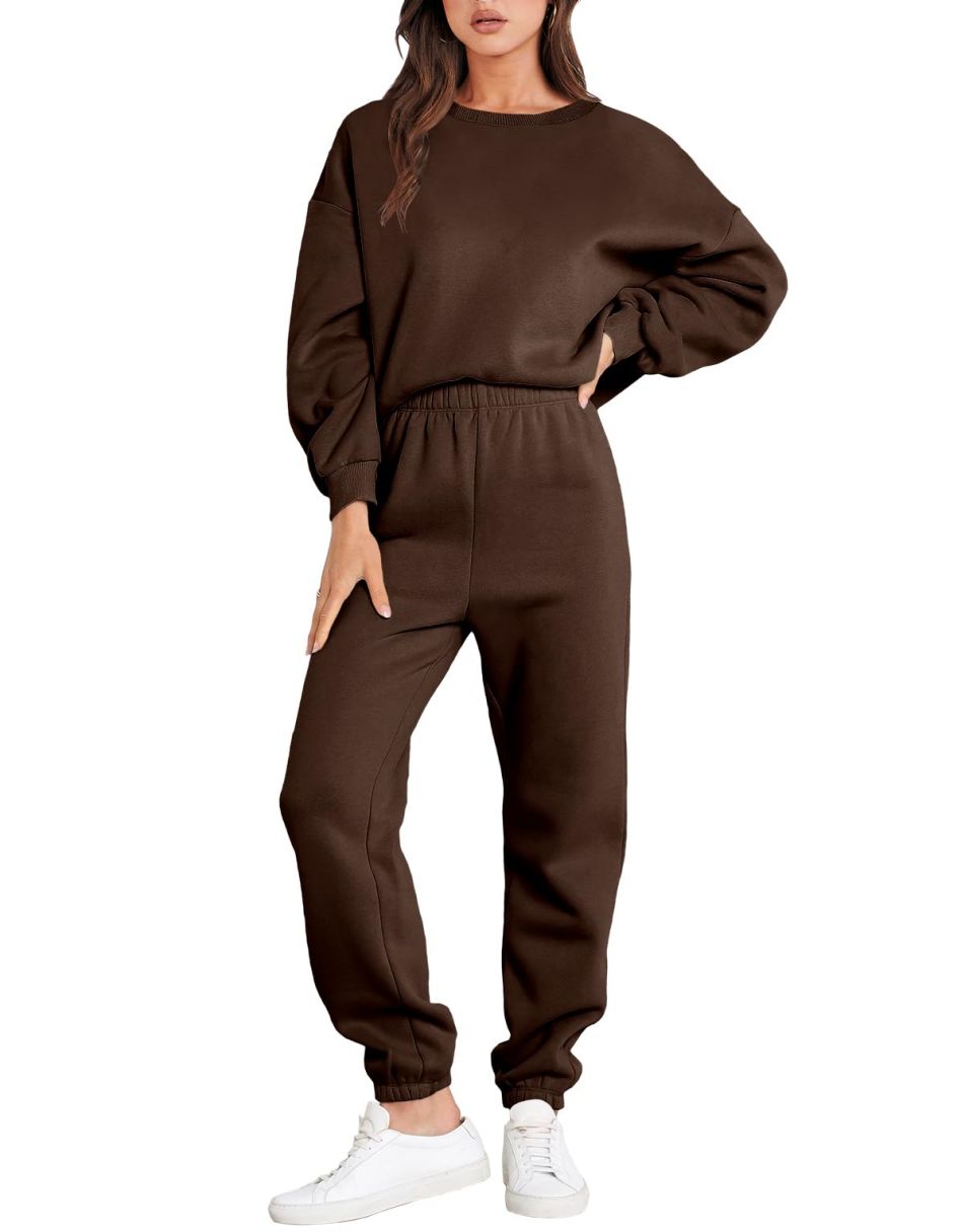 • ANRABESS Women's Two Piece Outfits Long Sleeve Crewneck Sweatsuit with Jogger Pants Lounge Sets with Pockets