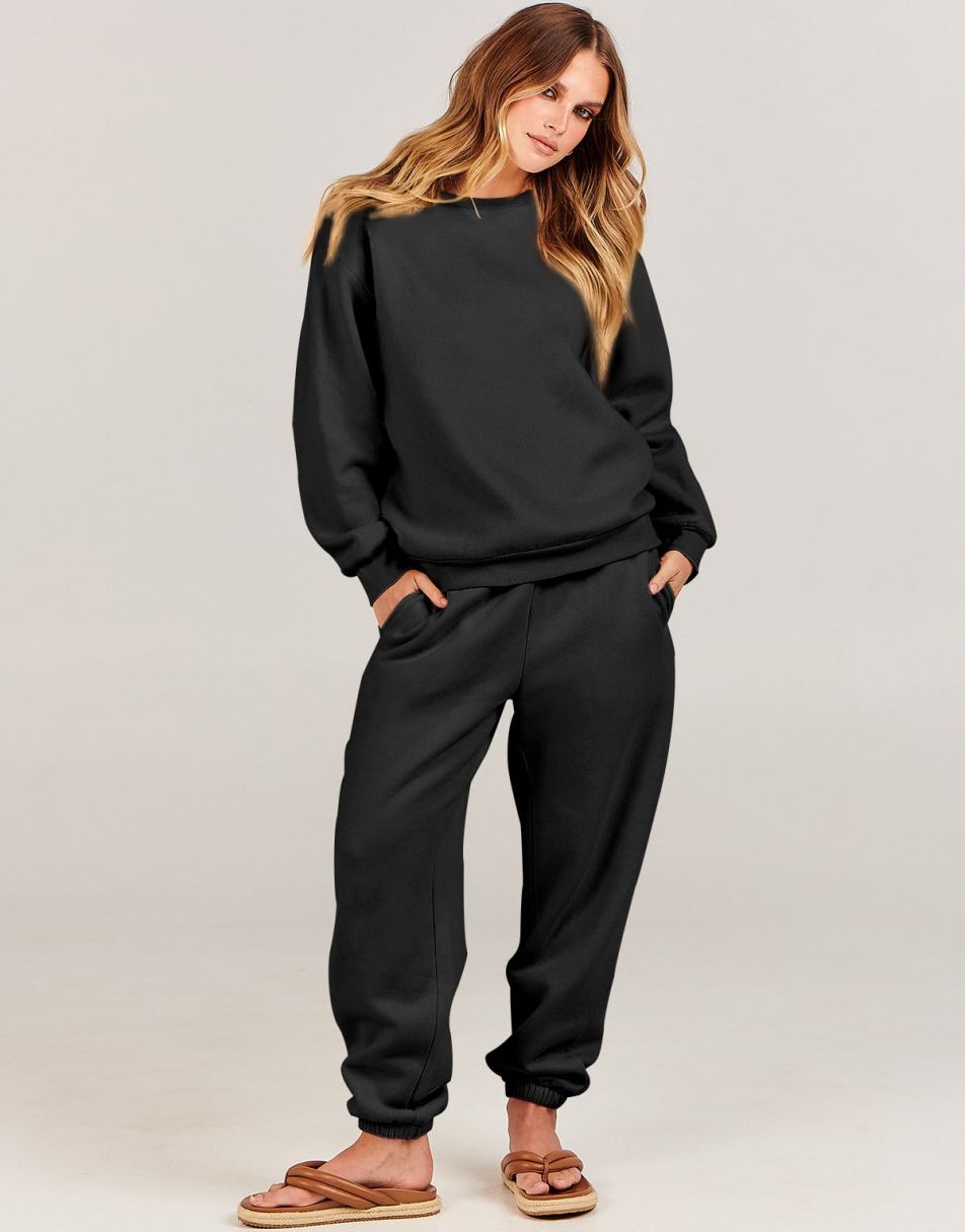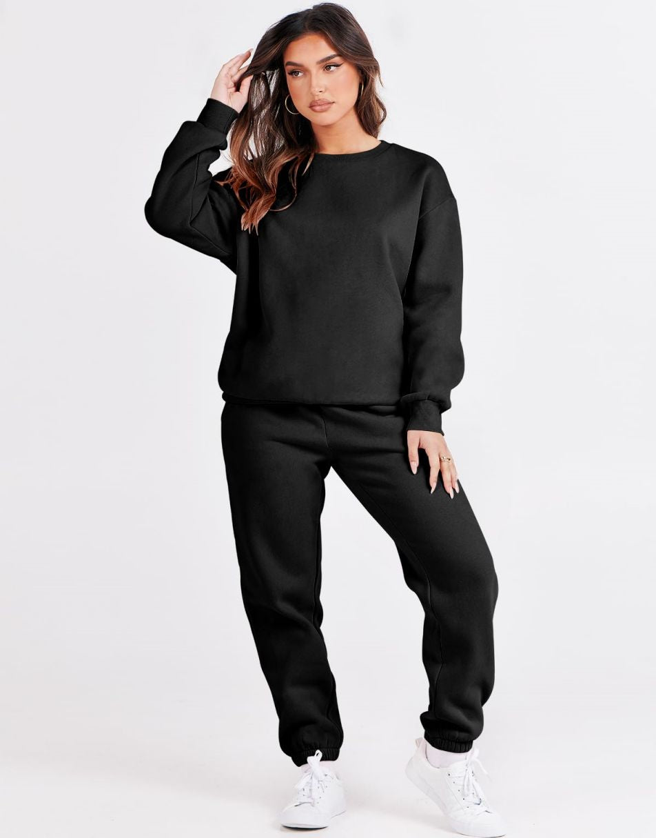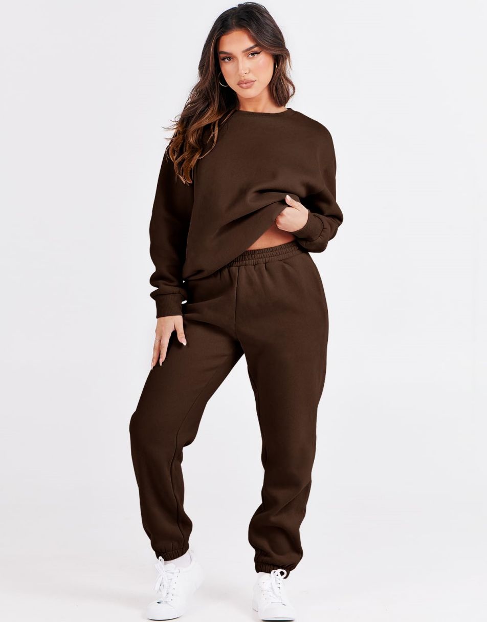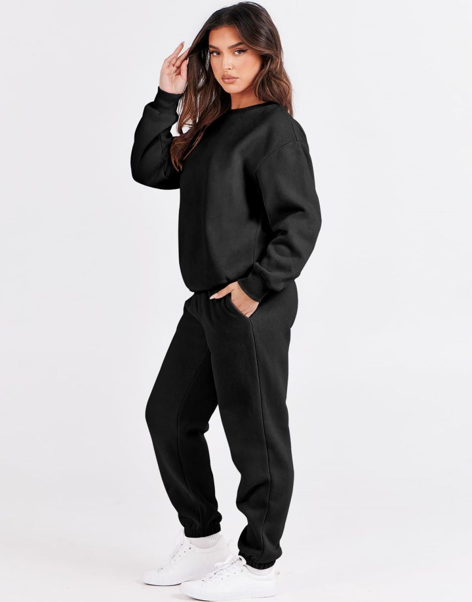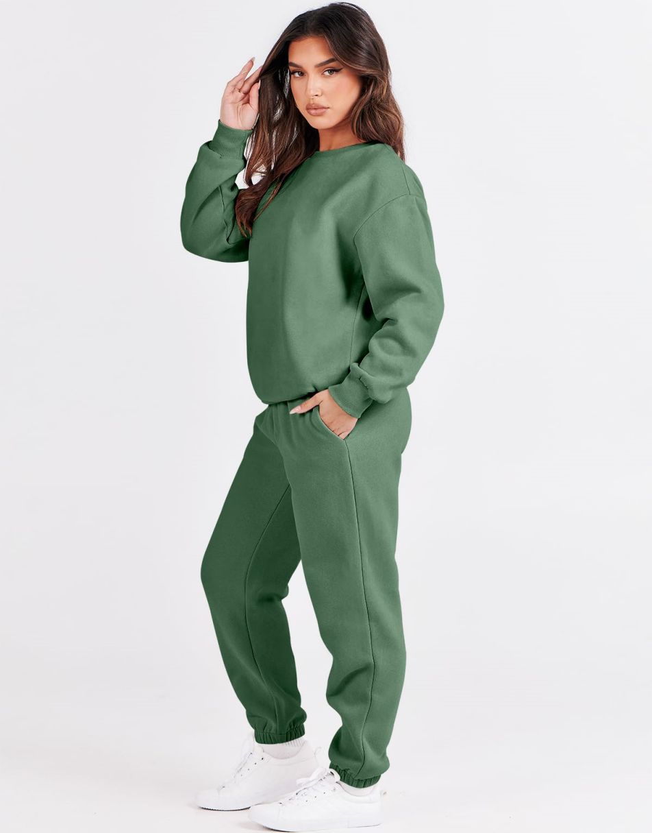 • ANRABESS Women's Two Piece Outfits Long Sleeve Crewneck Sweatsuit with Jogger Pants Lounge Sets with Pockets