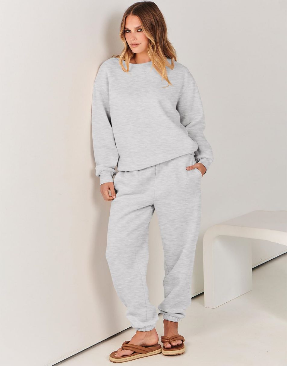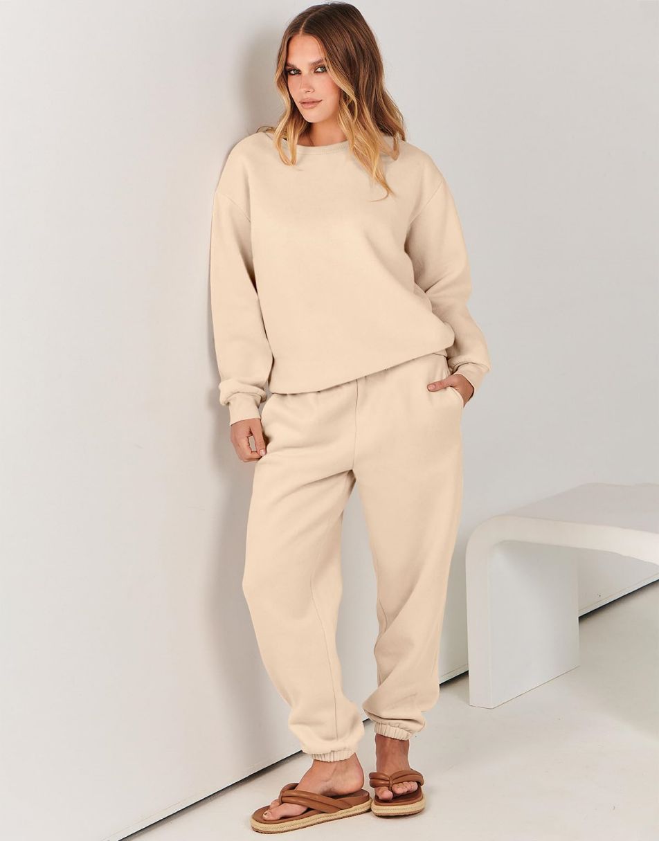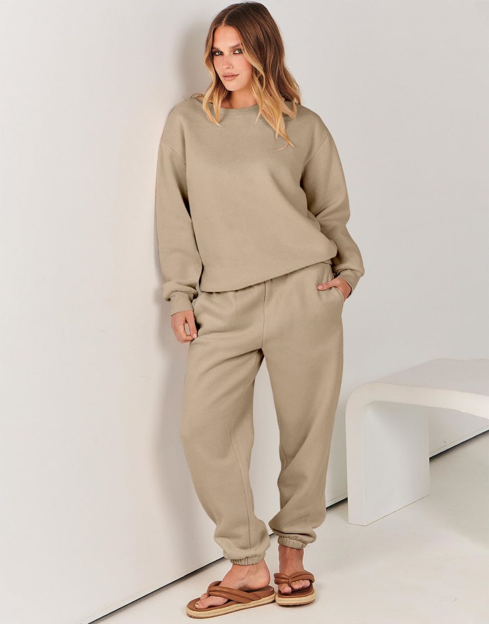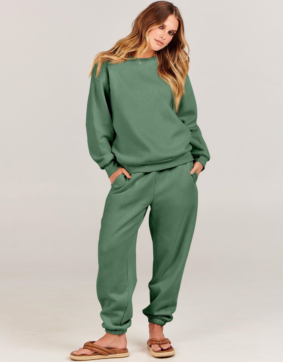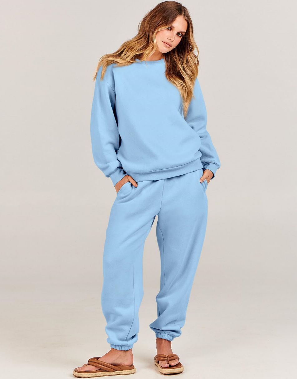 • ANRABESS Women's Two Piece Outfits Long Sleeve Crewneck Sweatsuit with Jogger Pants Lounge Sets with Pockets